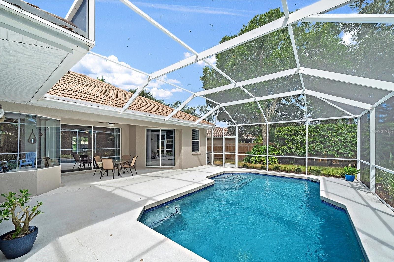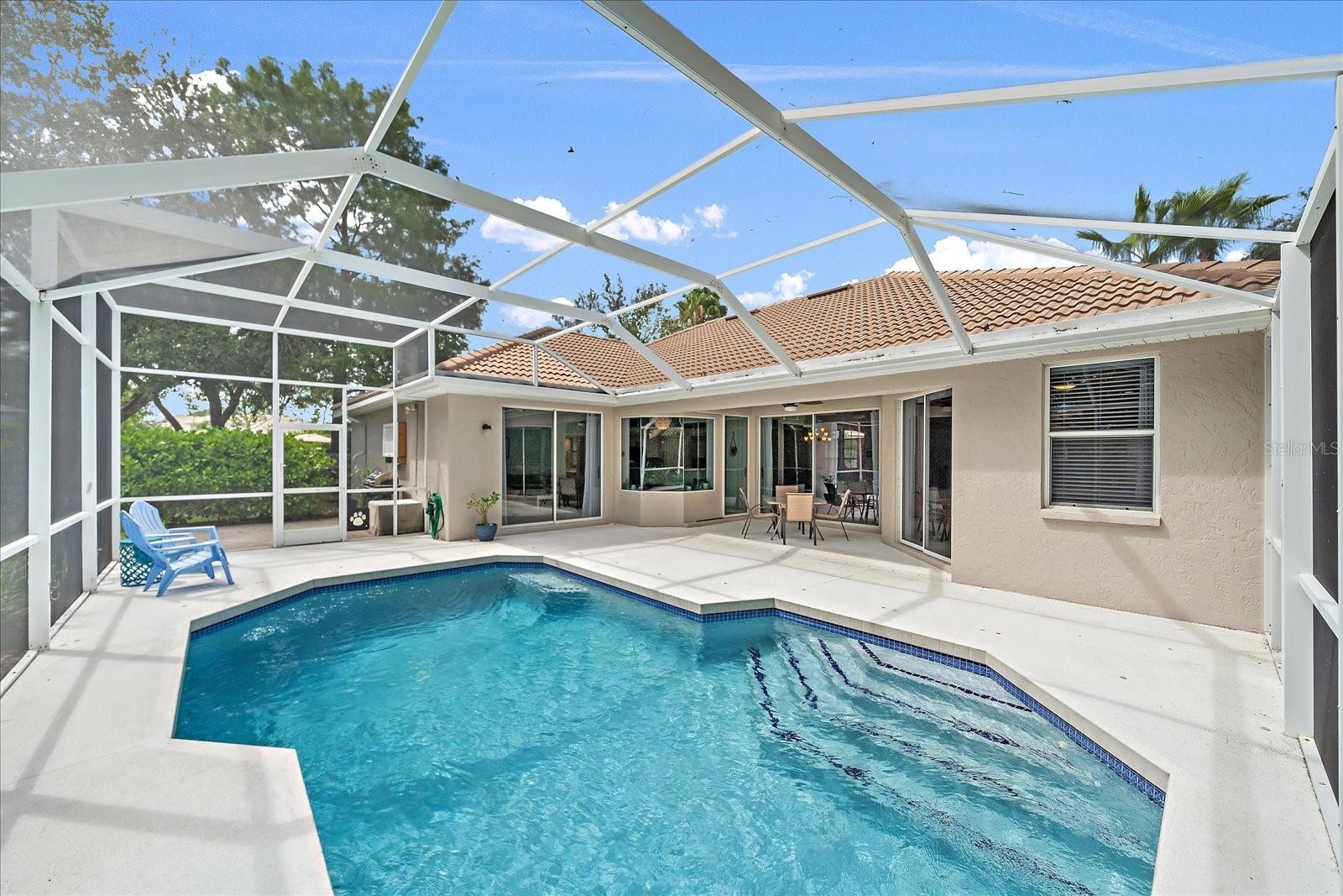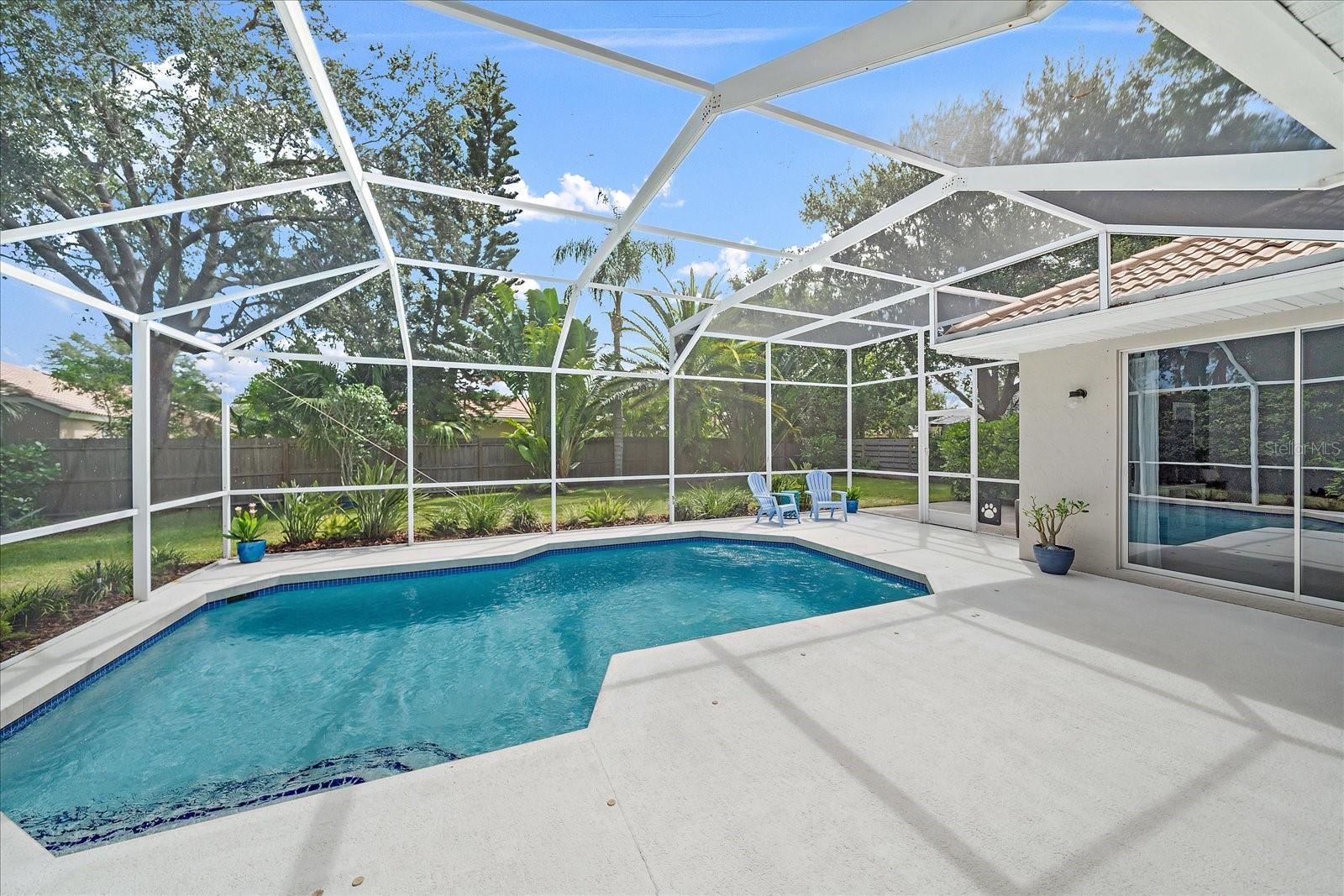 Tucked within the highly desirable Three Oaks neighborhood of Sarasota, 5619 Oak Grove Court is nestled in a serene enclave known for its namesake tradition: each home was originally required to be accompanied by the planting of three oak trees, creating a lush, shaded community rich in character and charm. Positioned on a spacious, nearly 12,000-square-foot lot at the end of a quiet cul-de-sac, this 4-bedroom, 2-bath, 2,422-square-foot residence offers both tranquility and functionality--ideal for growing families, seasonal residents, or anyone in search of a true Florida pool home with room to breathe.Enjoy peaceful mornings in your northeast-facing backyard, where filtered sunrises peek through majestic mature oaks and reflect on the sparkling, oversized pool. The fully fenced yard provides privacy and security for children or pets, while the generous covered lanai sets the stage for effortless outdoor living--from poolside lounging to casual dinners under the stars. Evening strolls through this quiet, low-traffic neighborhood are complemented by glowing sunsets from your front door, all within the safety and value of Zone X--no flood insurance required, and no history of storm damage. This home is also free of CDD fees, offering added savings and peace of mind.Built with durable concrete block masonry and cement-based stucco, the home has been well maintained and thoughtfully updated over the years. Inside, a bright and open layout connects the formal living and dining spaces with a central kitchen and a comfortable family room. The kitchen offers a closet pantry, reverse osmosis for the sink, fridge and ice maker, ample counter space, and a clear view of the pool, allowing for seamless indoor-outdoor living. Sliding glass doors from the primary suite, formal living room, and family room invite natural light throughout and strengthen the connection to the beautiful backyard oasis. The split-bedroom layout features four bedrooms and two full baths, with the fourth bedroom currently serving as a home office or den. With its own closet, it can easily convert into a private guest suite or creative flex space.Notable improvements include a new HVAC system installed in 2023, saltwater pool conversion and resurfacing completed in 2019, and hurricane shutters added in 2021. The roof, a hip-style barrel tile, dates to 1999 but benefits from a tax-effective year of 2004. Additional updates include a new electrical panel in 2019, a water heater from 2016, new washer and dryer in 2019, and updated flooring in three bedrooms and the office/den. The home was freshly painted, power-washed, and professionally landscaped in 2025, further enhancing its curb appeal. Practical touches like the raised AC handler in the garage ceiling for quieter operation and more interior space, pull-down attic storage, and a built-in workstation in the oversized garage make this home as functional as it is beautiful.Located within an A+ rated Sarasota school district and just minutes from I-75, The Legacy Trail, premier shopping, and the world-renowned beaches of Siesta Key, 5619 Oak Grove Court presents the perfect balance of lifestyle, location, and long-term livability. Whether you're snowbirding, raising a family, or simply looking for a peaceful place to call home, this thoughtfully designed and impeccably maintained property checks every box.