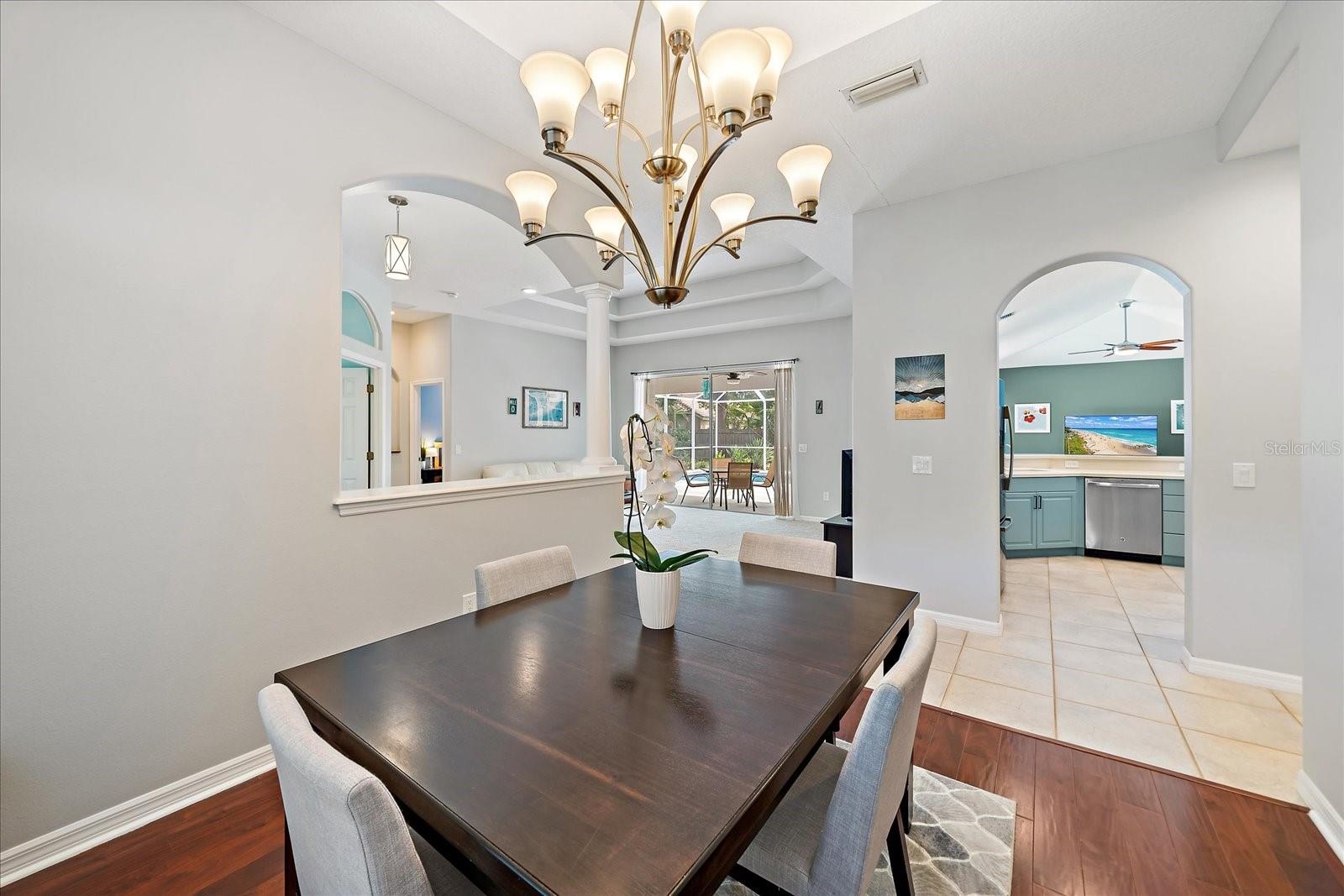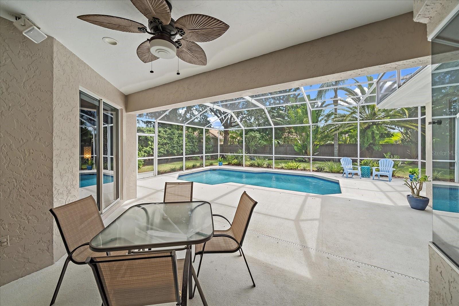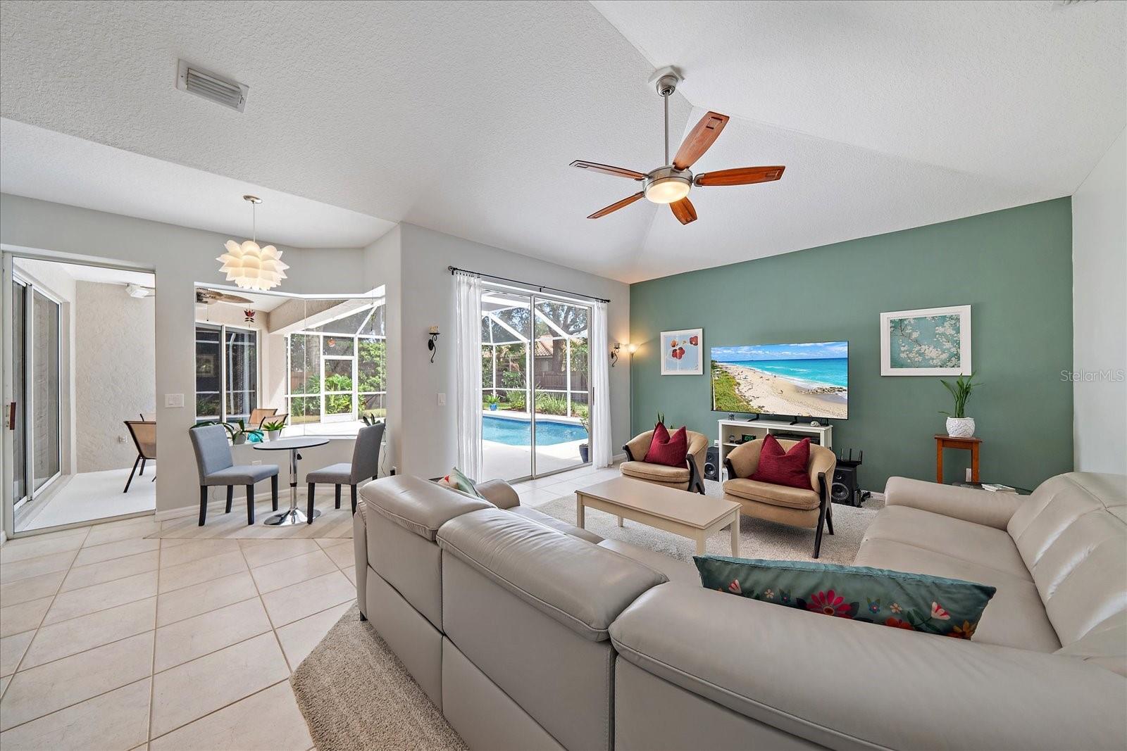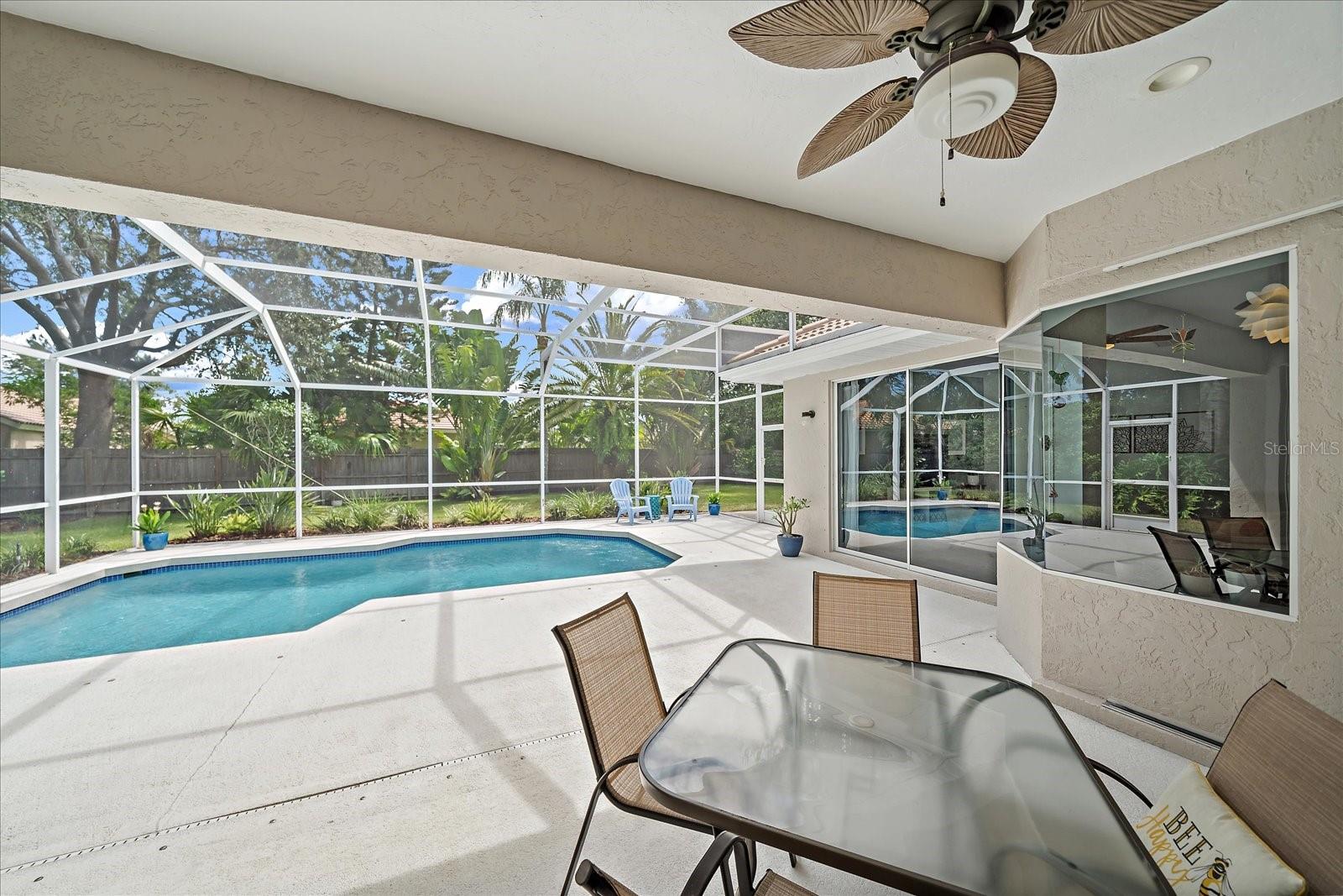 Tucked within the highly desirable Three Oaks neighborhood of Sarasota, 5619 Oak Grove Court is nestled in a serene enclave known for its namesake tradition: each home was originally required to be accompanied by the planting of three oak trees, creating a lush, shaded community rich in character and charm. Positioned on a spacious, nearly 12,000-square-foot lot at the end of a quiet cul-de-sac, this 4-bedroom, 2-bath, 2,422-square-foot residence offers both tranquility and functionality--ideal for growing families, seasonal residents, or anyone in search of a true Florida pool home with room to breathe.Enjoy peaceful mornings in your northeast-facing backyard, where filtered sunrises peek through majestic mature oaks and reflect on the sparkling, oversized pool. The fully fenced yard provides privacy and security for children or pets, while the generous covered lanai sets the stage for effortless outdoor living--from poolside lounging to casual dinners under the stars. Evening strolls through this quiet, low-traffic neighborhood are complemented by glowing sunsets from your front door, all within the safety and value of Zone X--no flood insurance required, and no history of storm damage. This home is also free of CDD fees, offering added savings and peace of mind.Built with durable concrete block masonry and cement-based stucco, the home has been well maintained and thoughtfully updated over the years. Inside, a bright and open layout connects the formal living and dining spaces with a central kitchen and a comfortable family room. The kitchen offers a closet pantry, reverse osmosis for the sink, fridge and ice maker, ample counter space, and a clear view of the pool, allowing for seamless indoor-outdoor living. Sliding glass doors from the primary suite, formal living room, and family room invite natural light throughout and strengthen the connection to the beautiful backyard oasis. The split-bedroom layout features four bedrooms and two full baths, with the fourth bedroom currently serving as a home office or den. With its own closet, it can easily convert into a private guest suite or creative flex space.Notable improvements include a new HVAC system installed in 2023, saltwater pool conversion and resurfacing completed in 2019, and hurricane shutters added in 2021. The roof, a hip-style barrel tile, dates to 1999 but benefits from a tax-effective year of 2004. Additional updates include a new electrical panel in 2019, a water heater from 2016, new washer and dryer in 2019, and updated flooring in three bedrooms and the office/den. The home was freshly painted, power-washed, and professionally landscaped in 2025, further enhancing its curb appeal. Practical touches like the raised AC handler in the garage ceiling for quieter operation and more interior space, pull-down attic storage, and a built-in workstation in the oversized garage make this home as functional as it is beautiful.Located within an A+ rated Sarasota school district and just minutes from I-75, The Legacy Trail, premier shopping, and the world-renowned beaches of Siesta Key, 5619 Oak Grove Court presents the perfect balance of lifestyle, location, and long-term livability. Whether you're snowbirding, raising a family, or simply looking for a peaceful place to call home, this thoughtfully designed and impeccably maintained property checks every box.