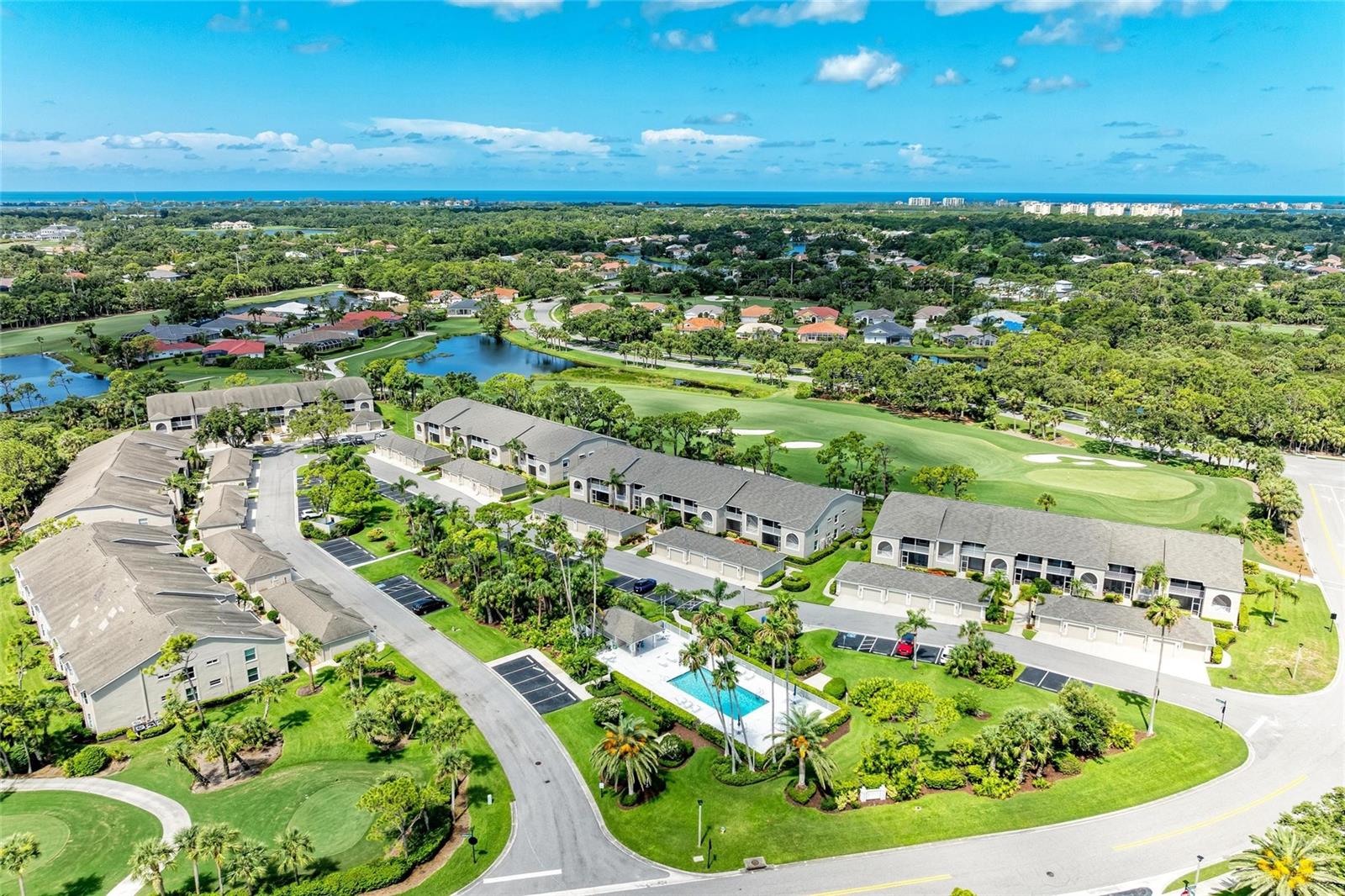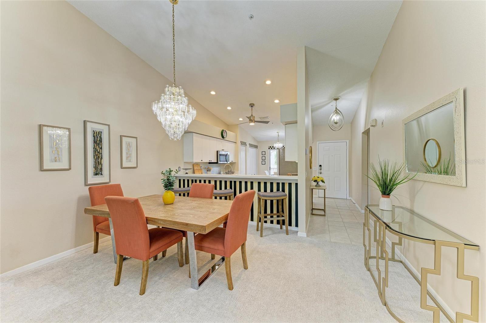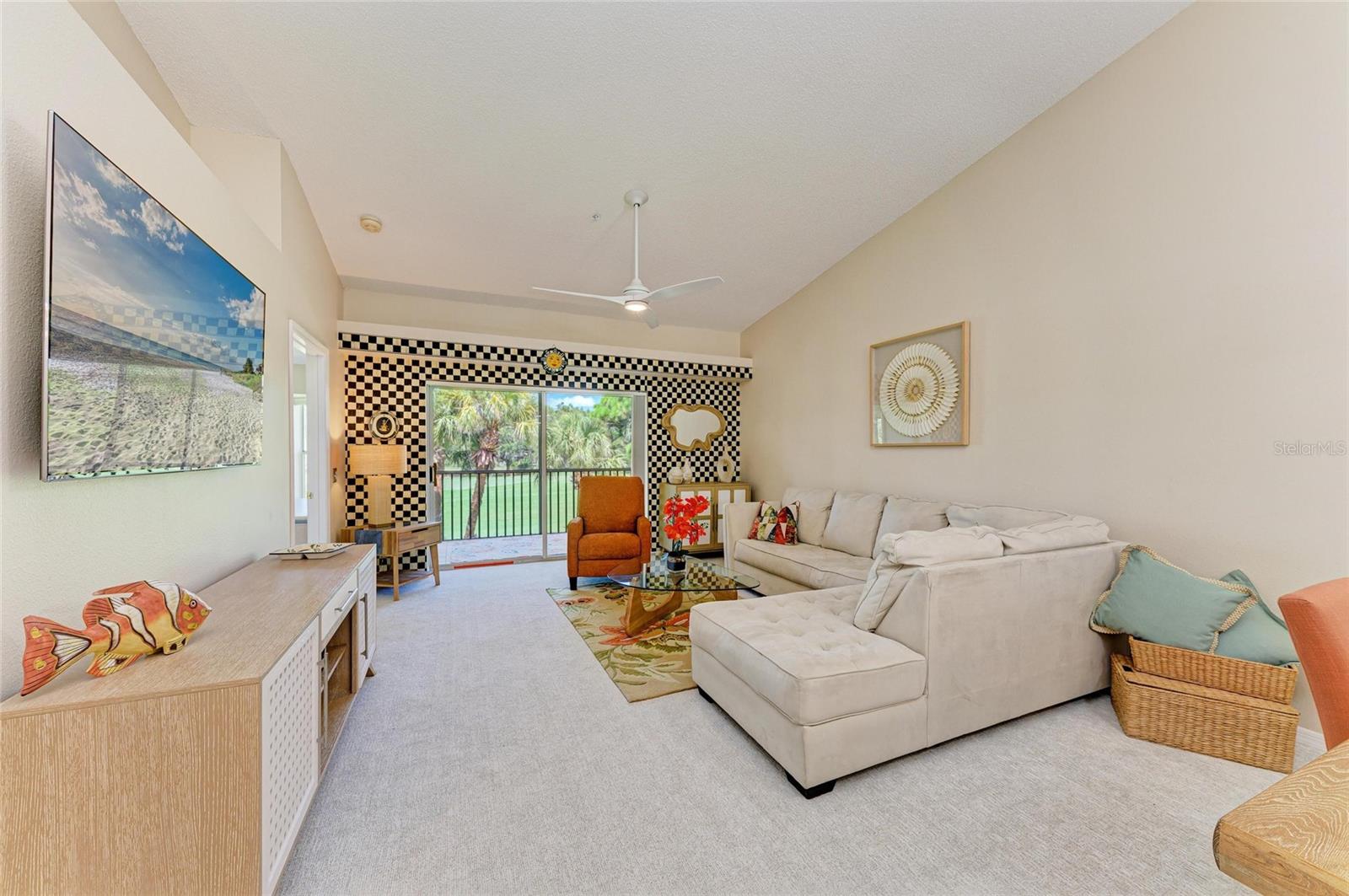 Live the Dream in Stoneybrook Golf and Country Club on Palmer Ranch. Enjoy incredible fairway and green views of the newly redesigned 17th hole from your private, screened-in back lanai. This second-floor Carlton model condo features vaulted ceilings throughout the living room, dining room, and kitchen--creating a bright, airy space perfect for everyday living and entertaining.The kitchen includes stainless steel appliances, a breakfast nook, and access to the front screened lanai, ideal for enjoying peaceful mornings. The unit comes furnished and new carpet in living areas. The primary bedroom suite offers twin walk-in closets, a great bay window for a dressing table or additional sitting, and a slider out to the lanai. An en-suite bath with a walk-in shower. The split-bedroom layout provides privacy with a spacious second bedroom and adjacent full bathroom. In-unit laundry room with washer, dryer, and more storage. Detached one-car garage. Designer lighting from Venice Lighting Co. The 2024 Golf Course Modernization assessment has been PAID IN FULL by the seller making this a rare opportunity to enjoy a modernized golf experience with no additional expense. Residents enjoy an updated clubhouse and restaurant, 18-hole Arthur Hills-original designed golf course, Har-Tru tennis courts, a state-of-the-art fitness center, resort-style pool and spa, direct access to the Legacy Trail for biking and walking. Stoneybrook Golf and Country Club is a premier member-owned country club community, ideally located between Downtown Sarasota and Downtown Venice, just minutes from Siesta Key Beach.This is the lifestyle you've been waiting for--schedule your private showing today!