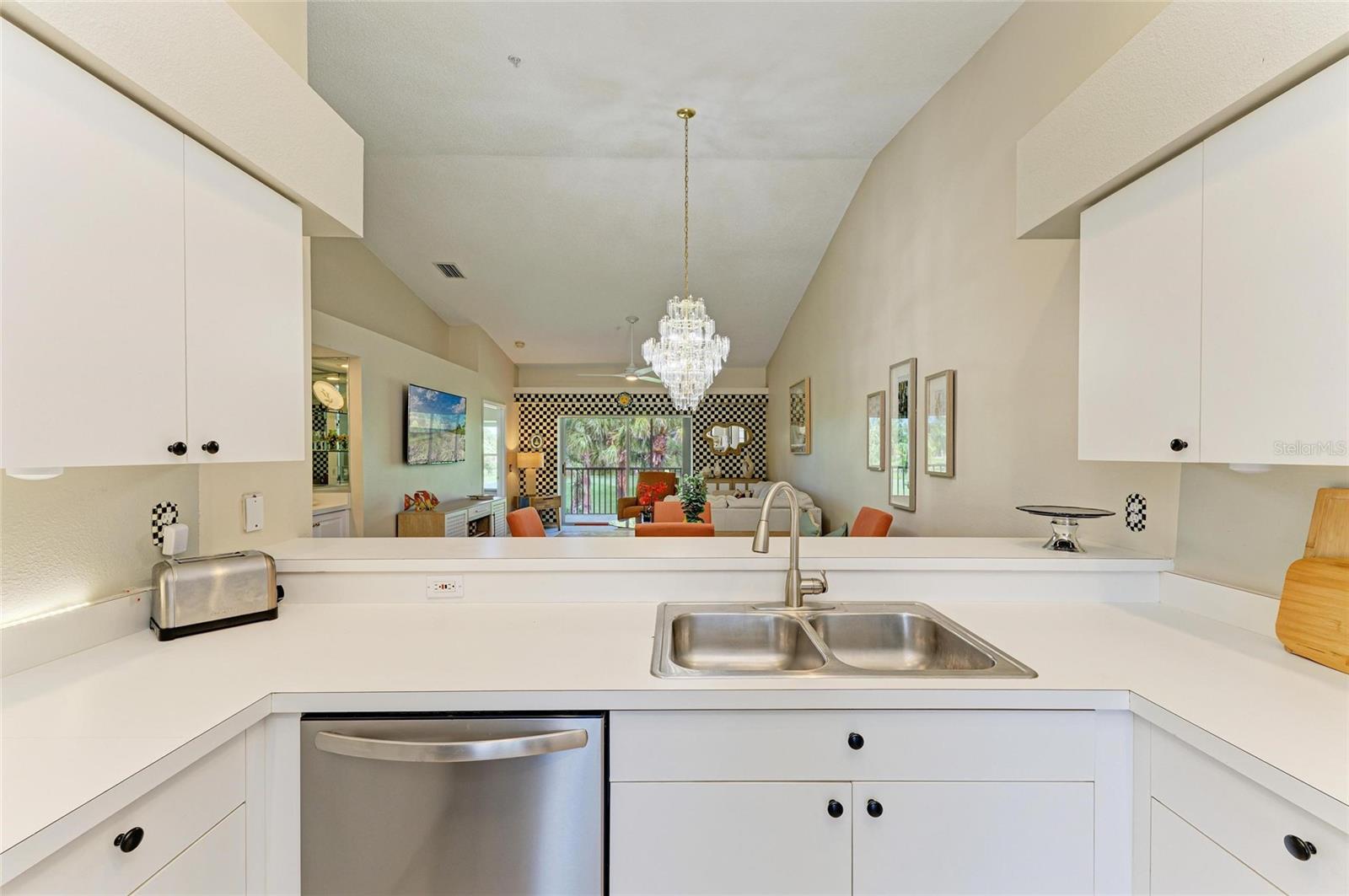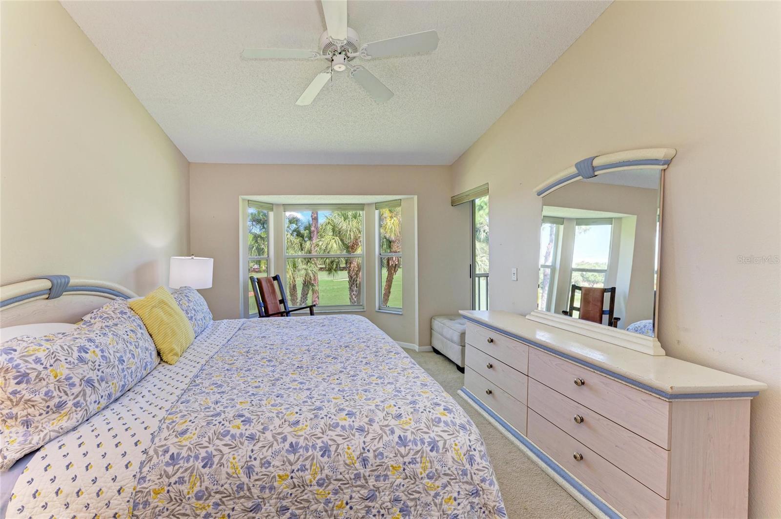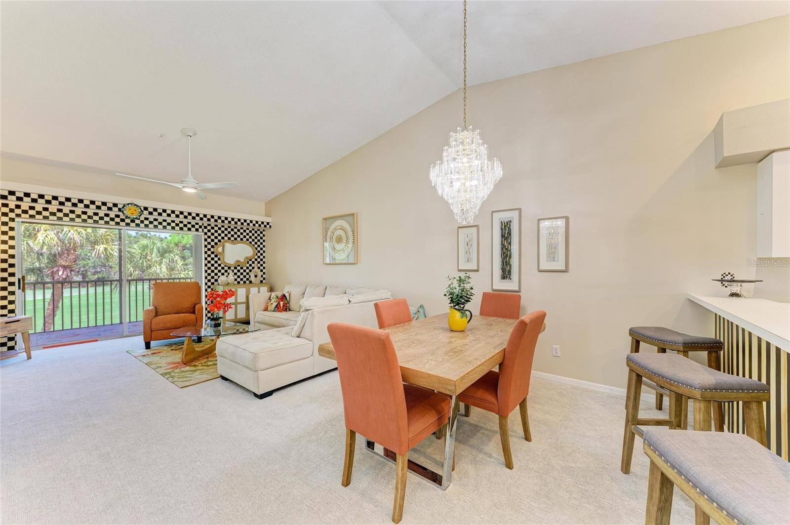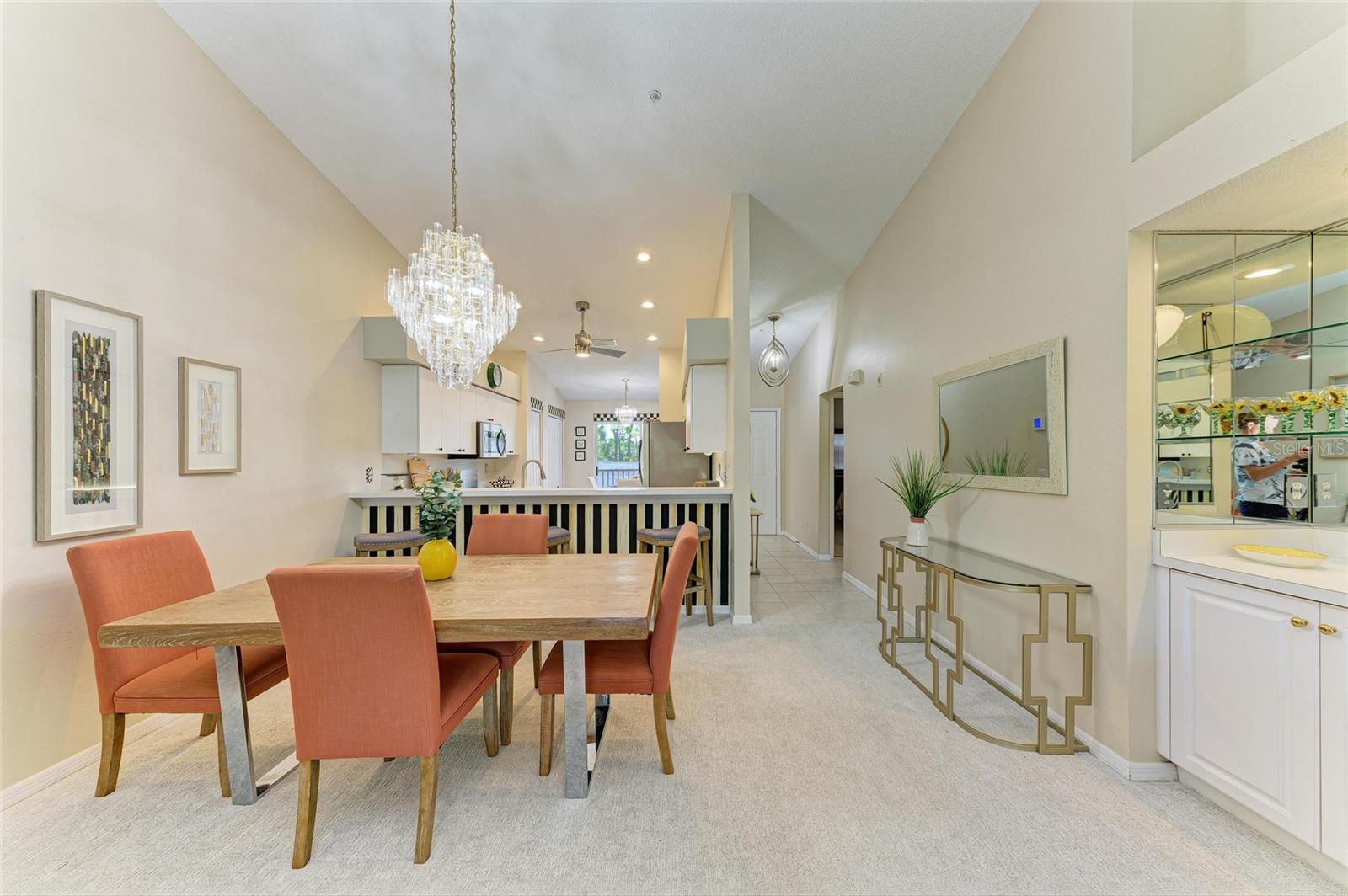 Live the Dream in Stoneybrook Golf and Country Club on Palmer Ranch. Enjoy incredible fairway and green views of the newly redesigned 17th hole from your private, screened-in back lanai. This second-floor Carlton model condo features vaulted ceilings throughout the living room, dining room, and kitchen--creating a bright, airy space perfect for everyday living and entertaining.The kitchen includes stainless steel appliances, a breakfast nook, and access to the front screened lanai, ideal for enjoying peaceful mornings. The unit comes furnished and new carpet in living areas. The primary bedroom suite offers twin walk-in closets, a great bay window for a dressing table or additional sitting, and a slider out to the lanai. An en-suite bath with a walk-in shower. The split-bedroom layout provides privacy with a spacious second bedroom and adjacent full bathroom. In-unit laundry room with washer, dryer, and more storage. Detached one-car garage. Designer lighting from Venice Lighting Co. The 2024 Golf Course Modernization assessment has been PAID IN FULL by the seller making this a rare opportunity to enjoy a modernized golf experience with no additional expense. Residents enjoy an updated clubhouse and restaurant, 18-hole Arthur Hills-original designed golf course, Har-Tru tennis courts, a state-of-the-art fitness center, resort-style pool and spa, direct access to the Legacy Trail for biking and walking. Stoneybrook Golf and Country Club is a premier member-owned country club community, ideally located between Downtown Sarasota and Downtown Venice, just minutes from Siesta Key Beach.This is the lifestyle you've been waiting for--schedule your private showing today!