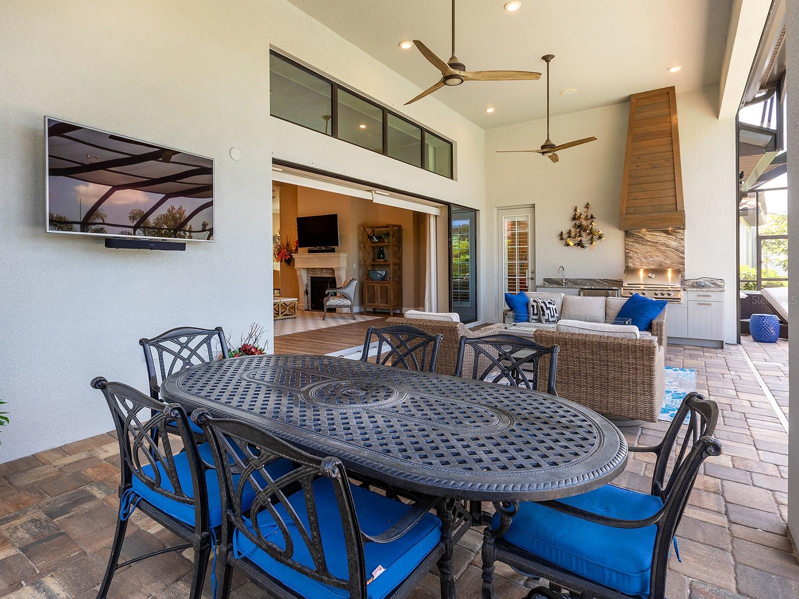 - Exterior: Hurricane Shutters, Lighting, Outdoor Kitchen, Rain Gutters, Sliding Doors