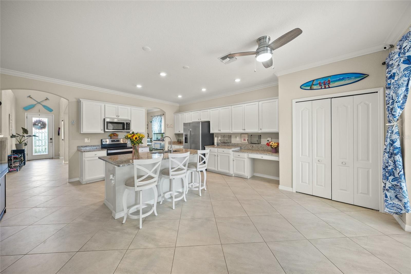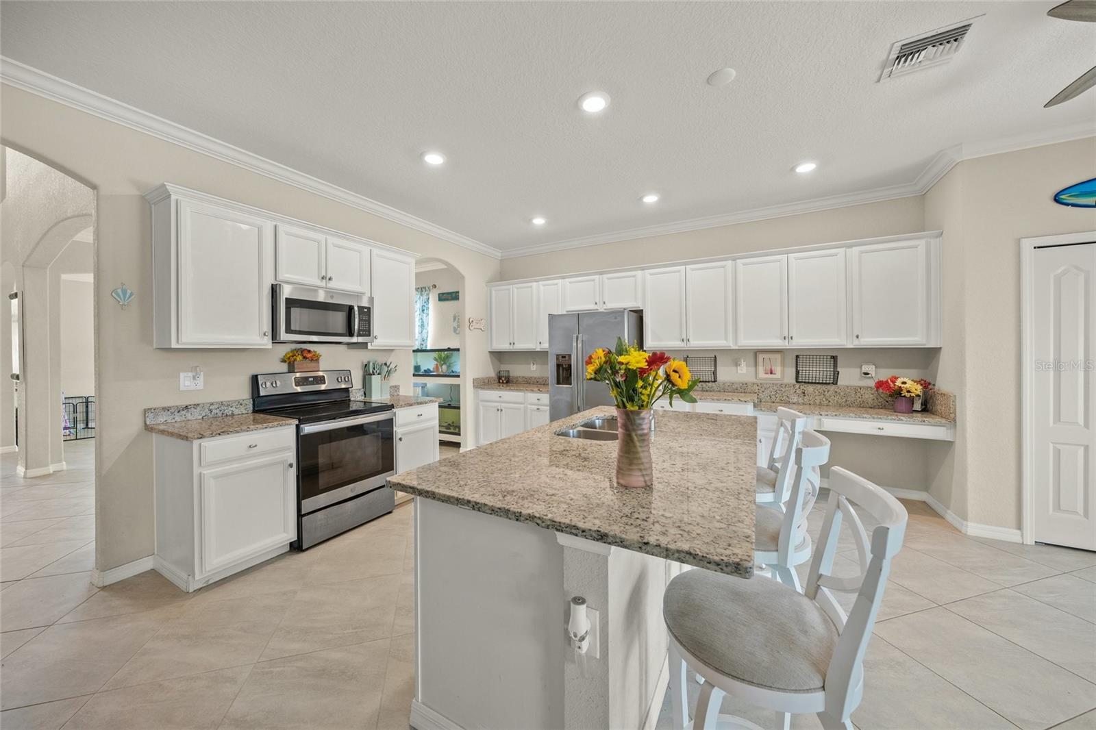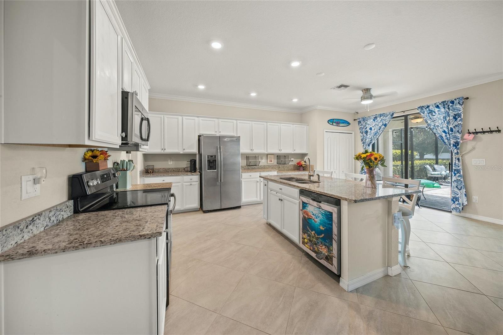 One or more photo(s) has been virtually staged. Brand-new top of the line appliances and exterior gutters installed. Experience the epitome of comfort and best Florida living in this stunning 5-bedroom, 3-bathroom plus bonus room home located in the sought-after Watercrest community. With over 3,400 sq. ft. of meticulously designed living space, this residence offers a seamless blend of sophistication and functionality. Enjoy the convenience of a GENERAC WHOLE HOUSE GENERATOR (2022) connected to an underground 500-gallon propane tank, HURRICANE SHUTTERS, cost efficient SOLAR PANEL SYSTEM and an outdoor security system. Step through the cathedral-like foyer and be greeted by soaring high ceilings and exquisite crown molding that set the tone for this inviting home. At the front of the home, you will find a formal dining room and living room ideal for hosting gatherings. While the open-concept kitchen features a large island, perfect for casual dining and family get-togethers, seamlessly connecting the kitchen with the Great Room with easy access to the lanai. Step outside to your private oasis--complete with a heated SALTWATER POOL with beach entry and a hot tub with waterfall (2022). The automatic pool cleaner built in the bottom of the pool makes offers an easy pool maintenance. This outdoor paradise is perfect for unwinding or entertaining in style. The main level also features a bedroom with a full bathroom, ideal for guests. The second floor boasts a spacious loft and a bonus room, offering endless possibilities as a game room, playroom, or home office. The master suite is a true retreat, featuring two walk-in closets, a large soaking tub, a separate shower, and dual sinks. The upper level includes three more generously sized bedrooms and a full bath with dual sinks and a shower/tub combo, providing ample space for family and guests. The unique Tandem 3-car garage with multi split and epoxy flooring provides plenty of space for vehicles, bikes, canoes, and kayaks, while additional storage solutions are available throughout the home. The laundry room is conveniently located on the main living level for added ease. Maintenance-free living with low HOA fees and no CDD fees. Watercrest, gated community, of offers a large zero entry heated pool with cabana, state of the art fitness center, bocce ball court and lots of activities for the whole family; centrally located near access to I-75, top-rated schools, shopping, medical offices and the new Sarasota Memorial Hospital. Approximately 4 miles to downtown Venice with endless shopping and dining options and gulf beaches. Don't miss this opportunity to own a beautiful home in this community, where every detail has been carefully considered to enhance your lifestyle. Schedule your showing today and discover your new home! See attached FEATURES AND UPGRADES LIST.