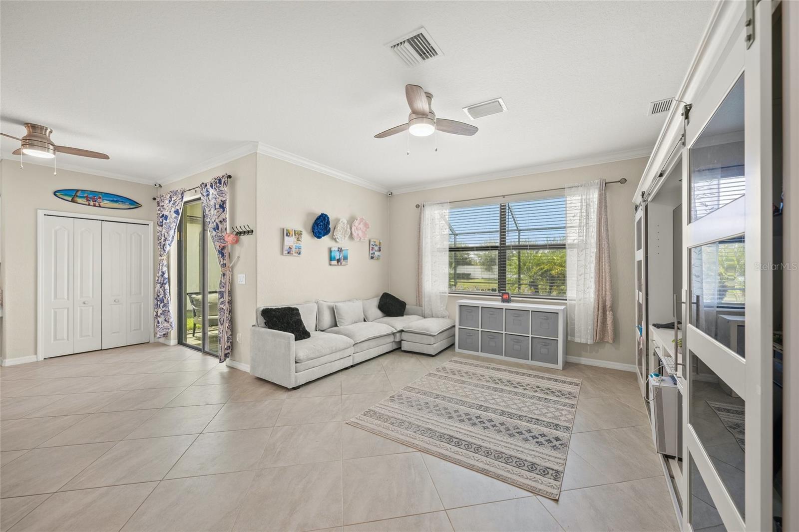 - Exterior: Hurricane Shutters, Lighting, Outdoor Grill, Rain Gutters, Sidewalk, Sliding Doors
