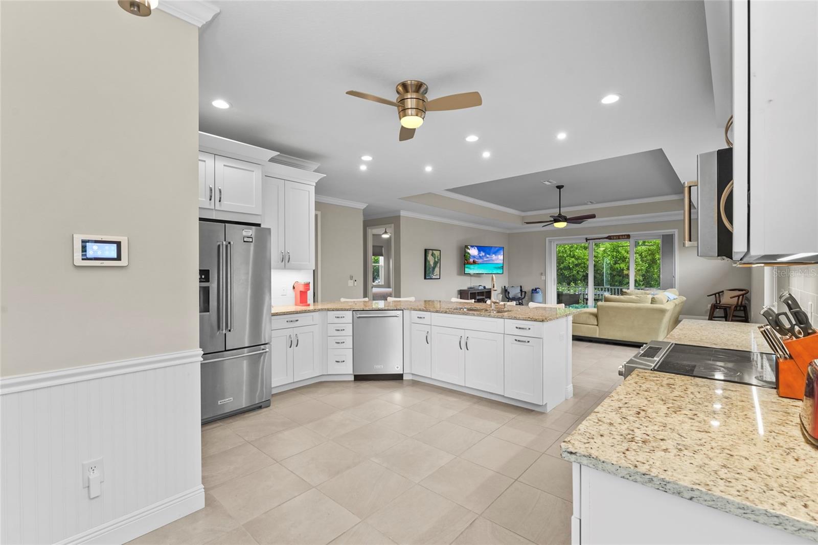 Welcome to The Cottages of Curry Creek, a hidden gem nestled in a small gated community offering direct Gulf access and low-maintenance coastal living. This Key West-style home features 2 bedrooms, 2 bathrooms, plus a versatile den currently used as a third bedroom--perfect for guests or a home office. Step inside to an inviting open floor plan where 10-foot tray ceilings, crown molding, and canal views elevate the spacious great room. The kitchen is equally impressive, boasting 45-inch wood cabinetry, granite countertops, and stainless steel appliances, all designed with both function and style in mind. The private den features glass doors and engineered hardwood flooring, while the large owner's suite offers peaceful canal views, a custom walk-in closet system, and an ensuite bath designed for relaxation. Built with quality in mind, this home includes fiber cement siding over concrete block construction, PGT hurricane impact windows, energy-efficient -inch foam insulation throughout the attic and walls, and a durable metal roof built to withstand the elements. Step into your backyard oasis where a private dock with a 10,000 lb boat lift awaits, offering instant access to Curry Creek, Roberts Bay, and the Gulf of Mexico. With low HOA fees covering gated access, lawn care, landscaping, and irrigation, enjoy a truly carefree lifestyle. Ideally located just minutes from downtown Venice, Nokomis Beach, the Legacy Trail, and an array of dining and shopping options--this is waterfront Florida living at its best.