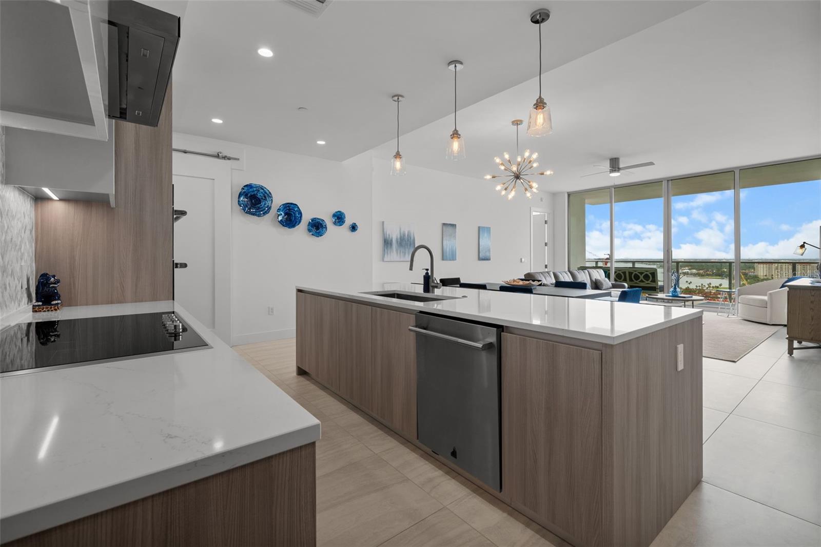Welcome to sky-high living in Downtown Sarasota's vibrant Waterfront District. Perched on the 17th floor of one of the area's newest luxury residential towers, this two-bedroom + den, three-bathroom residence offers an exceptional opportunity to live above it all--with peek-a-boo views of Sarasota Bay, the Gulf of Mexico, the Quay Yacht Harbor, and the lush greenery of the Quay Park, all from your private terrace.Spanning 1,828 square feet of interior living space, this residence blends sleek modern design with coastal elegance. From the moment you enter through a formal foyer, the 10-foot ceilings and expansive open-concept layout create the feel of a single-family home in the sky--complete with soaring views and abundant natural light.Designed with both style and function in mind, the den is ideally located near the entrance and just across from the third full bathroom. This flexible space makes a perfect home office or private guest room, offering added versatility and privacy.The chef's kitchen is an entertainer's dream, featuring European cabinetry by Italkraft, quartz countertops, and premium stainless steel JennAir appliances. A neutral-tone herringbone backsplash cascades up the wall, creating a beautiful focal point that adds both warmth and texture to the space. A dry bar with a wine refrigerator provides the perfect place to serve guests or enjoy your favorite latte in the morning.The primary suite is a peaceful retreat, with floor-to-ceiling windows framing city and water views. The ensuite bathroom is spa-inspired, with a double vanity, coastal wood grain cabinetry, and a clean, modern aesthetic. The secondary bedroom also features its own ensuite bath, making it perfect for hosting overnight guests in style.As one of the first owners in this exciting new development completed in 2023, you'll be at the heart of Sarasota's next great destination. The Quay Sarasota is fast becoming the city's epicenter for luxury living, fine dining, boutique shopping, and waterfront leisure. Residents enjoy access to resort-style amenities, along with proximity to cultural venues, marinas, and the world-famous quartz sand beaches of the Gulf Coast.Located just 15 minutes from Sarasota-Bradenton International Airport and minutes from the barrier islands, downtown arts district, and St. Armands Circle, this residence offers a highly desirable combination of location, lifestyle, and long-term value.This luxury condominium is move-in ready and waiting for its new owner. Furnishings are available for purchase separately, making this a turnkey opportunity for the discerning buyer seeking both elegance and convenience in one of Sarasota's most exciting new neighborhoods.