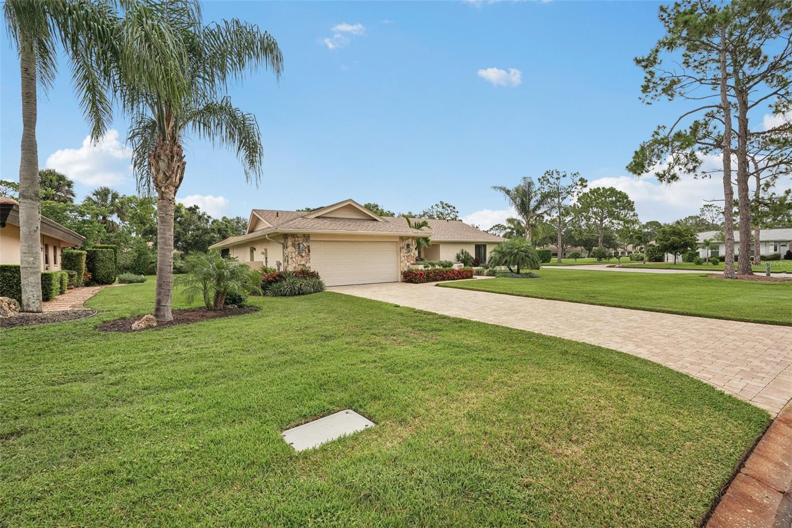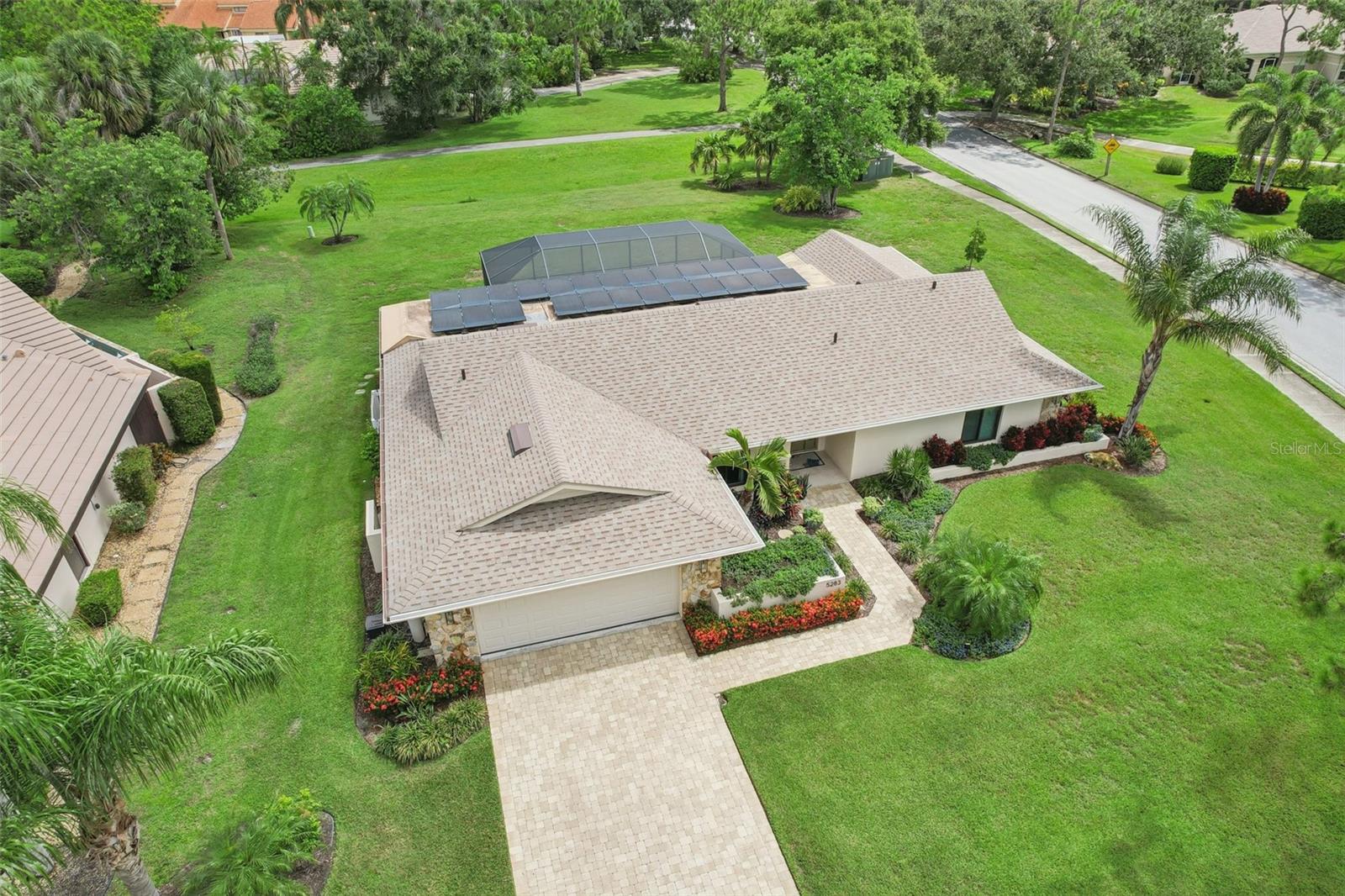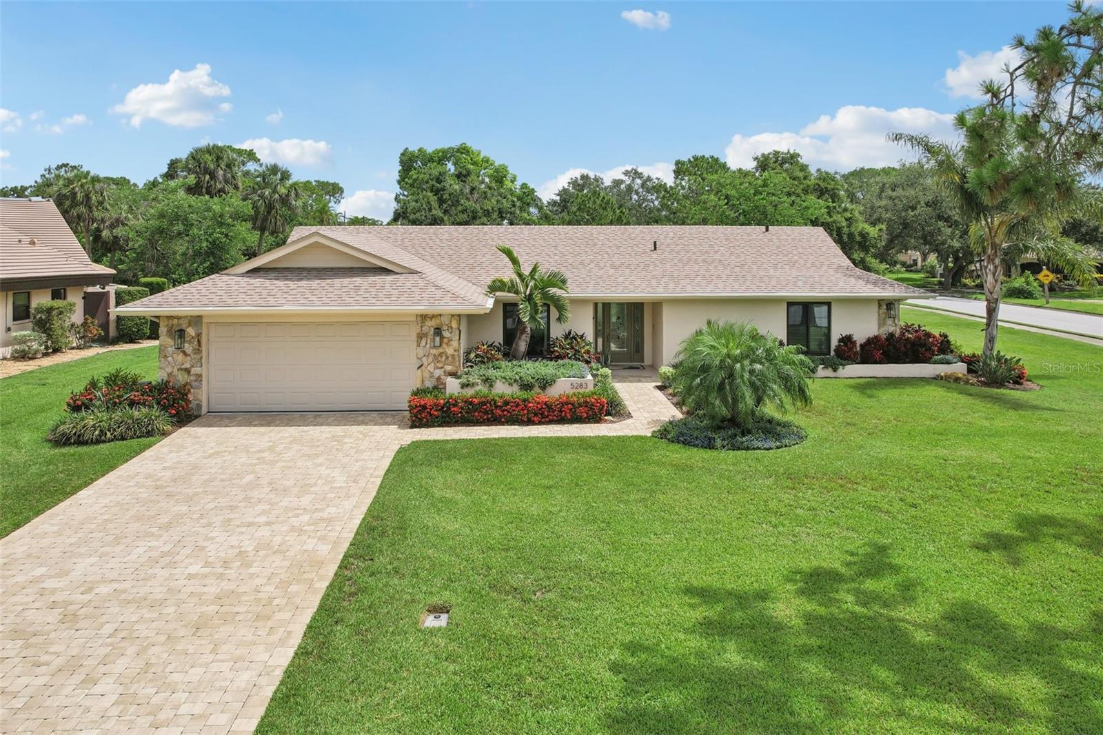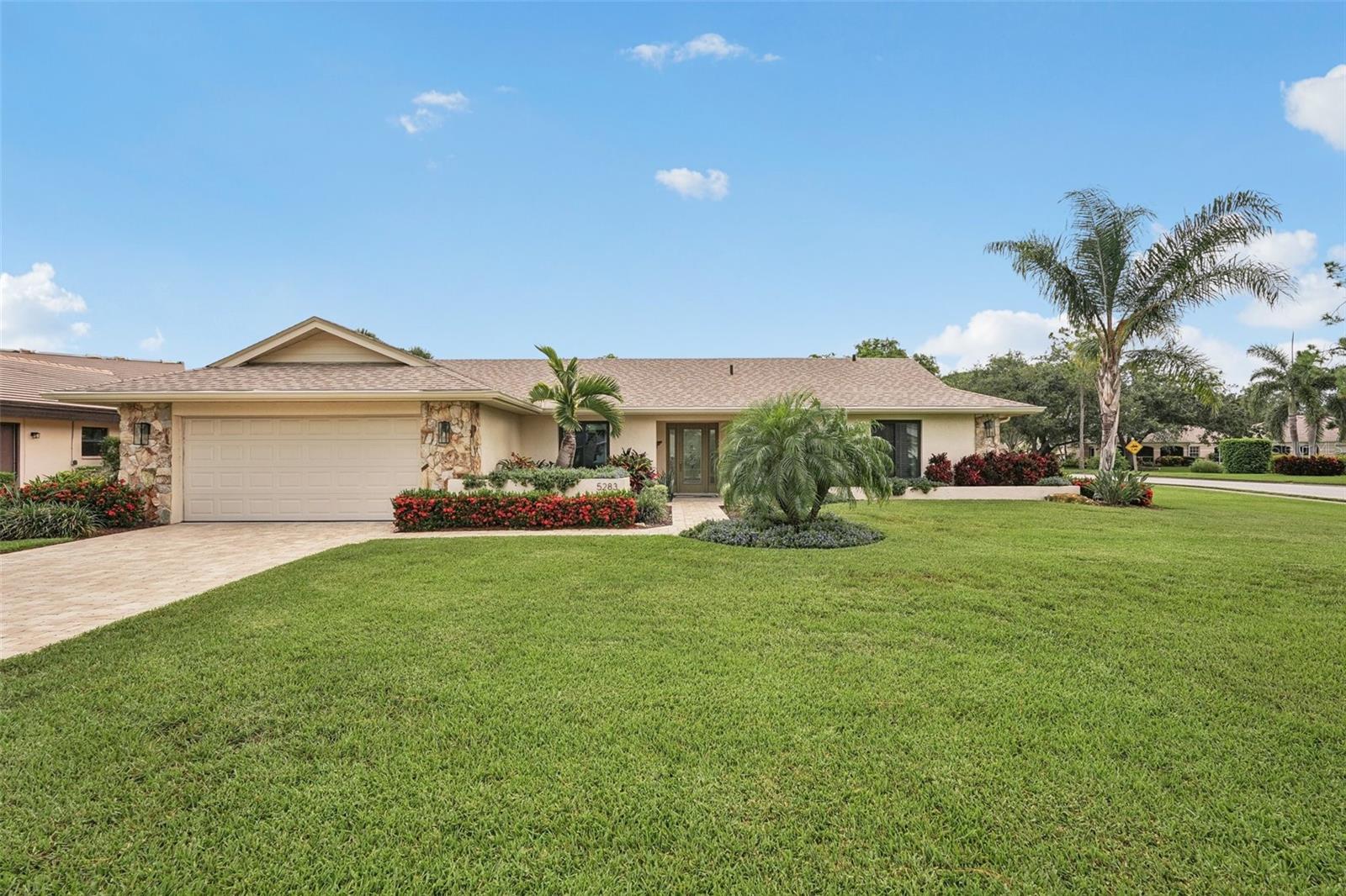 Welcome to your dream home at 5283 Everwood Run, nestled on an expansive oversized corner lot of over 16,000 square feet. This beautifully updated two-bedroom, two-bathroom plus den residence offers a perfect blend of luxury and comfort in the heart of Sarasota. Enjoy breathtaking views of the Meadows Golf Course's 13th hole and 14th tee from the inviting pool area, making this property a true oasis for golf enthusiasts and nature lovers alike. This charming home features a versatile office or den that can easily serve as a potential third bedroom, providing ample space for family and guests. Recent renovations and upgrades include a newer roof equipped with upgraded hurricane tie-down straps and impact-resistant windows and doors, including the garage door, which significantly reduce homeowners' insurance costs. The property boasts owned solar panels installed on the rear roof, ensuring lower energy costs with an existing FPL agreement. Additionally, new blown-in R30 attic insulation was added in 2024 for enhanced energy efficiency, and the exterior and interior have been freshly painted, complemented by new exterior lighting. The elegant paver driveway and front walkway enhance the home's curb appeal. Modern amenities abound, including a whole house water softener and treatment system installed in 2024 for improved water quality, as well as a reverse osmosis water treatment system in the kitchen for pure drinking water. Solid maple flooring throughout the living areas provides a warm and inviting atmosphere. The renovated kitchen, dining, and living areas have been thoughtfully redesigned to create an open floor plan that overlooks the sparkling pool, perfect for entertaining and family gatherings. The guestroom has been reconfigured to provide a second ensuite bedroom for added convenience. Recent upgrades also include the complete removal of popcorn ceilings with a smooth skim coat plaster finish, new recessed lighting, and a fire protection system. New interior solid shaker-style doors, trim, and hardware, along with new 5-inch high baseboards throughout the home, add to the modern aesthetic. The new HVAC system with UV light protection installed in 2022 and the water heater replaced in 2024 ensure worry-free living. Step outside to discover your outdoor paradise, featuring a newly installed pool and lanai cage completed in 2024. The updated and sealed pool pavers, along with a new pool heater and high-efficiency pool filter, ensure your pool is ready for year-round enjoyment. This meticulously maintained home is not just a residence; it's a lifestyle. Don't miss the opportunity to make this exceptional property your own. Schedule a private showing today and experience the perfect blend of luxury, comfort, and stunning views at 5283 Everwood Run!