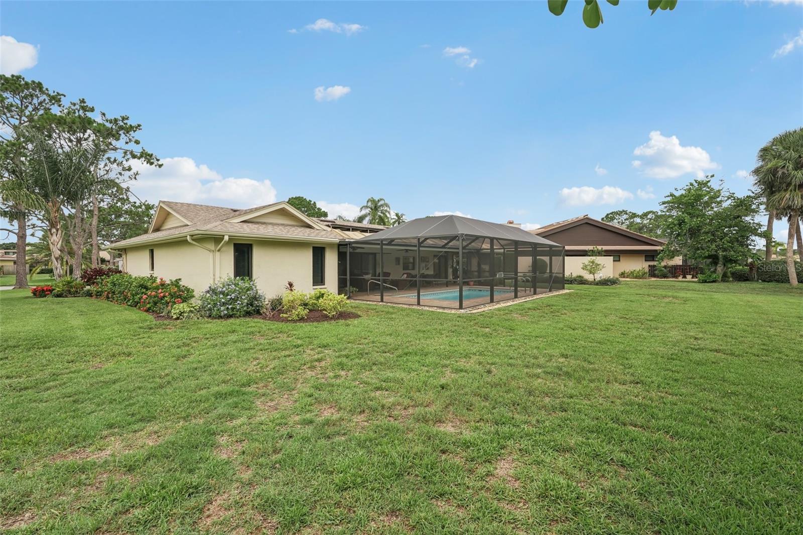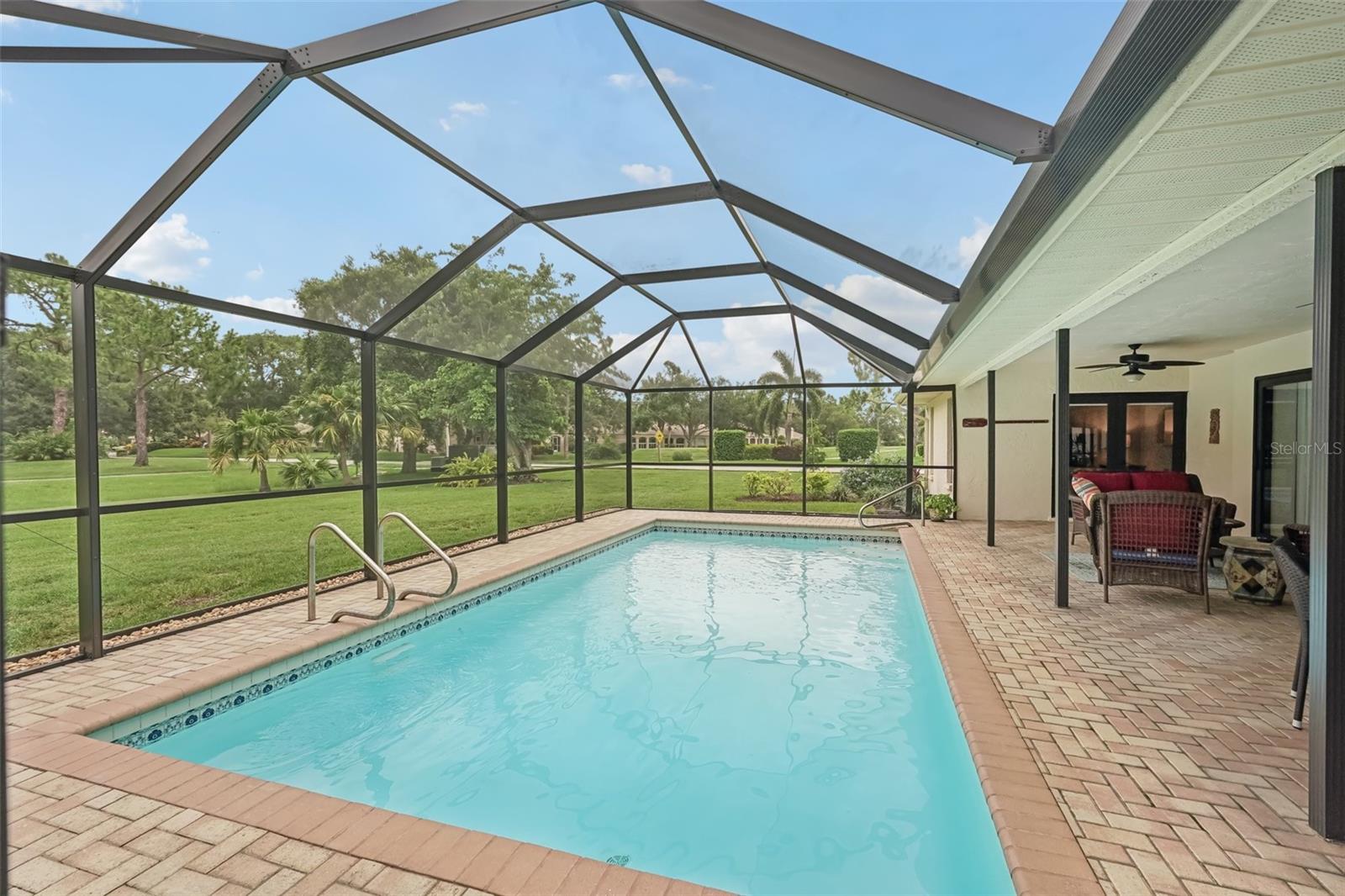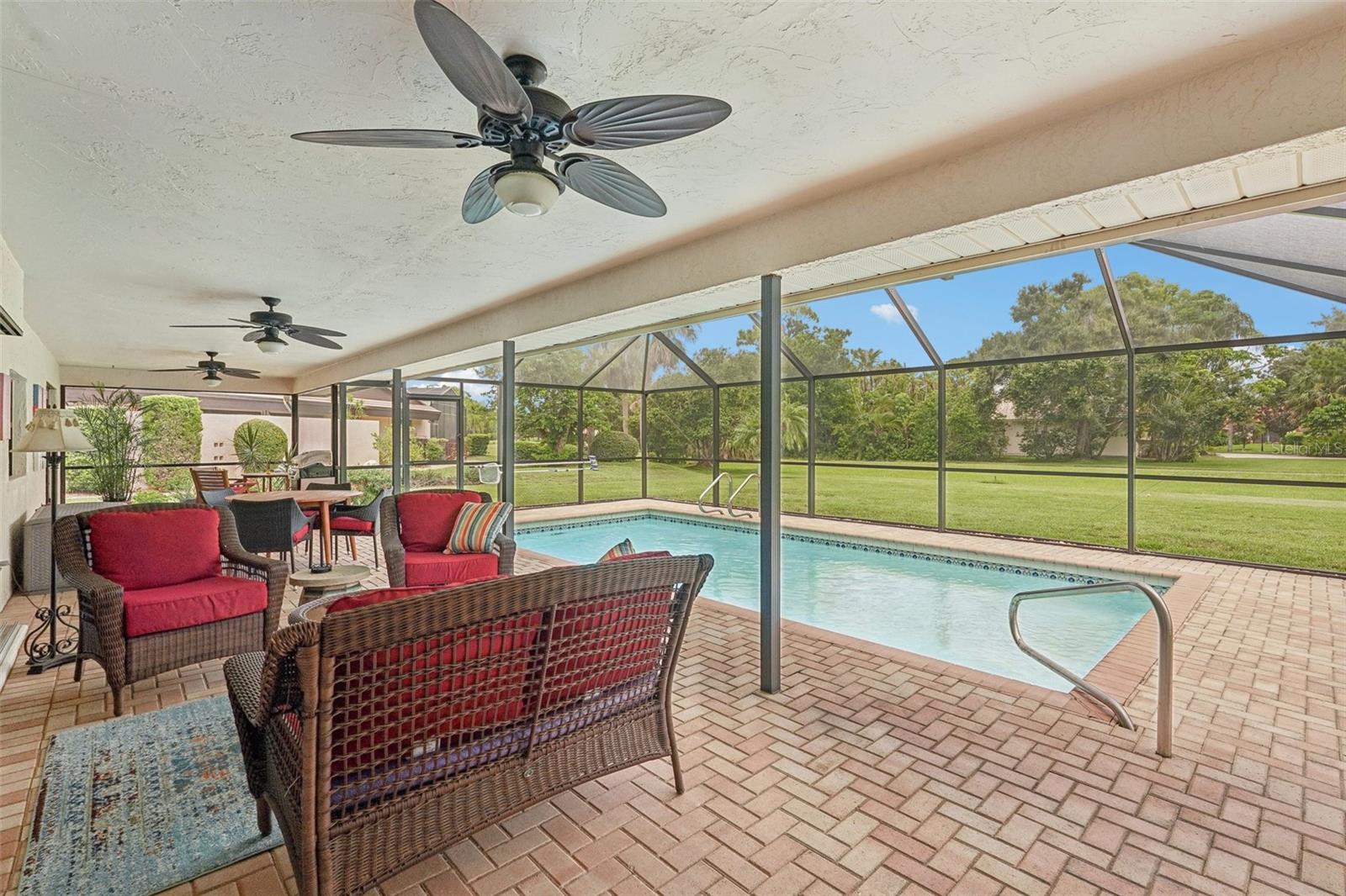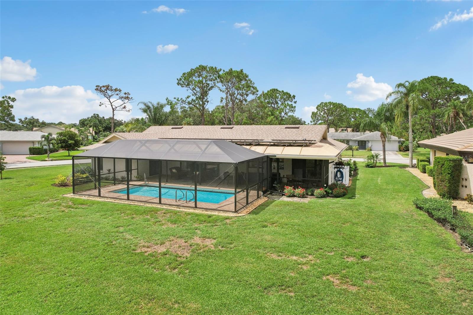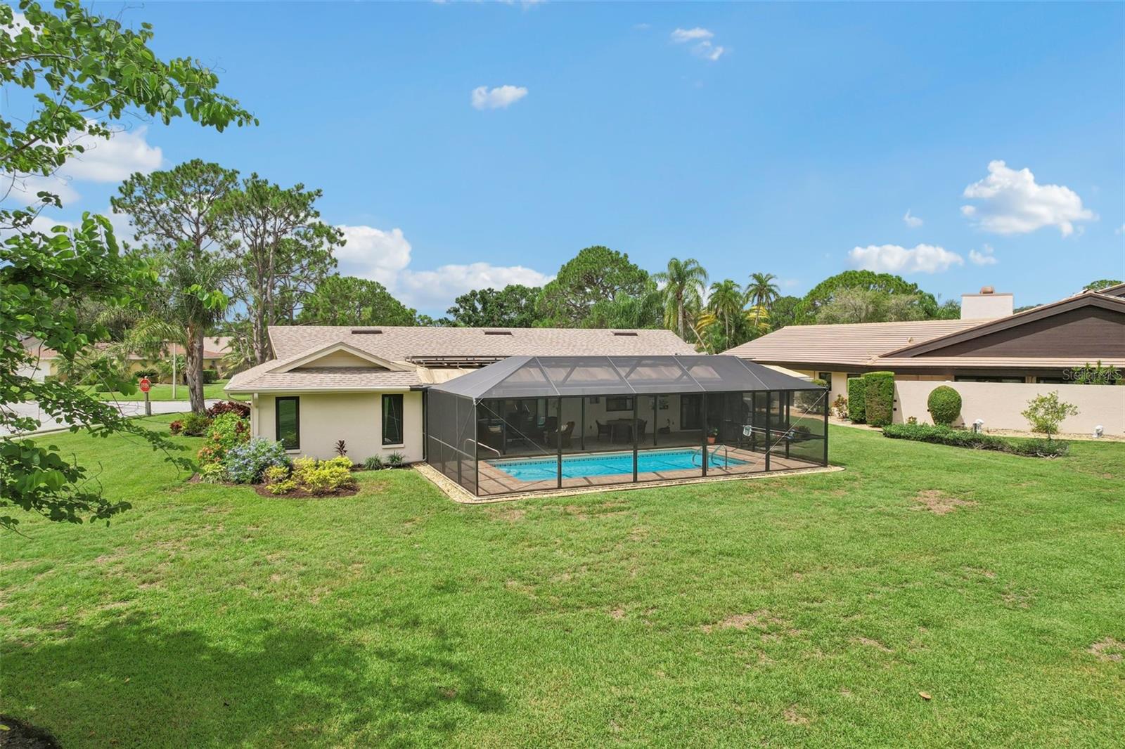 Welcome to your dream home at 5283 Everwood Run, nestled on an expansive oversized corner lot of over 16,000 square feet. This beautifully updated two-bedroom, two-bathroom plus den residence offers a perfect blend of luxury and comfort in the heart of Sarasota. Enjoy breathtaking views of the Meadows Golf Course's 13th hole and 14th tee from the inviting pool area, making this property a true oasis for golf enthusiasts and nature lovers alike. This charming home features a versatile office or den that can easily serve as a potential third bedroom, providing ample space for family and guests. Recent renovations and upgrades include a newer roof equipped with upgraded hurricane tie-down straps and impact-resistant windows and doors, including the garage door, which significantly reduce homeowners' insurance costs. The property boasts owned solar panels installed on the rear roof, ensuring lower energy costs with an existing FPL agreement. Additionally, new blown-in R30 attic insulation was added in 2024 for enhanced energy efficiency, and the exterior and interior have been freshly painted, complemented by new exterior lighting. The elegant paver driveway and front walkway enhance the home's curb appeal. Modern amenities abound, including a whole house water softener and treatment system installed in 2024 for improved water quality, as well as a reverse osmosis water treatment system in the kitchen for pure drinking water. Solid maple flooring throughout the living areas provides a warm and inviting atmosphere. The renovated kitchen, dining, and living areas have been thoughtfully redesigned to create an open floor plan that overlooks the sparkling pool, perfect for entertaining and family gatherings. The guestroom has been reconfigured to provide a second ensuite bedroom for added convenience. Recent upgrades also include the complete removal of popcorn ceilings with a smooth skim coat plaster finish, new recessed lighting, and a fire protection system. New interior solid shaker-style doors, trim, and hardware, along with new 5-inch high baseboards throughout the home, add to the modern aesthetic. The new HVAC system with UV light protection installed in 2022 and the water heater replaced in 2024 ensure worry-free living. Step outside to discover your outdoor paradise, featuring a newly installed pool and lanai cage completed in 2024. The updated and sealed pool pavers, along with a new pool heater and high-efficiency pool filter, ensure your pool is ready for year-round enjoyment. This meticulously maintained home is not just a residence; it's a lifestyle. Don't miss the opportunity to make this exceptional property your own. Schedule a private showing today and experience the perfect blend of luxury, comfort, and stunning views at 5283 Everwood Run!
