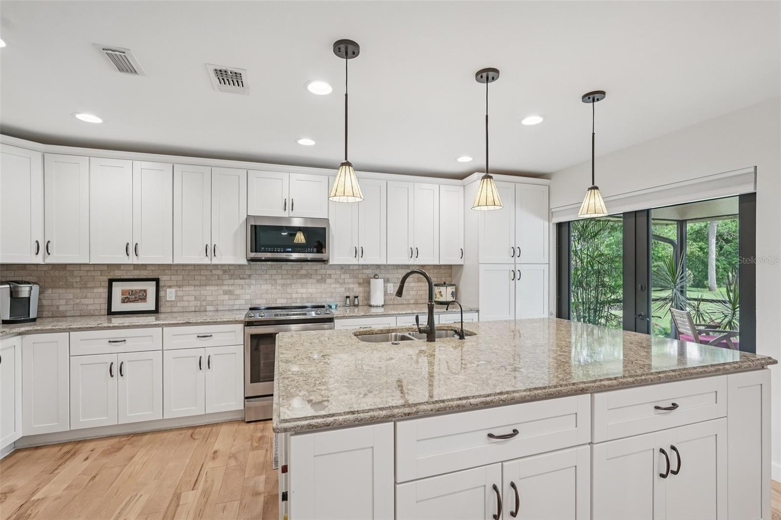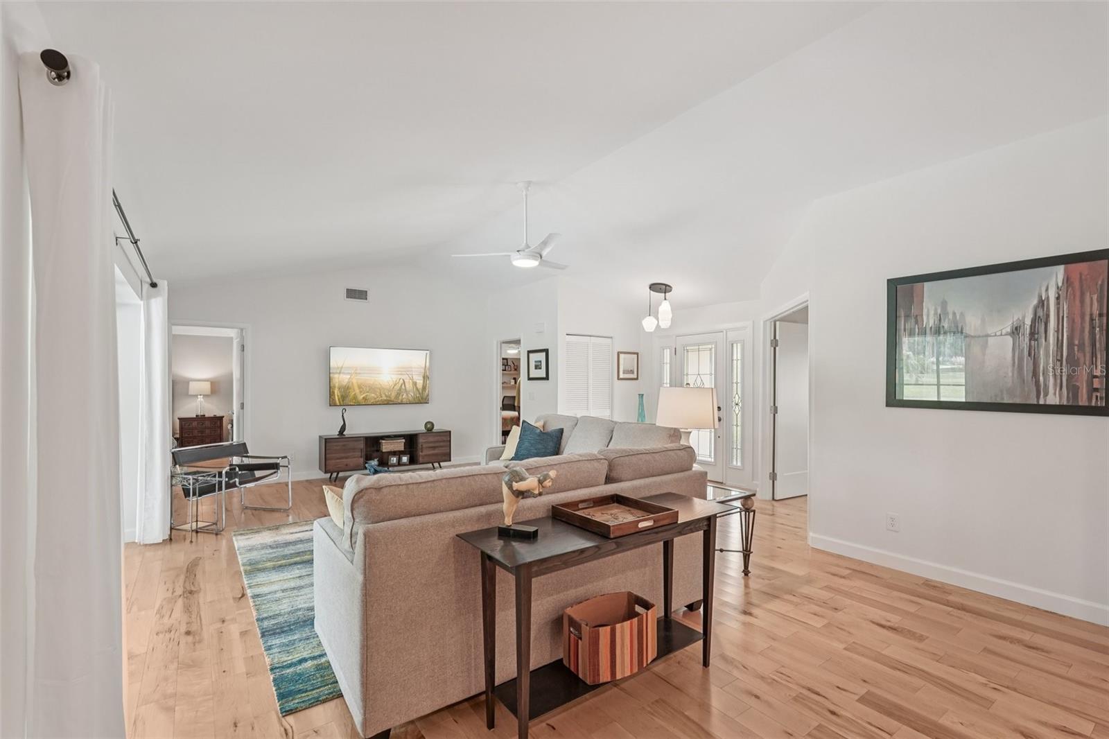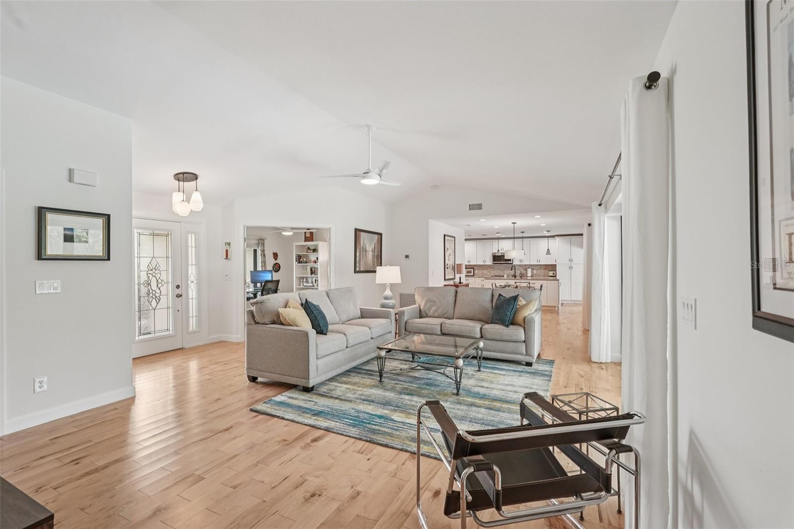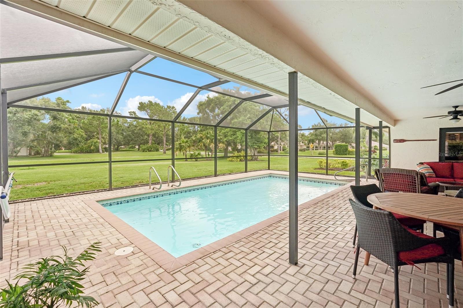 Welcome to your dream home at 5283 Everwood Run, nestled on an expansive oversized corner lot of over 16,000 square feet. This beautifully updated two-bedroom, two-bathroom plus den residence offers a perfect blend of luxury and comfort in the heart of Sarasota. Enjoy breathtaking views of the Meadows Golf Course's 13th hole and 14th tee from the inviting pool area, making this property a true oasis for golf enthusiasts and nature lovers alike. This charming home features a versatile office or den that can easily serve as a potential third bedroom, providing ample space for family and guests. Recent renovations and upgrades include a newer roof equipped with upgraded hurricane tie-down straps and impact-resistant windows and doors, including the garage door, which significantly reduce homeowners' insurance costs. The property boasts owned solar panels installed on the rear roof, ensuring lower energy costs with an existing FPL agreement. Additionally, new blown-in R30 attic insulation was added in 2024 for enhanced energy efficiency, and the exterior and interior have been freshly painted, complemented by new exterior lighting. The elegant paver driveway and front walkway enhance the home's curb appeal. Modern amenities abound, including a whole house water softener and treatment system installed in 2024 for improved water quality, as well as a reverse osmosis water treatment system in the kitchen for pure drinking water. Solid maple flooring throughout the living areas provides a warm and inviting atmosphere. The renovated kitchen, dining, and living areas have been thoughtfully redesigned to create an open floor plan that overlooks the sparkling pool, perfect for entertaining and family gatherings. The guestroom has been reconfigured to provide a second ensuite bedroom for added convenience. Recent upgrades also include the complete removal of popcorn ceilings with a smooth skim coat plaster finish, new recessed lighting, and a fire protection system. New interior solid shaker-style doors, trim, and hardware, along with new 5-inch high baseboards throughout the home, add to the modern aesthetic. The new HVAC system with UV light protection installed in 2022 and the water heater replaced in 2024 ensure worry-free living. Step outside to discover your outdoor paradise, featuring a newly installed pool and lanai cage completed in 2024. The updated and sealed pool pavers, along with a new pool heater and high-efficiency pool filter, ensure your pool is ready for year-round enjoyment. This meticulously maintained home is not just a residence; it's a lifestyle. Don't miss the opportunity to make this exceptional property your own. Schedule a private showing today and experience the perfect blend of luxury, comfort, and stunning views at 5283 Everwood Run!