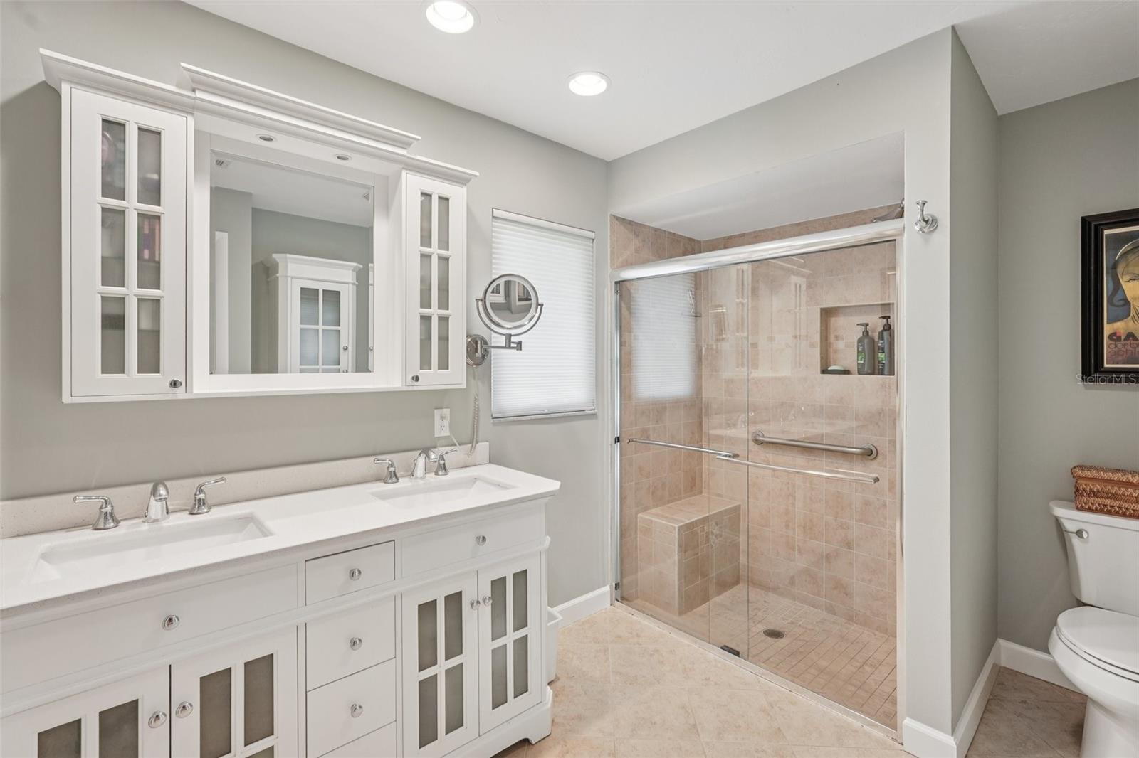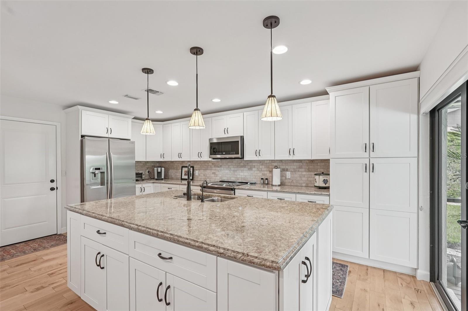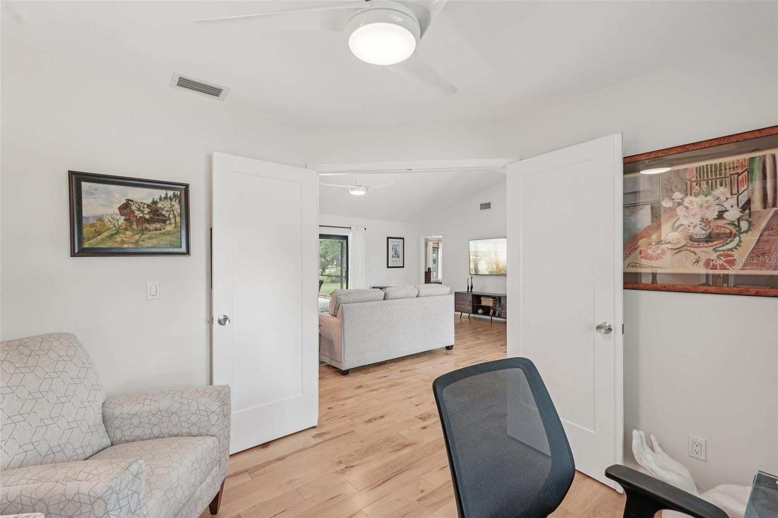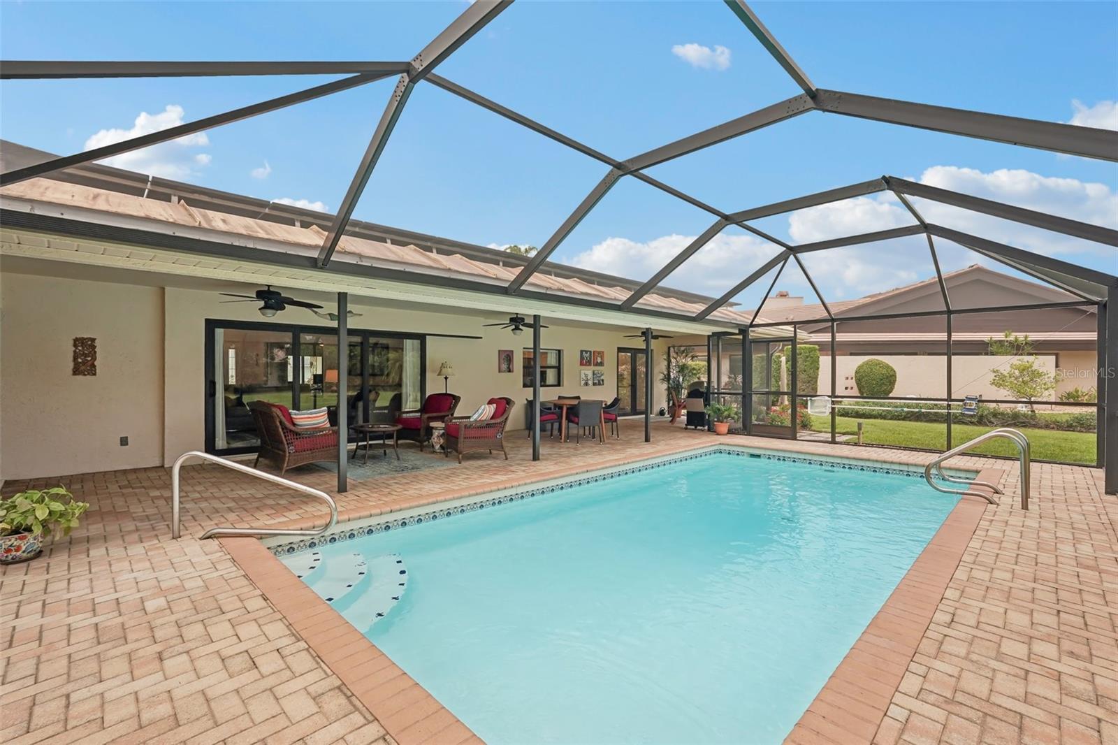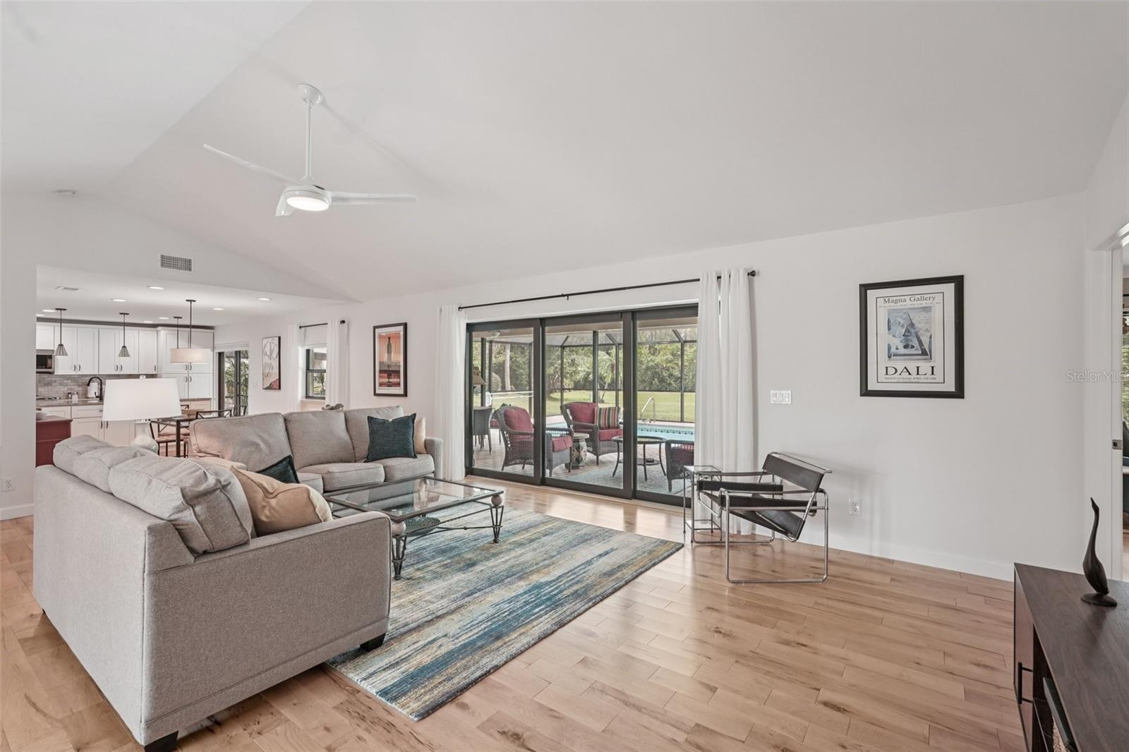 Welcome to your dream home at 5283 Everwood Run, nestled on an expansive oversized corner lot of over 16,000 square feet. This beautifully updated two-bedroom, two-bathroom plus den residence offers a perfect blend of luxury and comfort in the heart of Sarasota. Enjoy breathtaking views of the Meadows Golf Course's 13th hole and 14th tee from the inviting pool area, making this property a true oasis for golf enthusiasts and nature lovers alike. This charming home features a versatile office or den that can easily serve as a potential third bedroom, providing ample space for family and guests. Recent renovations and upgrades include a newer roof equipped with upgraded hurricane tie-down straps and impact-resistant windows and doors, including the garage door, which significantly reduce homeowners' insurance costs. The property boasts owned solar panels installed on the rear roof, ensuring lower energy costs with an existing FPL agreement. Additionally, new blown-in R30 attic insulation was added in 2024 for enhanced energy efficiency, and the exterior and interior have been freshly painted, complemented by new exterior lighting. The elegant paver driveway and front walkway enhance the home's curb appeal. Modern amenities abound, including a whole house water softener and treatment system installed in 2024 for improved water quality, as well as a reverse osmosis water treatment system in the kitchen for pure drinking water. Solid maple flooring throughout the living areas provides a warm and inviting atmosphere. The renovated kitchen, dining, and living areas have been thoughtfully redesigned to create an open floor plan that overlooks the sparkling pool, perfect for entertaining and family gatherings. The guestroom has been reconfigured to provide a second ensuite bedroom for added convenience. Recent upgrades also include the complete removal of popcorn ceilings with a smooth skim coat plaster finish, new recessed lighting, and a fire protection system. New interior solid shaker-style doors, trim, and hardware, along with new 5-inch high baseboards throughout the home, add to the modern aesthetic. The new HVAC system with UV light protection installed in 2022 and the water heater replaced in 2024 ensure worry-free living. Step outside to discover your outdoor paradise, featuring a newly installed pool and lanai cage completed in 2024. The updated and sealed pool pavers, along with a new pool heater and high-efficiency pool filter, ensure your pool is ready for year-round enjoyment. This meticulously maintained home is not just a residence; it's a lifestyle. Don't miss the opportunity to make this exceptional property your own. Schedule a private showing today and experience the perfect blend of luxury, comfort, and stunning views at 5283 Everwood Run!