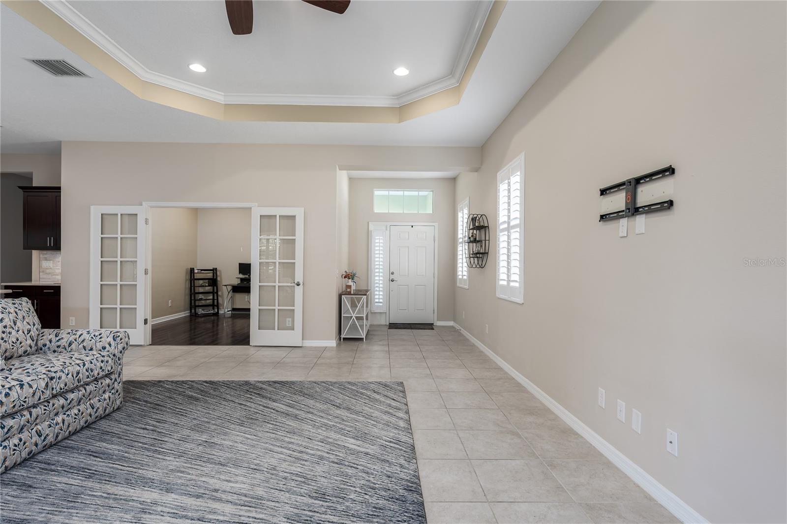 Resort-style living meets everyday comfort in this beautifully maintained 3-bedroom, 2-bath home by Neal Communities, located in the gated community of Eagle Trace. Set on a preserve lot for added privacy, this home features no CDD fees, no flood insurance required, and maintenance-free lawn care--front and back, and A BRAND-NEW ROOF!!Inside, you'll find a much-desired 3-car garage, an expansive open-concept great room with tray ceilings, and a well-appointed kitchen with a breakfast bar, walk-in pantry, and dining area. Triple sliders lead to a 27x9 screened lanai, creating seamless indoor-outdoor living for entertaining or relaxing. The split-bedroom layout includes walk-in closets in all bedrooms plus a flexible 13x13 office that could easily serve as a music room, playroom, or guest space.Eagle Trace offers a gated, amenity-rich lifestyle with a resort-style pool and spa, tennis and pickleball courts, dog parks, playground, clubhouse, and walking trails. Ideally located just minutes to I-75, shopping, dining, and newer schools--this home delivers privacy, flexibility, and low-maintenance living in one of Bradenton's most sought-after communities.