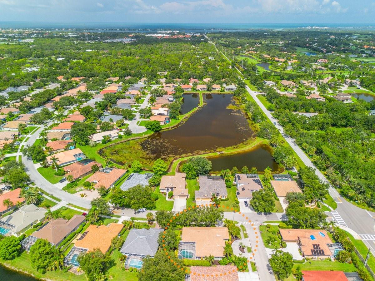 SIGNIFICANT PRICE IMPROVEMENT!! Welcome to your dream home! This stunning, custom-built 4 bedroom, 3 bathroom residence perfectly blends luxury, comfort, and location for the ideal Florida lifestyle. This home is nestled in a highly sought-after neighborhood offering peace, privacy, and a vibrant community feel with low HOA fees. It is situated on an over-sized corner lot, with exceptional lake-views, and just moments from several pristine beaches, the scenic Legacy Trail, Pineview School plus other nearby "A-Rated" public schools, and Oscar Scherer State Park. Being centrally located, you will enjoy all the amenities Sarasota and Venice have, including arts, entertainment, championship golf, restaurants and shopping. There are numerous property features, including: 3 spacious bedrooms and the 4th used as a dedicated office, each with ample natural light and generous closet space, 3 luxurious bathrooms featuring designer fixtures and upgraded finishes, inviting living and dining areas with soaring ceilings and panoramic lake views, gourmet kitchen with custom cabinetry, granite countertops, and stainless appliances, a dedicated office with custom cabinetry, expansive screened lanai overlooking a sparkling, private pool, perfect for relaxing or entertaining, Primary Suite retreat with en-suite bathroom and direct lakeview access, Professionally landscaped grounds designed for beauty and low maintenance, Attached two-car garage with extra storage, New tile roof (June '25) with 10-year transferable warranty, New HVAC system (2024), New Hot Water Heater (2024), New pool equipment system (2024), the home is wired and prepped for Standby House Generator, Water Softener System, Urethane Coating on garage floor. Picture yourself starting your mornings with serene lake views, enjoying the day by your private pool, and making memories with family and friends in your spacious, elegantly appointed home. Whether you're seeking tranquil relaxation or active outdoor adventures, this exceptional property offers it all.