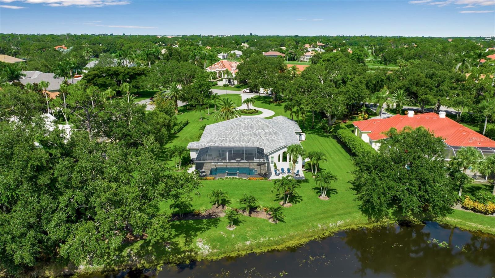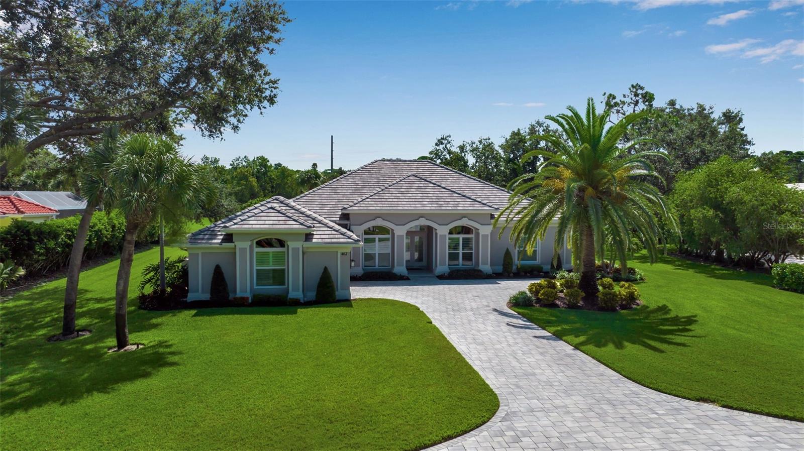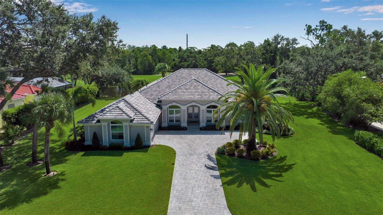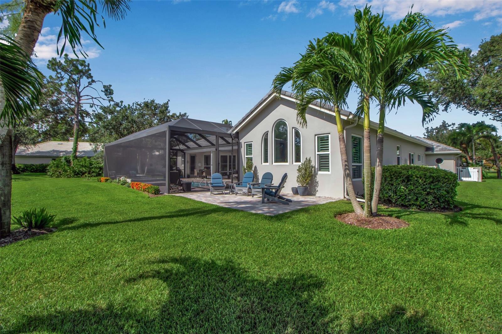 This completely remodeled home in The Oaks Clubside, set on nearly an acre of mature, meticulously landscaped grounds, is pure perfection. Nestled behind the gates of The Oaks Clubside, this residence is a masterful blend of classic elegance and contemporary sophistication. Arriving at the property, you are greeted by a striking full-circle driveway--a graceful approach that not only enhances the home's curb appeal but also provides abundant guest parking for social gatherings and celebrations with loved ones. Step through the double front doors, with leaded glass, and you will immediately be taken by the clean lines and modern elegance of this home. The floors throughout the main living area are wood-look tile, making for beauty as well as ease of maintenance. The numerous high ceilings, windows and doors make the entire interior open, light and airy. With three generously sized bedrooms, an office or den, and two and a half baths, the layout adapts effortlessly to a variety of needs. The open floor plan ensures that each room enjoys picturesque views of the private lot, blurring the boundaries between indoor comfort and the natural beauty outside. The open kitchen will delight any home chef with its high-end stainless steel appliances, wide expanse of quartz countertops, an abundance of cabinetry for storage and a breakfast bar. There is a cozy breakfast nook, with a gorgeous outdoor view, for causal meals, and a formal dining room. The master suite is a study in luxury. This bright, spacious retreat features an incredible bathroom with a sunken tub and huge separate shower. The entire outdoor space has been thoughtfully updated, with ample areas for lounging, dining, and entertaining. The inviting pool and spa beckon you to cool off on a sunny afternoon or unwind beneath the stars. The new sleek pool cage ensures you can enjoy the outdoors in comfort, with incredible views. This home boasts a host of recent upgrades designed to provide ultimate comfort and efficiency. Impact windows and doors offer storm protection and energy savings while letting in abundant light. A new roof adds to the peace of mind, ensuring years of worry-free living. Add to all this, a large laundry room, a big, clean garage, custom lighting, plantation shutters, a gorgeous fireplace and so much more, and you have discovered the perfect home for living ultimate country club lifestyle on the Gulf Coast. The Oaks, Sarasota's premier golf and country club, has two championship golf courses, an outstanding tennis program, pickle ball and croquet courts, a junior Olympic community pool, state-of-the-art fitness center and offers a wide variety of dining, recreational and social options. Membership is required with homeownership.