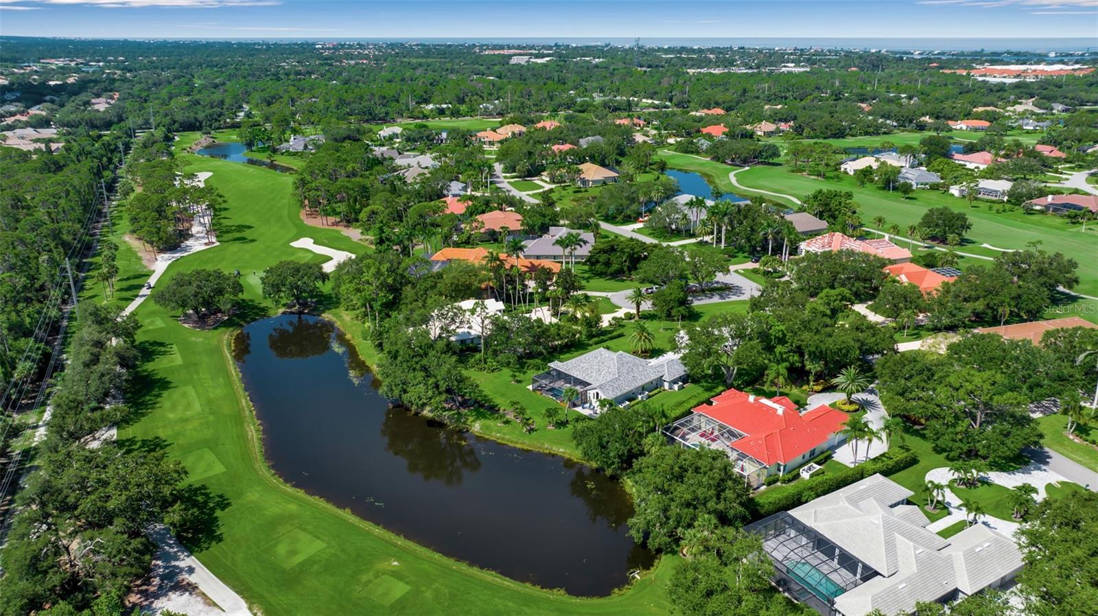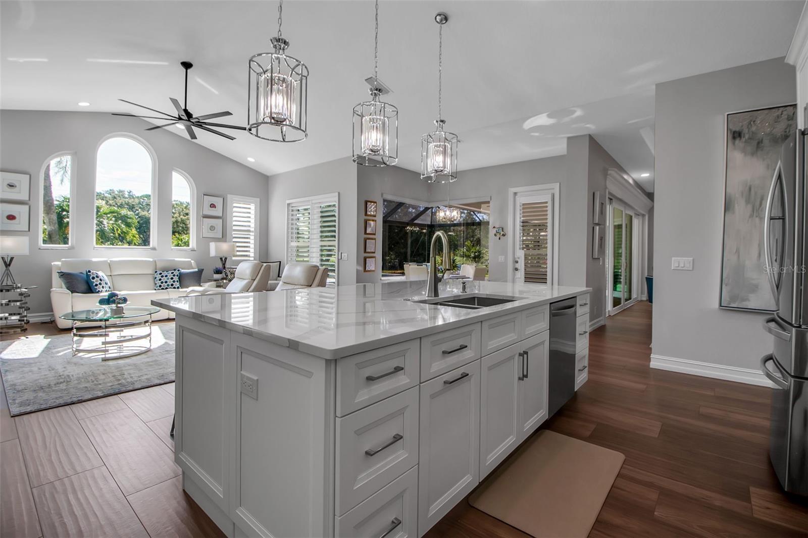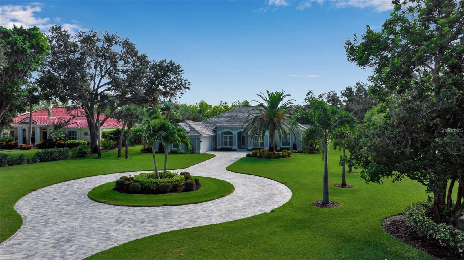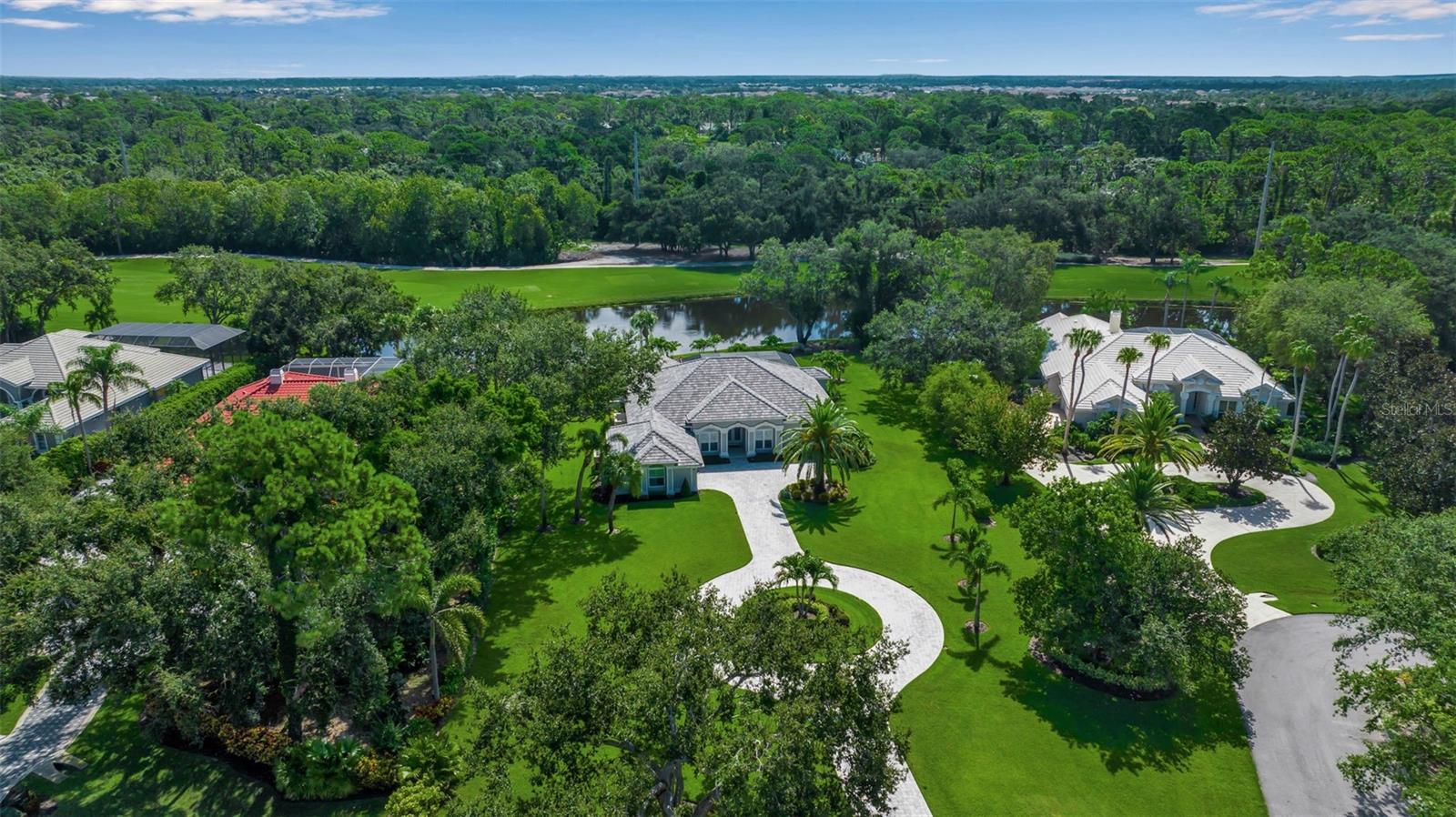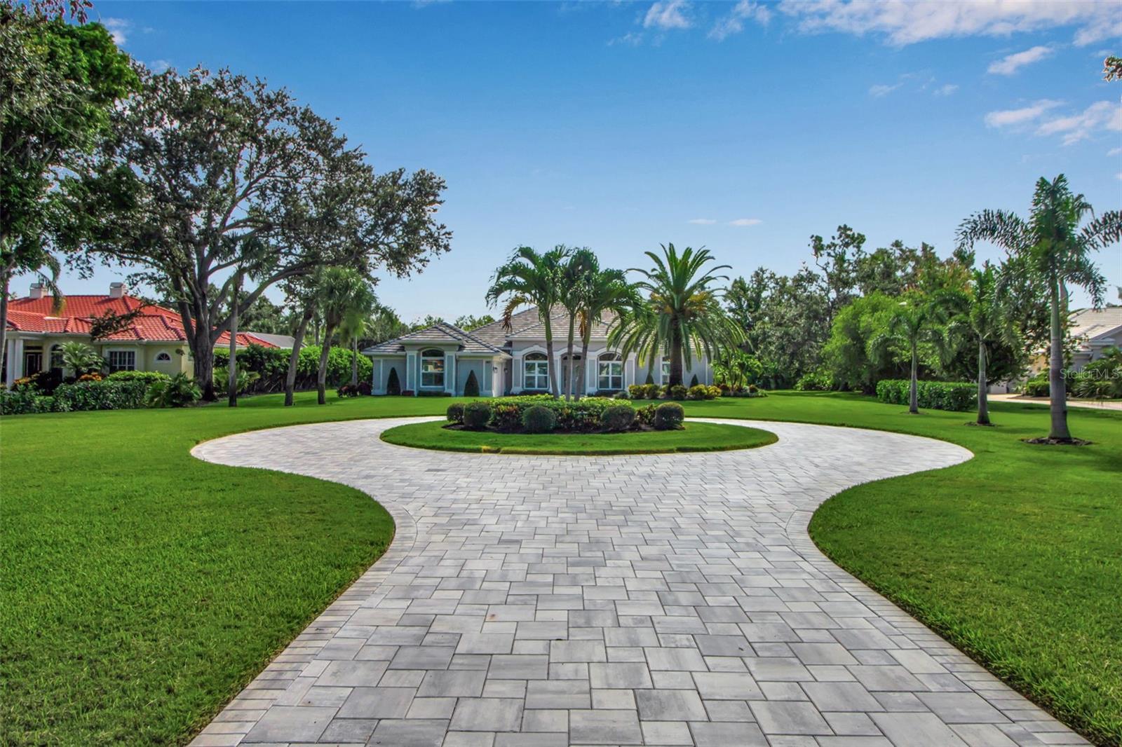 This completely remodeled home in The Oaks Clubside, set on nearly an acre of mature, meticulously landscaped grounds, is pure perfection. Nestled behind the gates of The Oaks Clubside, this residence is a masterful blend of classic elegance and contemporary sophistication. Arriving at the property, you are greeted by a striking full-circle driveway--a graceful approach that not only enhances the home's curb appeal but also provides abundant guest parking for social gatherings and celebrations with loved ones. Step through the double front doors, with leaded glass, and you will immediately be taken by the clean lines and modern elegance of this home. The floors throughout the main living area are wood-look tile, making for beauty as well as ease of maintenance. The numerous high ceilings, windows and doors make the entire interior open, light and airy. With three generously sized bedrooms, an office or den, and two and a half baths, the layout adapts effortlessly to a variety of needs. The open floor plan ensures that each room enjoys picturesque views of the private lot, blurring the boundaries between indoor comfort and the natural beauty outside. The open kitchen will delight any home chef with its high-end stainless steel appliances, wide expanse of quartz countertops, an abundance of cabinetry for storage and a breakfast bar. There is a cozy breakfast nook, with a gorgeous outdoor view, for causal meals, and a formal dining room. The master suite is a study in luxury. This bright, spacious retreat features an incredible bathroom with a sunken tub and huge separate shower. The entire outdoor space has been thoughtfully updated, with ample areas for lounging, dining, and entertaining. The inviting pool and spa beckon you to cool off on a sunny afternoon or unwind beneath the stars. The new sleek pool cage ensures you can enjoy the outdoors in comfort, with incredible views. This home boasts a host of recent upgrades designed to provide ultimate comfort and efficiency. Impact windows and doors offer storm protection and energy savings while letting in abundant light. A new roof adds to the peace of mind, ensuring years of worry-free living. Add to all this, a large laundry room, a big, clean garage, custom lighting, plantation shutters, a gorgeous fireplace and so much more, and you have discovered the perfect home for living ultimate country club lifestyle on the Gulf Coast. The Oaks, Sarasota's premier golf and country club, has two championship golf courses, an outstanding tennis program, pickle ball and croquet courts, a junior Olympic community pool, state-of-the-art fitness center and offers a wide variety of dining, recreational and social options. Membership is required with homeownership.