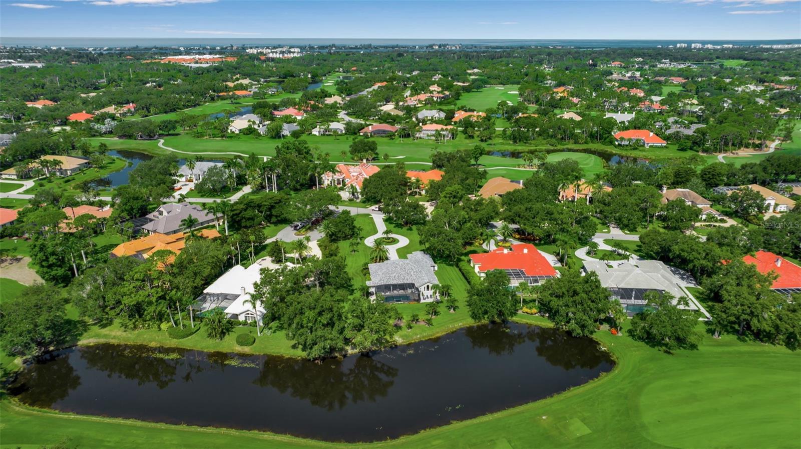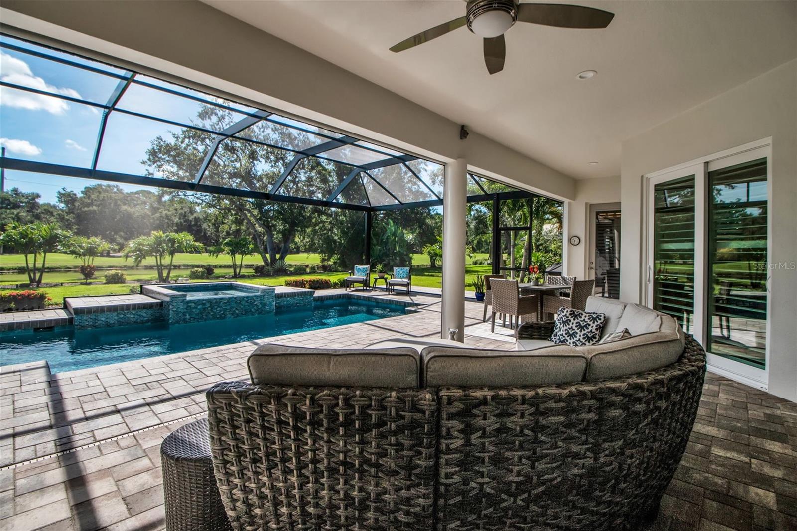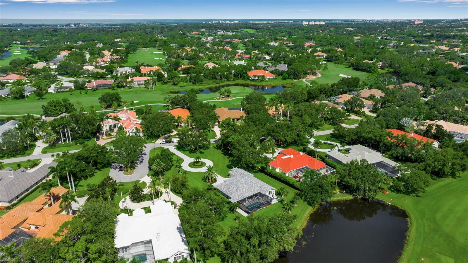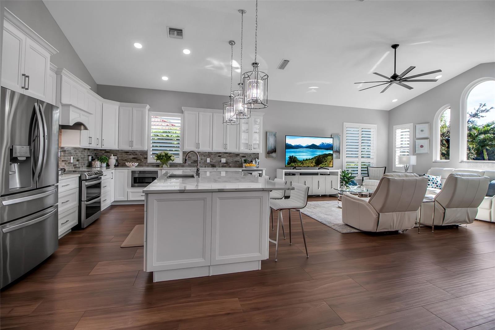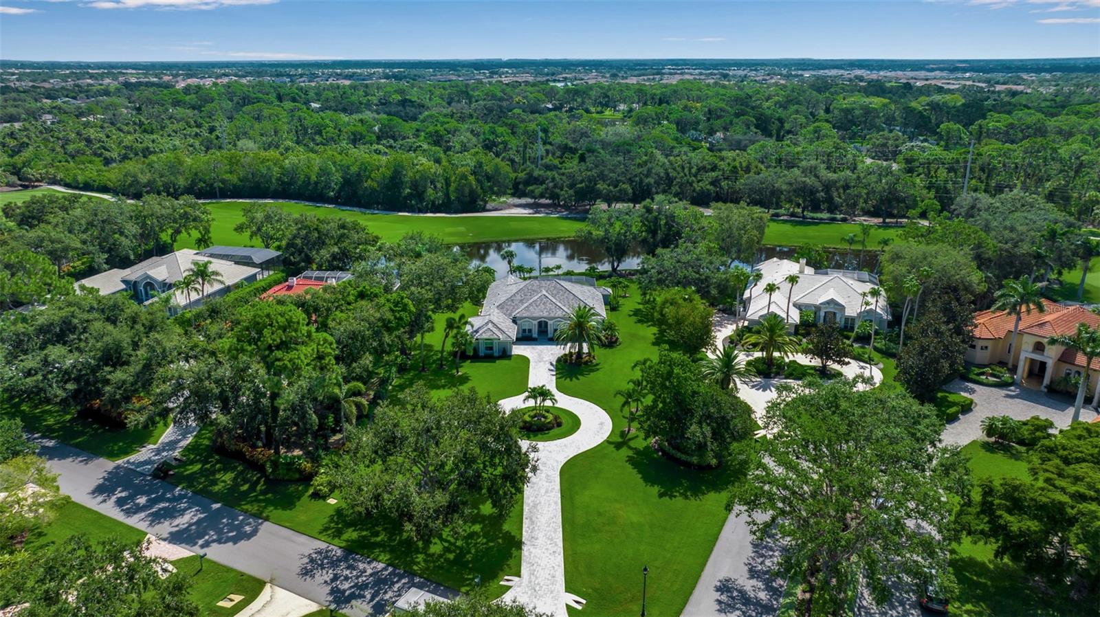 This completely remodeled home in The Oaks Clubside, set on nearly an acre of mature, meticulously landscaped grounds, is pure perfection. Nestled behind the gates of The Oaks Clubside, this residence is a masterful blend of classic elegance and contemporary sophistication. Arriving at the property, you are greeted by a striking full-circle driveway--a graceful approach that not only enhances the home's curb appeal but also provides abundant guest parking for social gatherings and celebrations with loved ones. Step through the double front doors, with leaded glass, and you will immediately be taken by the clean lines and modern elegance of this home. The floors throughout the main living area are wood-look tile, making for beauty as well as ease of maintenance. The numerous high ceilings, windows and doors make the entire interior open, light and airy. With three generously sized bedrooms, an office or den, and two and a half baths, the layout adapts effortlessly to a variety of needs. The open floor plan ensures that each room enjoys picturesque views of the private lot, blurring the boundaries between indoor comfort and the natural beauty outside. The open kitchen will delight any home chef with its high-end stainless steel appliances, wide expanse of quartz countertops, an abundance of cabinetry for storage and a breakfast bar. There is a cozy breakfast nook, with a gorgeous outdoor view, for causal meals, and a formal dining room. The master suite is a study in luxury. This bright, spacious retreat features an incredible bathroom with a sunken tub and huge separate shower. The entire outdoor space has been thoughtfully updated, with ample areas for lounging, dining, and entertaining. The inviting pool and spa beckon you to cool off on a sunny afternoon or unwind beneath the stars. The new sleek pool cage ensures you can enjoy the outdoors in comfort, with incredible views. This home boasts a host of recent upgrades designed to provide ultimate comfort and efficiency. Impact windows and doors offer storm protection and energy savings while letting in abundant light. A new roof adds to the peace of mind, ensuring years of worry-free living. Add to all this, a large laundry room, a big, clean garage, custom lighting, plantation shutters, a gorgeous fireplace and so much more, and you have discovered the perfect home for living ultimate country club lifestyle on the Gulf Coast. The Oaks, Sarasota's premier golf and country club, has two championship golf courses, an outstanding tennis program, pickle ball and croquet courts, a junior Olympic community pool, state-of-the-art fitness center and offers a wide variety of dining, recreational and social options. Membership is required with homeownership.