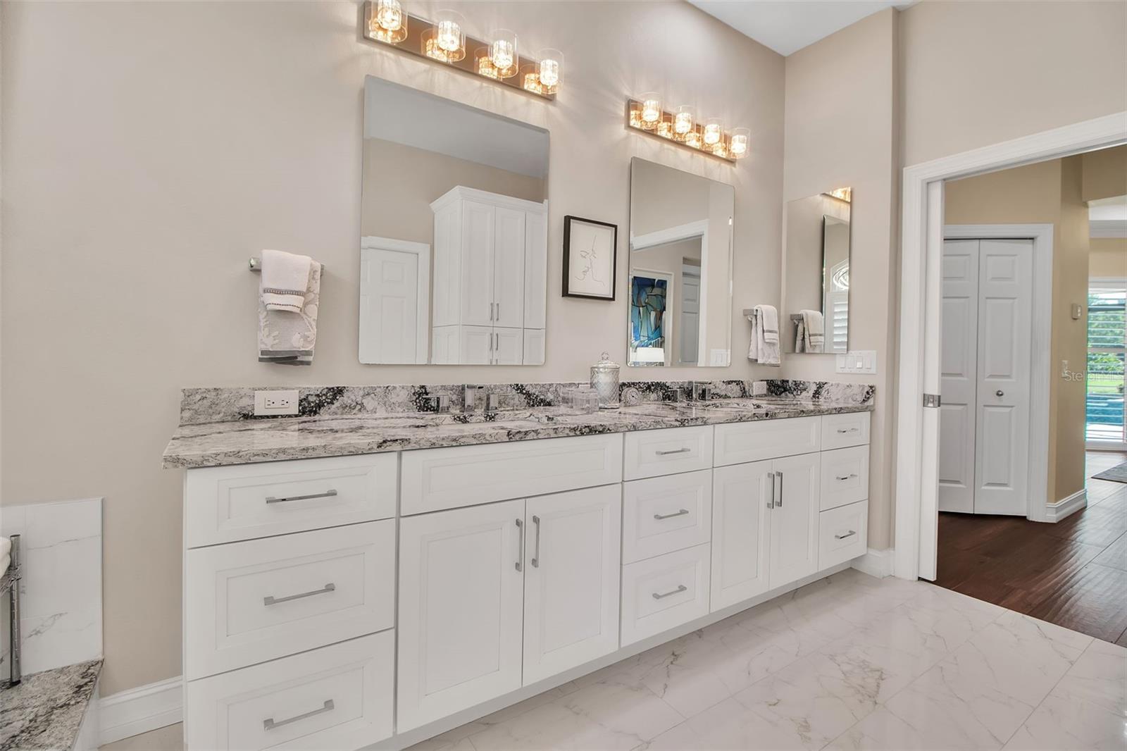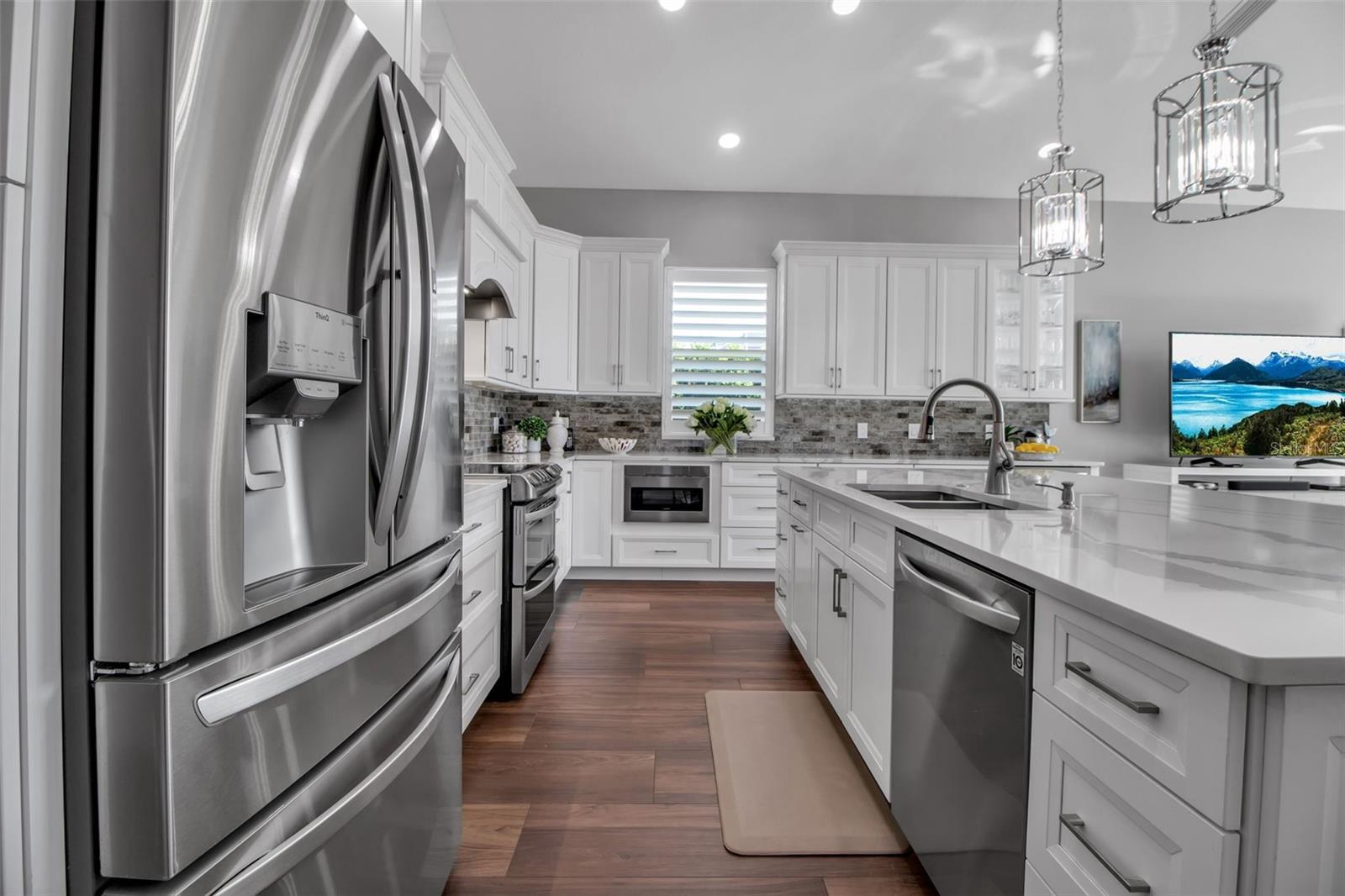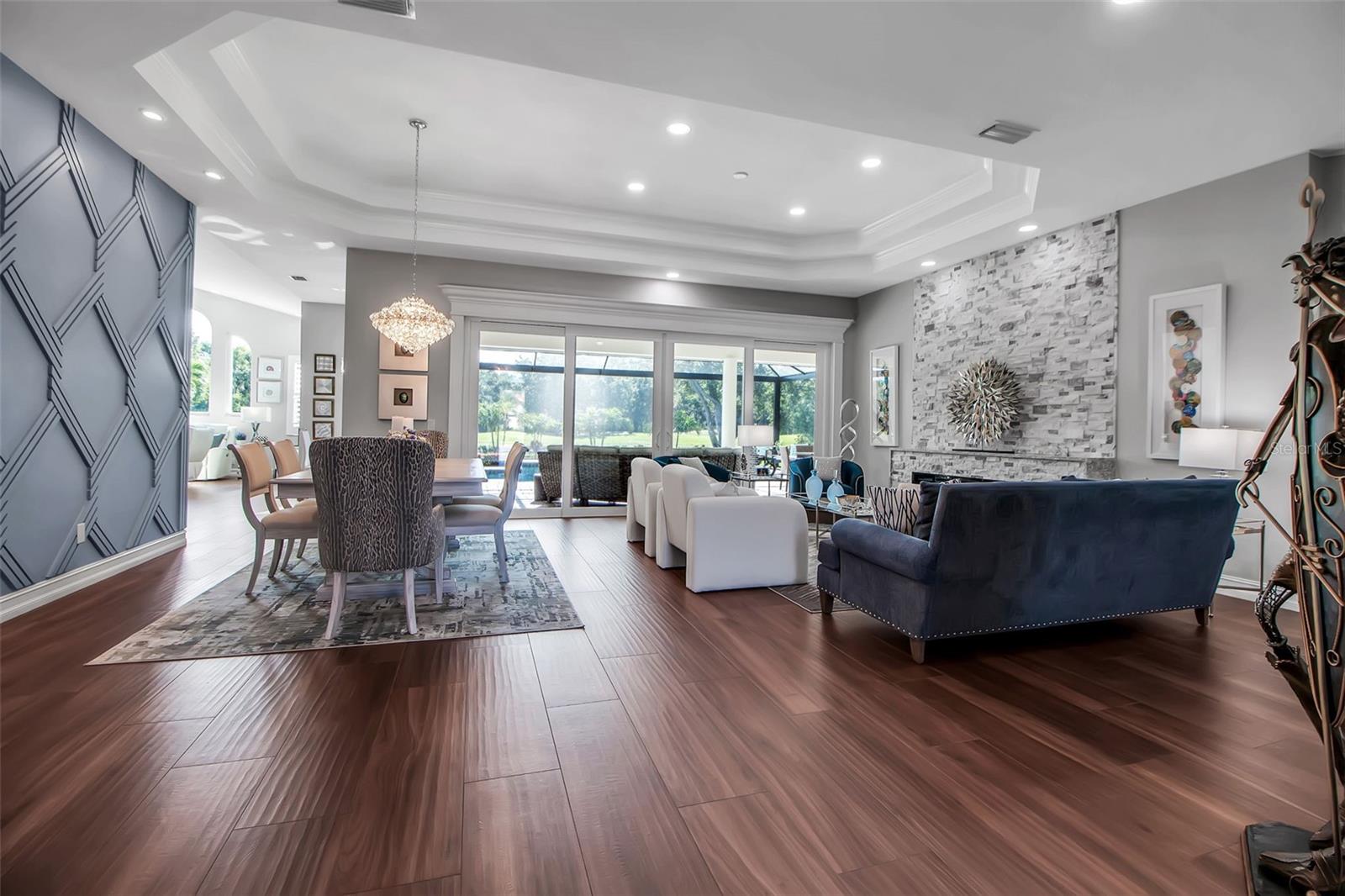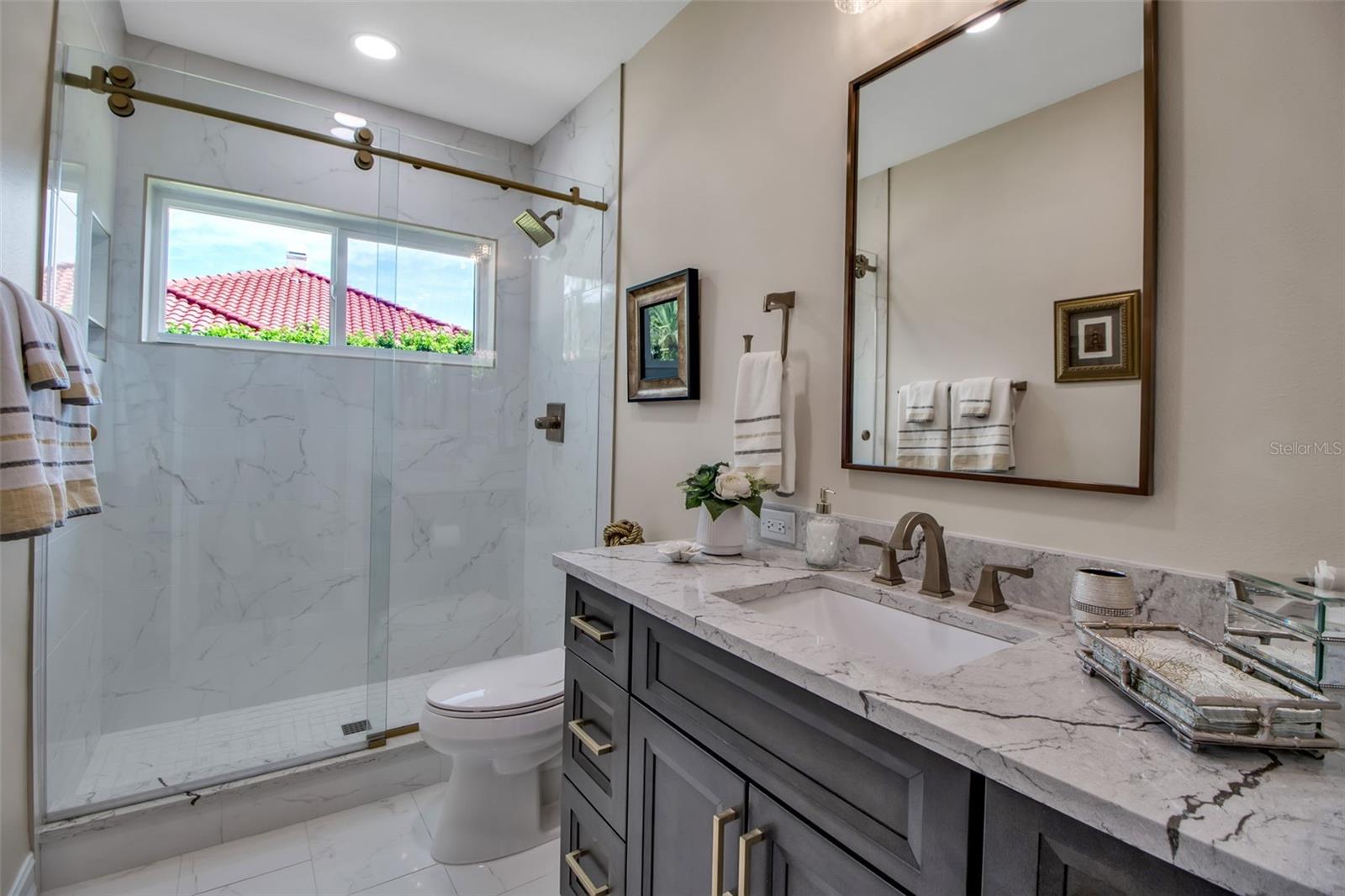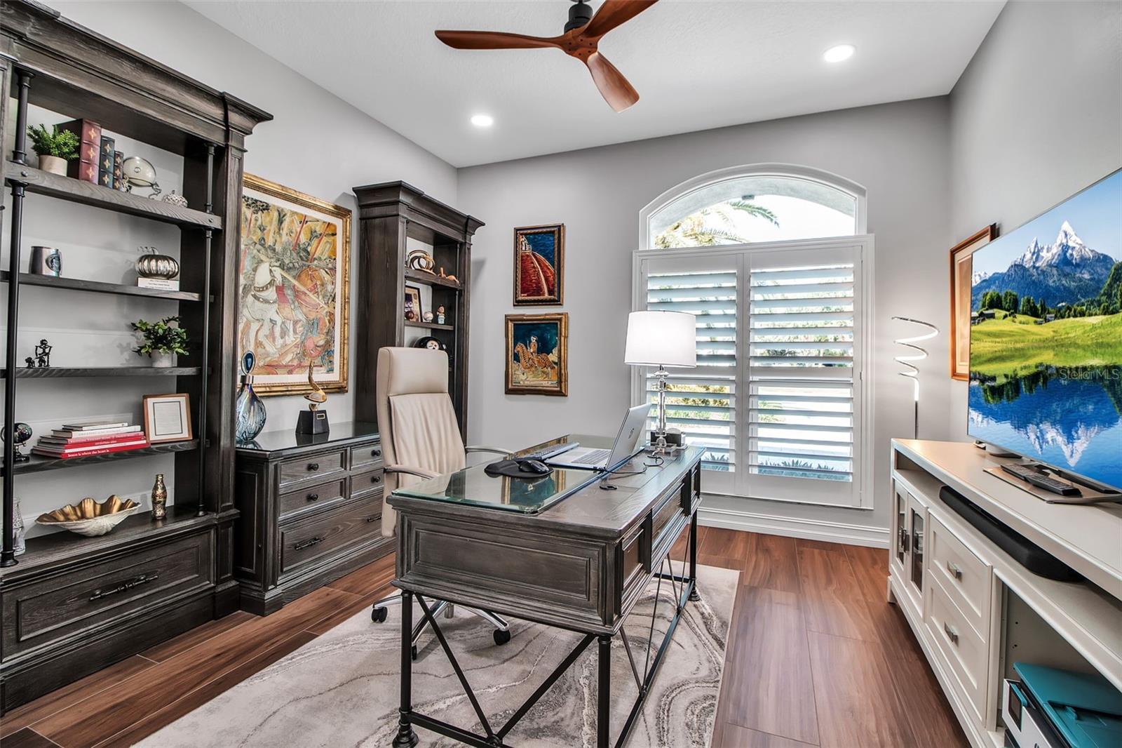 This completely remodeled home in The Oaks Clubside, set on nearly an acre of mature, meticulously landscaped grounds, is pure perfection. Nestled behind the gates of The Oaks Clubside, this residence is a masterful blend of classic elegance and contemporary sophistication. Arriving at the property, you are greeted by a striking full-circle driveway--a graceful approach that not only enhances the home's curb appeal but also provides abundant guest parking for social gatherings and celebrations with loved ones. Step through the double front doors, with leaded glass, and you will immediately be taken by the clean lines and modern elegance of this home. The floors throughout the main living area are wood-look tile, making for beauty as well as ease of maintenance. The numerous high ceilings, windows and doors make the entire interior open, light and airy. With three generously sized bedrooms, an office or den, and two and a half baths, the layout adapts effortlessly to a variety of needs. The open floor plan ensures that each room enjoys picturesque views of the private lot, blurring the boundaries between indoor comfort and the natural beauty outside. The open kitchen will delight any home chef with its high-end stainless steel appliances, wide expanse of quartz countertops, an abundance of cabinetry for storage and a breakfast bar. There is a cozy breakfast nook, with a gorgeous outdoor view, for causal meals, and a formal dining room. The master suite is a study in luxury. This bright, spacious retreat features an incredible bathroom with a sunken tub and huge separate shower. The entire outdoor space has been thoughtfully updated, with ample areas for lounging, dining, and entertaining. The inviting pool and spa beckon you to cool off on a sunny afternoon or unwind beneath the stars. The new sleek pool cage ensures you can enjoy the outdoors in comfort, with incredible views. This home boasts a host of recent upgrades designed to provide ultimate comfort and efficiency. Impact windows and doors offer storm protection and energy savings while letting in abundant light. A new roof adds to the peace of mind, ensuring years of worry-free living. Add to all this, a large laundry room, a big, clean garage, custom lighting, plantation shutters, a gorgeous fireplace and so much more, and you have discovered the perfect home for living ultimate country club lifestyle on the Gulf Coast. The Oaks, Sarasota's premier golf and country club, has two championship golf courses, an outstanding tennis program, pickle ball and croquet courts, a junior Olympic community pool, state-of-the-art fitness center and offers a wide variety of dining, recreational and social options. Membership is required with homeownership.