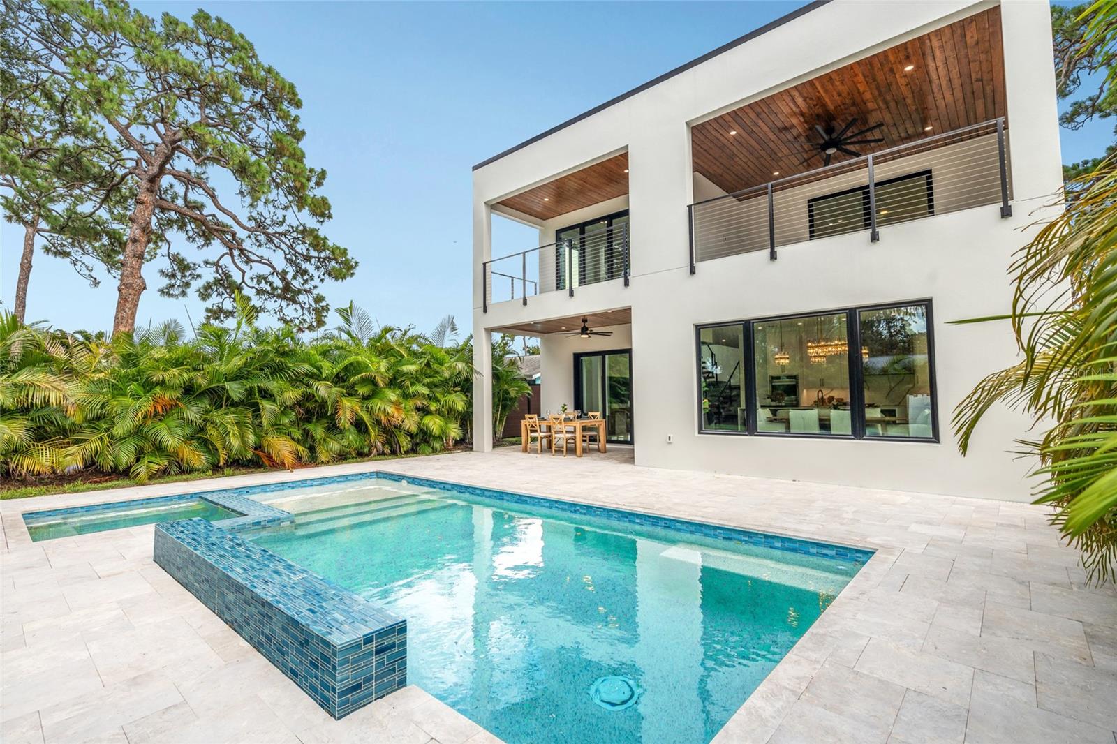 One or more photo(s) has been virtually staged. Move in Ready New Construction Contemporary Gem is now available with a fantastic location just minutes to Downtown Sarasota, Southside Village, the Barrier Islands and more!Step into refined contemporary living with this brand-new, custom-built MAKO Home. Designed for both style and comfort, this exceptional residence features four generously sized bedrooms, each with a private en-suite bath and walk-in closet with built-ins, along with two powder baths for added convenience (one on each floor). The 3 guest rooms are located upstairs with the primary suite located on the first floor and thoughtfully designed with an expansive walk-in closet that includes built-in cabinetry and shelving, a soaking tub, walk-in shower and his and hers vanity! The open-concept layout flows effortlessly into a sleek, light-filled kitchen at the rear of the home. The beautifully designed kitchen is outfitted with two-tone solid wood cabinetry, SS Appliances (Cafe/GE), soft close drawers and doors, Quartz Countertops and an oversized centerpiece island with waterfall edge! Step outside through the hurricane impact sliders and enjoy a private, resort-style setting with views of the inviting saltwater heated pool/spa and fenced in lush backyard.Upstairs, a flexible secondary living area/loft opens onto a spacious covered terrace--perfect for quiet mornings, evening gatherings, or simply soaking in the peaceful surroundings. Included in the upstairs living is a wet bar with storage and wine fridge. The home includes hurricane impact glass throughout with natural light pouring in, an epoxy finished 2-car garage and Dual laundry rooms, one on each level for added convenience.Located just East of Tamiami Trail, this home puts you in the center of it all--walkable to medical facilities, minutes from Downtown Sarasota, and just a short drive to Siesta Key's world-renowned beaches! A remarkable residence that is well-built for your use as a primary residence, vacation home or amazing investment opportunity as the City of Sarasota allows 7-Day rentals!Every detail of this home was crafted with purpose--offering an unmatched combination of luxury, location, and livability. Reach out today to schedule a tour to see for yourself!