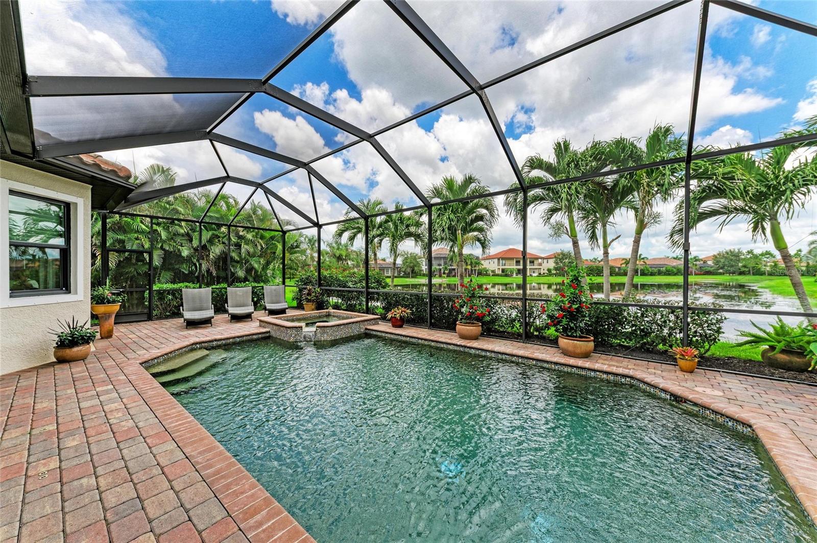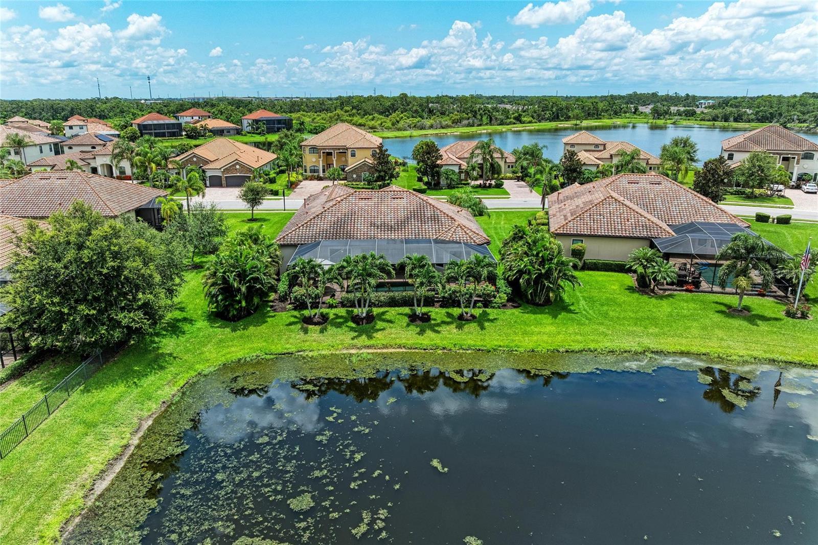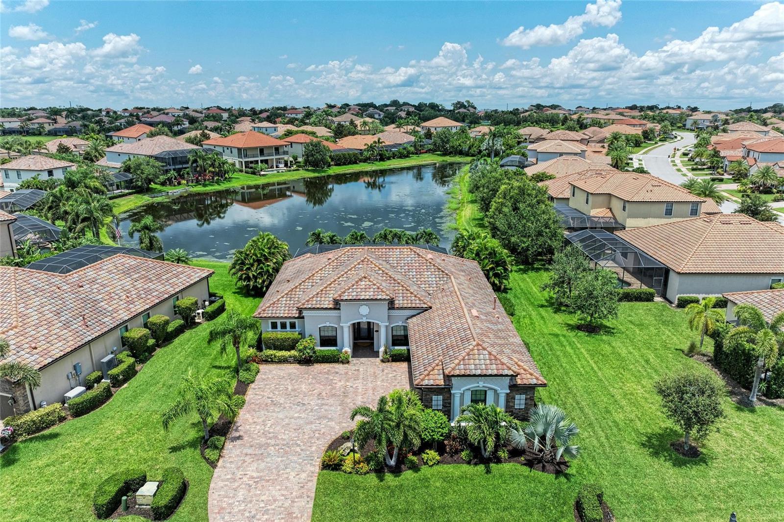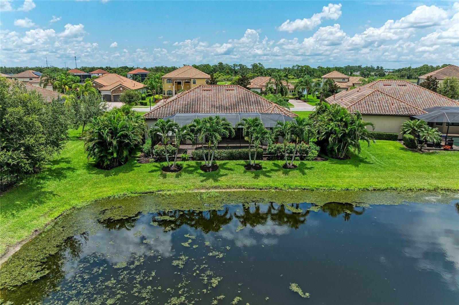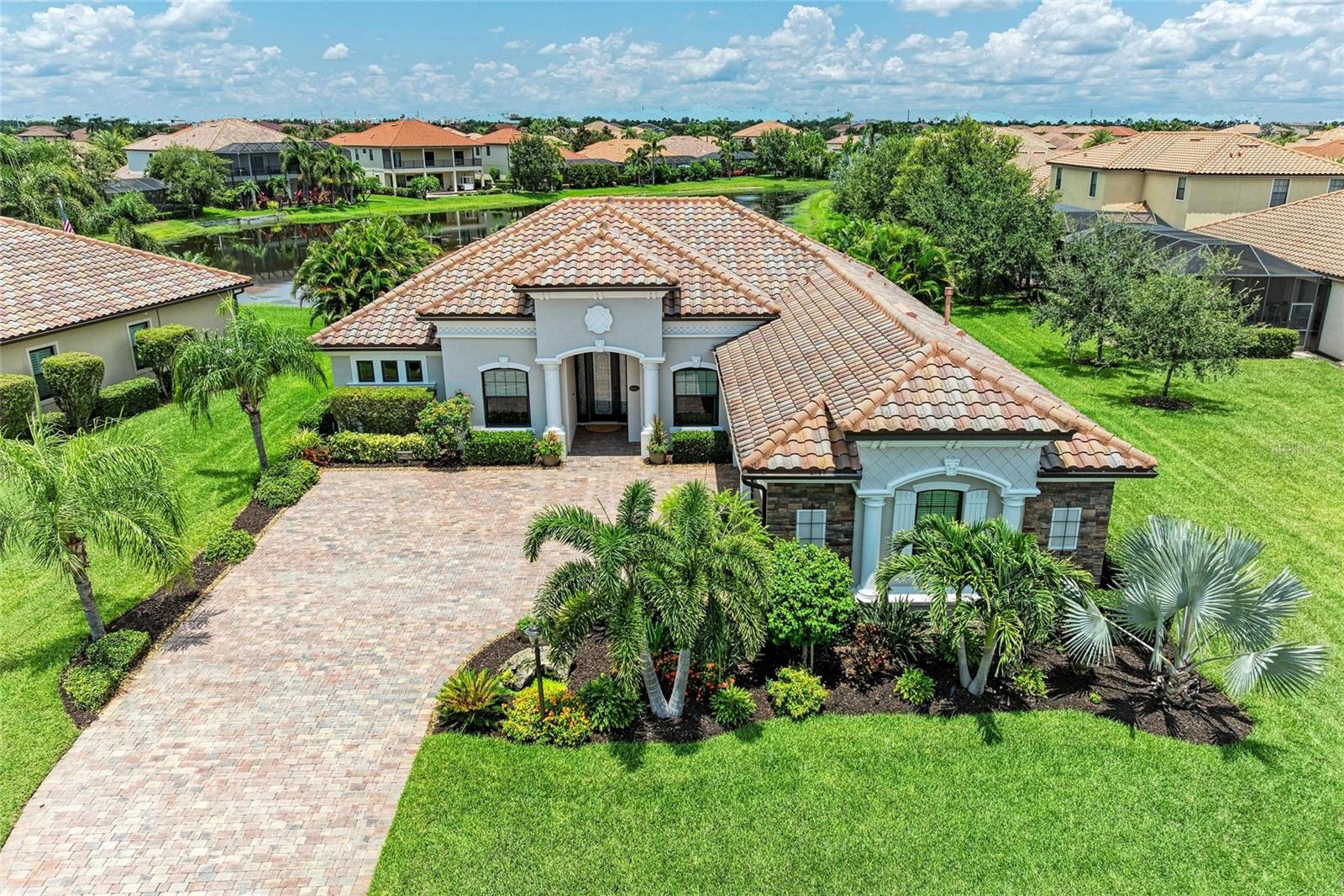 Welcome Home to your new beautifully customized lakefront pool home located in the prestigious, gated community of Bridgewater at Lakewood Ranch. This popular, Cambridge Estate Series model features 3 spacious bedrooms, 2.5 bathrooms, a 3-car garage, and a private study/office, offering the perfect combination of luxury, comfort, & design. With over $100,000 in designer upgrades, no detail has been overlooked in creating this refined & meticulously maintained residence. From the moment you arrive, you'll be captivated by the home's remarkable curb appeal, enhanced by lush landscaping & a freshly painted exterior (2023). Inside, the open-concept layout is both elegant & inviting, featuring volume ceilings, 8-foot doors, crown molding, & custom feature walls in the great room, dining room, study/office & owner's suite as well as wainscoting & bead board in the secondary bedrooms . The great room is a true showstopper, showcasing a coffered ceiling with wood trim, recessed lighting, a built-in entertainment console, glass shelving, accent lighting & equipped with a Motorized slider door shade--making it ideal for entertaining. The completely remodeled gourmet kitchen (2022) is a chef's dream, outfitted with solid wood, soft-close cabinetry, Taj Mahal Quartzite countertops, an undermount 30" KRAUS stainless steel sink, MOEN motion-sensor faucet, custom lighting w/transom uplighting/under-cabinet LED downlighting, pop-up electrical outlets w/ built-in charging station & new GE stainless steel appliances. The formal dining room & private office, enhanced by French doors, add versatility & sophistication to the layout. All bathrooms were completely renovated in 2022, featuring Taj Mahal Quartzite counters, modern faucets fixtures, fresh paint, & a glass shower enclosure in the second bathroom. Additional interior highlights include custom Hunter Douglas window treatments throughout, with a motorized shade for the sliding glass door in the great room, a HALO whole-house water purification system, custom-designed closets in the primary suite, ceramic wood-look tile in the den & owner's suite, & new LG front-load washer & dryer (2022). All smoke detectors were replaced in 2025. Outdoor living is equally impressive. The screened lanai offers updated lighting & ample space to enjoy the stunning lake views, sunrises, & tranquil Florida wildlife. The resort-style pool & spa create a peaceful oasis perfect for entertaining or unwinding at the end of the day. The home is equipped with HIGH-IMPACT HURRICANE RATED WINDOWS & a HIGH-IMPACT HURRICANE SCREENED ENCLOSURE. Bridgewater at Lakewood Ranch is a highly desirable, maintenance-free, gated community offering beautifully landscaped grounds, pavered driveways, a community park w/social events, & walking paths. With low HOA fees covering lawn care, reserves, & common area maintenance, residents enjoy peace of mind & convenience. Just minutes from top-rated schools including Lakewood Ranch Preparatory Academy, world-class golf courses, dining, shopping, University Town Center, & a short drive to the white-sand beaches, downtown Sarasota, & I-75 for quick access to Tampa, St. Petersburg, & beyond. This move-in ready, feature-rich home offers a rare opportunity to enjoy luxury living in the nation's #1 top master-planned community. Whether you're seeking refined design, modern upgrades, or the perfect Florida lifestyle, 5655 Cloverleaf Run delivers it all--and more.
