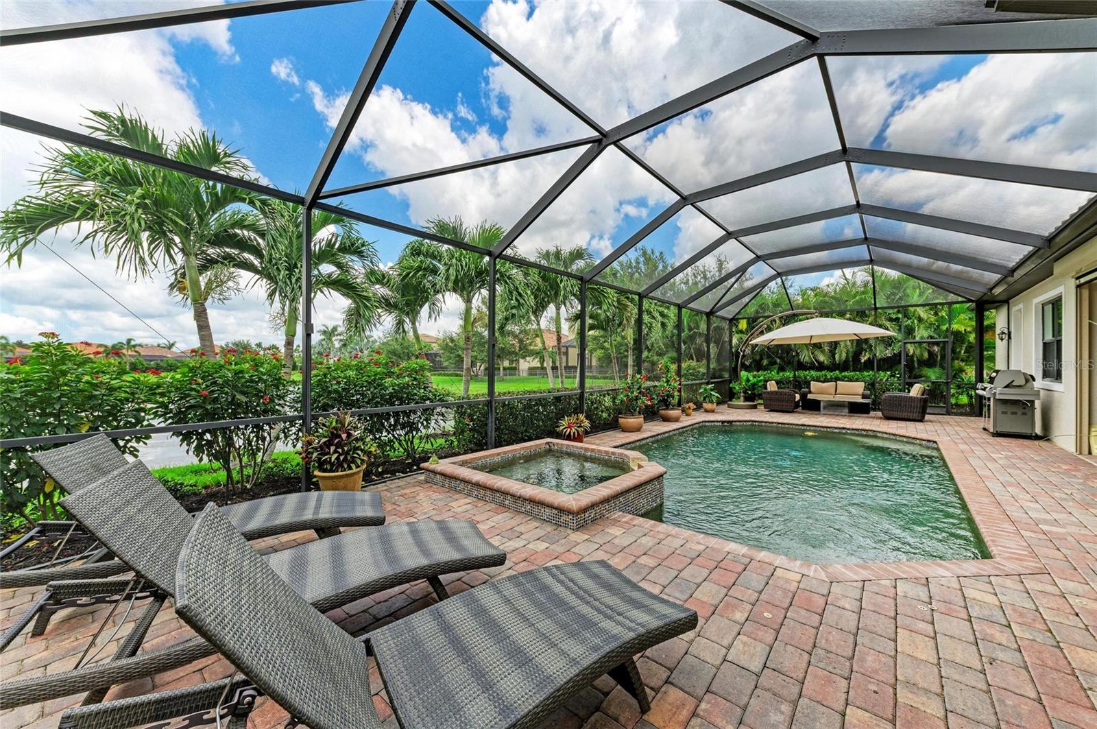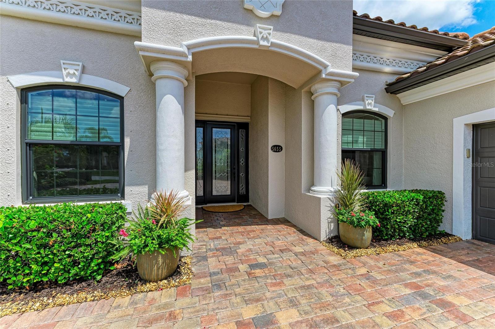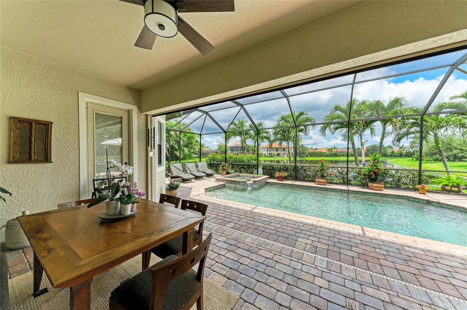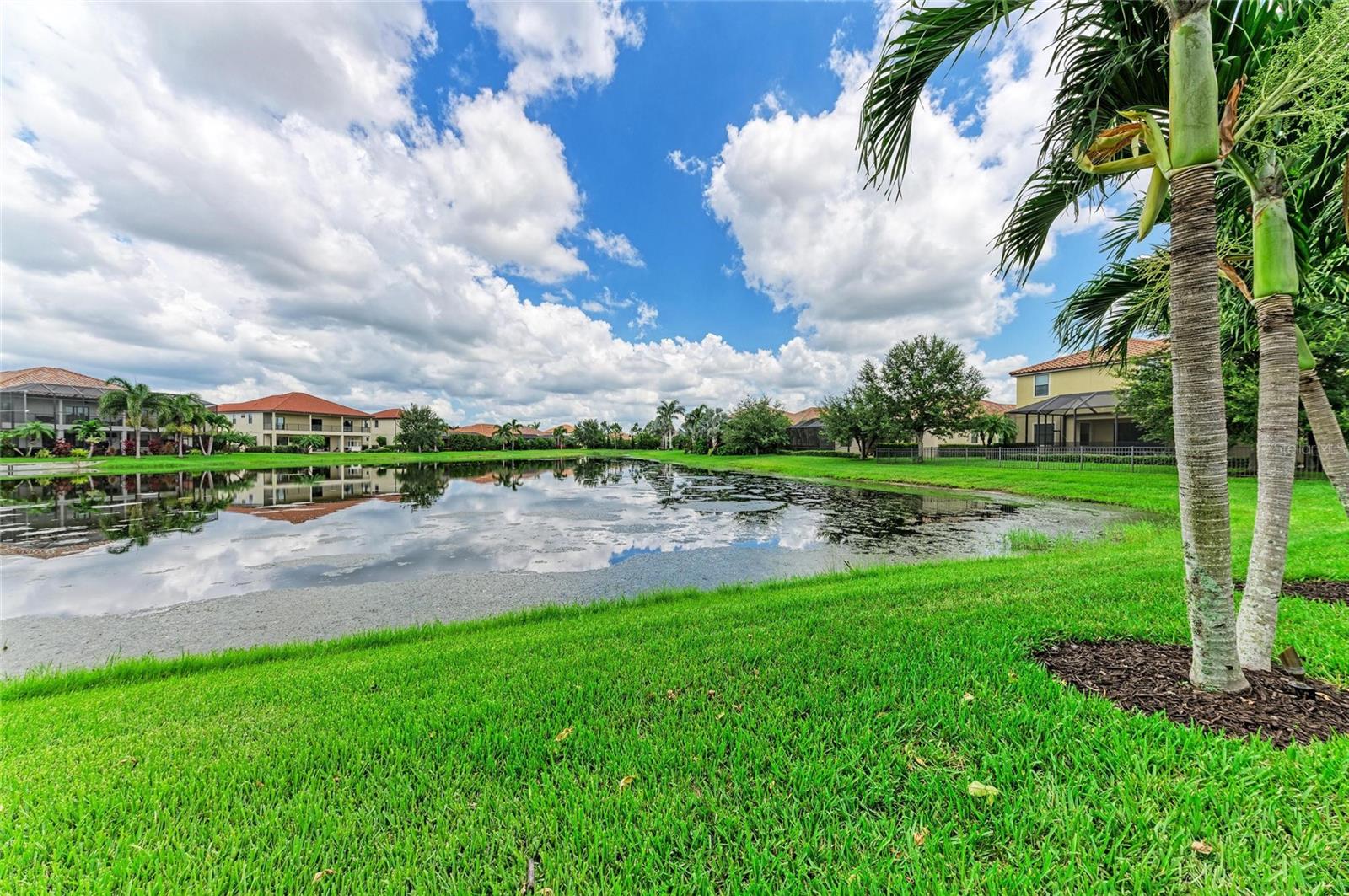 Welcome Home to your new beautifully customized lakefront pool home located in the prestigious, gated community of Bridgewater at Lakewood Ranch. This popular, Cambridge Estate Series model features 3 spacious bedrooms, 2.5 bathrooms, a 3-car garage, and a private study/office, offering the perfect combination of luxury, comfort, & design. With over $100,000 in designer upgrades, no detail has been overlooked in creating this refined & meticulously maintained residence. From the moment you arrive, you'll be captivated by the home's remarkable curb appeal, enhanced by lush landscaping & a freshly painted exterior (2023). Inside, the open-concept layout is both elegant & inviting, featuring volume ceilings, 8-foot doors, crown molding, & custom feature walls in the great room, dining room, study/office & owner's suite as well as wainscoting & bead board in the secondary bedrooms . The great room is a true showstopper, showcasing a coffered ceiling with wood trim, recessed lighting, a built-in entertainment console, glass shelving, accent lighting & equipped with a Motorized slider door shade--making it ideal for entertaining. The completely remodeled gourmet kitchen (2022) is a chef's dream, outfitted with solid wood, soft-close cabinetry, Taj Mahal Quartzite countertops, an undermount 30" KRAUS stainless steel sink, MOEN motion-sensor faucet, custom lighting w/transom uplighting/under-cabinet LED downlighting, pop-up electrical outlets w/ built-in charging station & new GE stainless steel appliances. The formal dining room & private office, enhanced by French doors, add versatility & sophistication to the layout. All bathrooms were completely renovated in 2022, featuring Taj Mahal Quartzite counters, modern faucets fixtures, fresh paint, & a glass shower enclosure in the second bathroom. Additional interior highlights include custom Hunter Douglas window treatments throughout, with a motorized shade for the sliding glass door in the great room, a HALO whole-house water purification system, custom-designed closets in the primary suite, ceramic wood-look tile in the den & owner's suite, & new LG front-load washer & dryer (2022). All smoke detectors were replaced in 2025. Outdoor living is equally impressive. The screened lanai offers updated lighting & ample space to enjoy the stunning lake views, sunrises, & tranquil Florida wildlife. The resort-style pool & spa create a peaceful oasis perfect for entertaining or unwinding at the end of the day. The home is equipped with HIGH-IMPACT HURRICANE RATED WINDOWS & a HIGH-IMPACT HURRICANE SCREENED ENCLOSURE. Bridgewater at Lakewood Ranch is a highly desirable, maintenance-free, gated community offering beautifully landscaped grounds, pavered driveways, a community park w/social events, & walking paths. With low HOA fees covering lawn care, reserves, & common area maintenance, residents enjoy peace of mind & convenience. Just minutes from top-rated schools including Lakewood Ranch Preparatory Academy, world-class golf courses, dining, shopping, University Town Center, & a short drive to the white-sand beaches, downtown Sarasota, & I-75 for quick access to Tampa, St. Petersburg, & beyond. This move-in ready, feature-rich home offers a rare opportunity to enjoy luxury living in the nation's #1 top master-planned community. Whether you're seeking refined design, modern upgrades, or the perfect Florida lifestyle, 5655 Cloverleaf Run delivers it all--and more.
