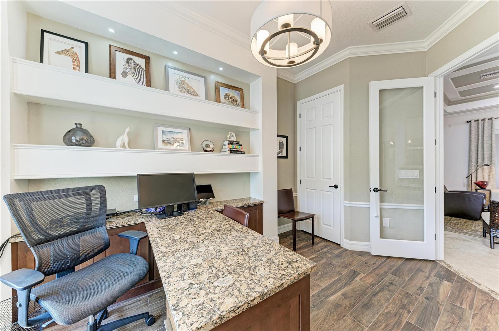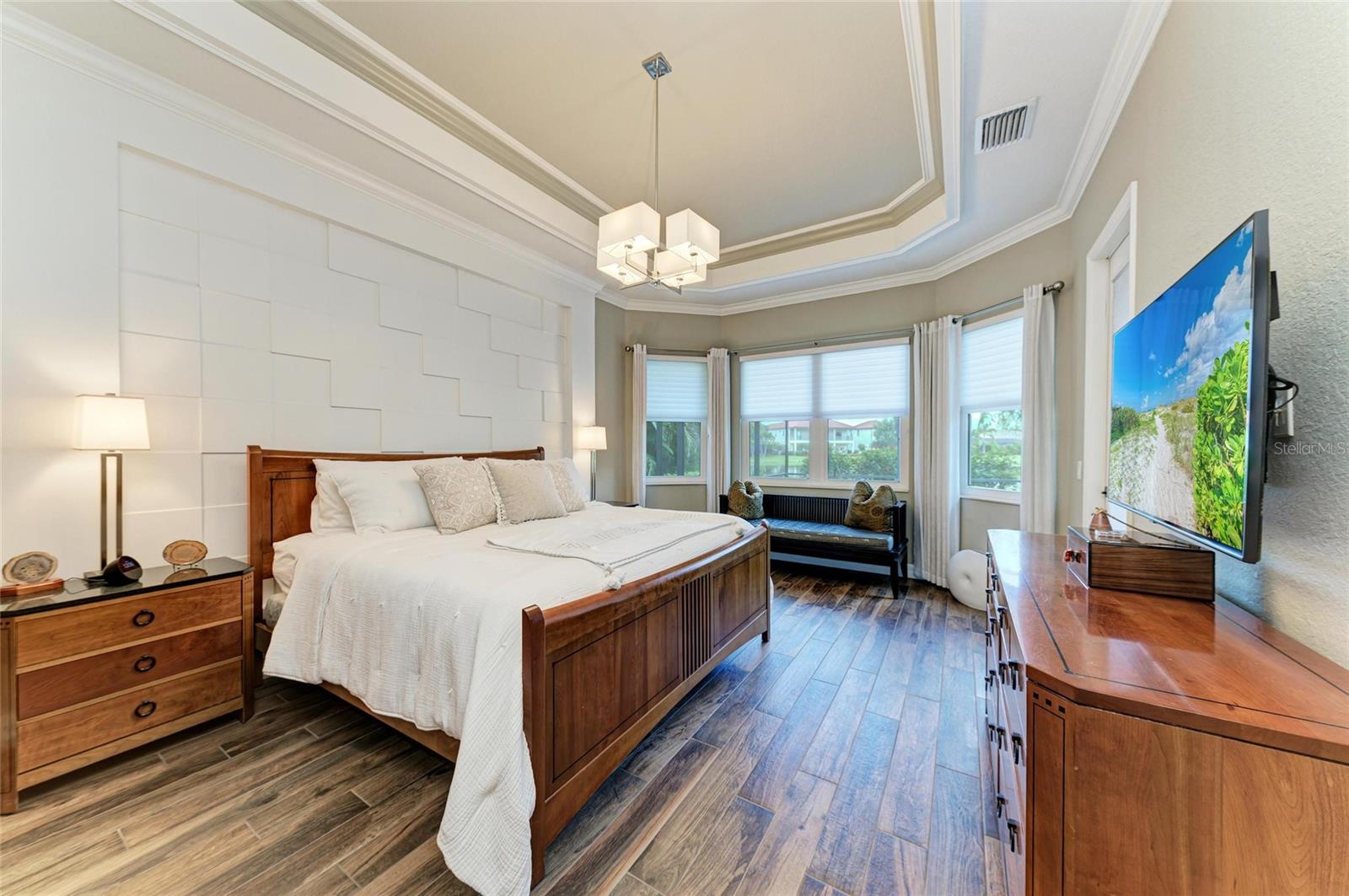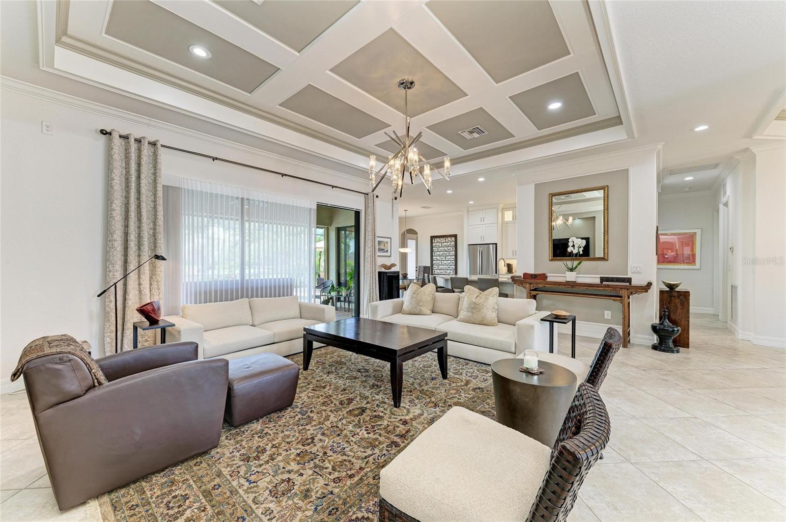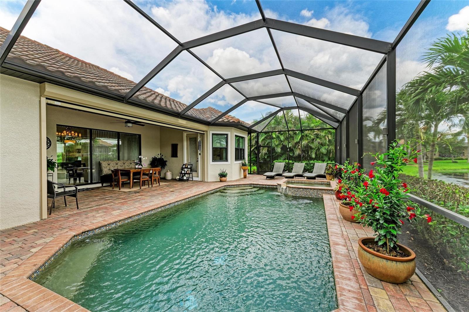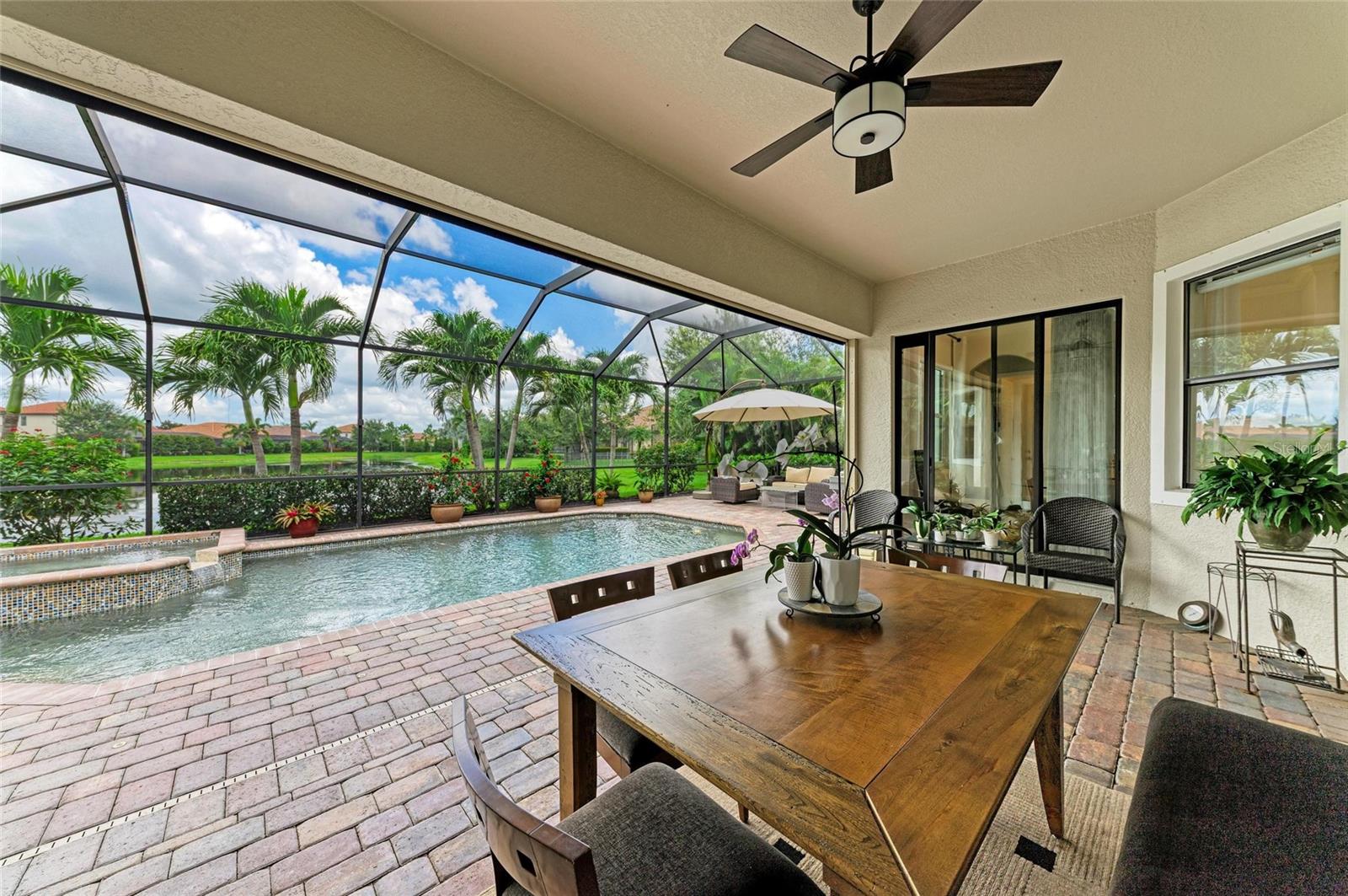 Welcome Home to your new beautifully customized lakefront pool home located in the prestigious, gated community of Bridgewater at Lakewood Ranch. This popular, Cambridge Estate Series model features 3 spacious bedrooms, 2.5 bathrooms, a 3-car garage, and a private study/office, offering the perfect combination of luxury, comfort, & design. With over $100,000 in designer upgrades, no detail has been overlooked in creating this refined & meticulously maintained residence. From the moment you arrive, you'll be captivated by the home's remarkable curb appeal, enhanced by lush landscaping & a freshly painted exterior (2023). Inside, the open-concept layout is both elegant & inviting, featuring volume ceilings, 8-foot doors, crown molding, & custom feature walls in the great room, dining room, study/office & owner's suite as well as wainscoting & bead board in the secondary bedrooms . The great room is a true showstopper, showcasing a coffered ceiling with wood trim, recessed lighting, a built-in entertainment console, glass shelving, accent lighting & equipped with a Motorized slider door shade--making it ideal for entertaining. The completely remodeled gourmet kitchen (2022) is a chef's dream, outfitted with solid wood, soft-close cabinetry, Taj Mahal Quartzite countertops, an undermount 30" KRAUS stainless steel sink, MOEN motion-sensor faucet, custom lighting w/transom uplighting/under-cabinet LED downlighting, pop-up electrical outlets w/ built-in charging station & new GE stainless steel appliances. The formal dining room & private office, enhanced by French doors, add versatility & sophistication to the layout. All bathrooms were completely renovated in 2022, featuring Taj Mahal Quartzite counters, modern faucets fixtures, fresh paint, & a glass shower enclosure in the second bathroom. Additional interior highlights include custom Hunter Douglas window treatments throughout, with a motorized shade for the sliding glass door in the great room, a HALO whole-house water purification system, custom-designed closets in the primary suite, ceramic wood-look tile in the den & owner's suite, & new LG front-load washer & dryer (2022). All smoke detectors were replaced in 2025. Outdoor living is equally impressive. The screened lanai offers updated lighting & ample space to enjoy the stunning lake views, sunrises, & tranquil Florida wildlife. The resort-style pool & spa create a peaceful oasis perfect for entertaining or unwinding at the end of the day. The home is equipped with HIGH-IMPACT HURRICANE RATED WINDOWS & a HIGH-IMPACT HURRICANE SCREENED ENCLOSURE. Bridgewater at Lakewood Ranch is a highly desirable, maintenance-free, gated community offering beautifully landscaped grounds, pavered driveways, a community park w/social events, & walking paths. With low HOA fees covering lawn care, reserves, & common area maintenance, residents enjoy peace of mind & convenience. Just minutes from top-rated schools including Lakewood Ranch Preparatory Academy, world-class golf courses, dining, shopping, University Town Center, & a short drive to the white-sand beaches, downtown Sarasota, & I-75 for quick access to Tampa, St. Petersburg, & beyond. This move-in ready, feature-rich home offers a rare opportunity to enjoy luxury living in the nation's #1 top master-planned community. Whether you're seeking refined design, modern upgrades, or the perfect Florida lifestyle, 5655 Cloverleaf Run delivers it all--and more.