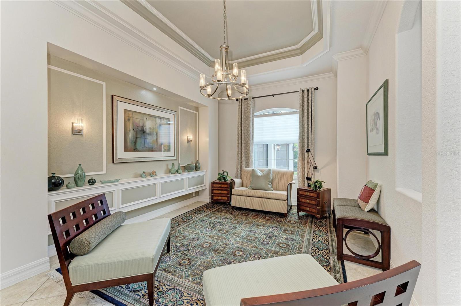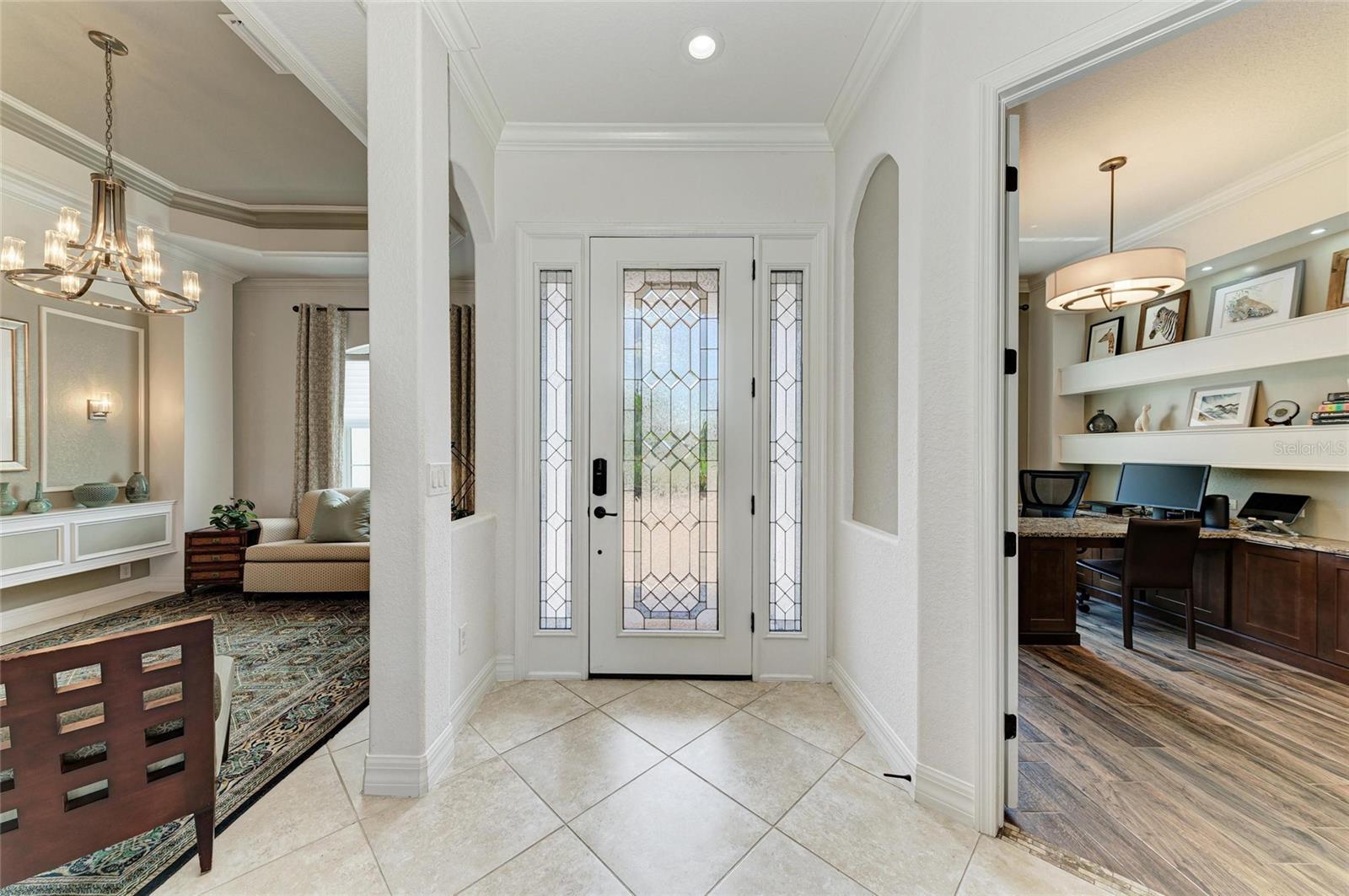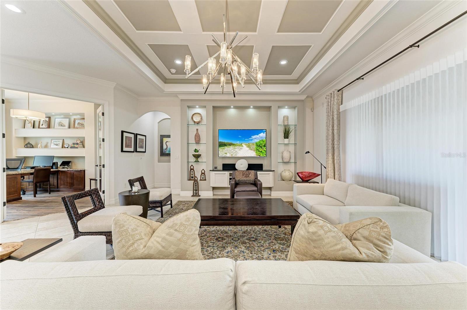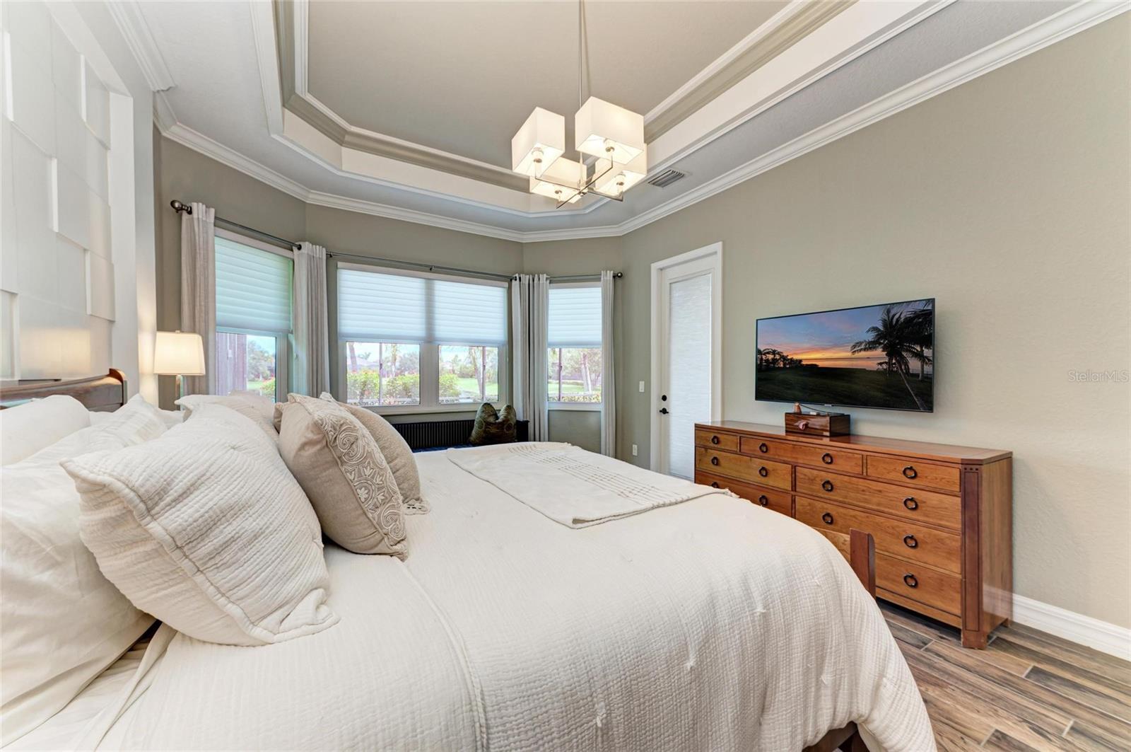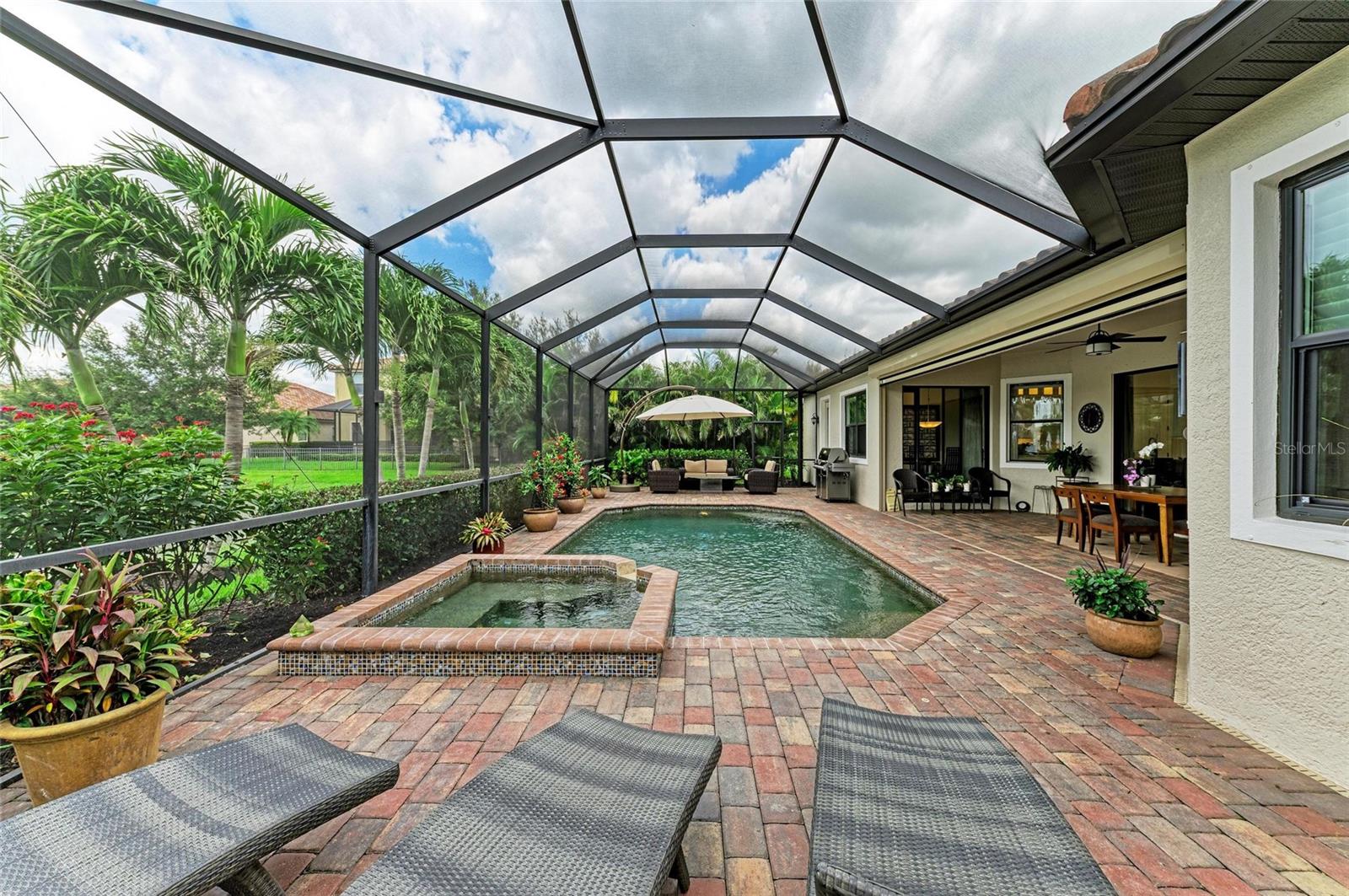 Welcome Home to your new beautifully customized lakefront pool home located in the prestigious, gated community of Bridgewater at Lakewood Ranch. This popular, Cambridge Estate Series model features 3 spacious bedrooms, 2.5 bathrooms, a 3-car garage, and a private study/office, offering the perfect combination of luxury, comfort, & design. With over $100,000 in designer upgrades, no detail has been overlooked in creating this refined & meticulously maintained residence. From the moment you arrive, you'll be captivated by the home's remarkable curb appeal, enhanced by lush landscaping & a freshly painted exterior (2023). Inside, the open-concept layout is both elegant & inviting, featuring volume ceilings, 8-foot doors, crown molding, & custom feature walls in the great room, dining room, study/office & owner's suite as well as wainscoting & bead board in the secondary bedrooms . The great room is a true showstopper, showcasing a coffered ceiling with wood trim, recessed lighting, a built-in entertainment console, glass shelving, accent lighting & equipped with a Motorized slider door shade--making it ideal for entertaining. The completely remodeled gourmet kitchen (2022) is a chef's dream, outfitted with solid wood, soft-close cabinetry, Taj Mahal Quartzite countertops, an undermount 30" KRAUS stainless steel sink, MOEN motion-sensor faucet, custom lighting w/transom uplighting/under-cabinet LED downlighting, pop-up electrical outlets w/ built-in charging station & new GE stainless steel appliances. The formal dining room & private office, enhanced by French doors, add versatility & sophistication to the layout. All bathrooms were completely renovated in 2022, featuring Taj Mahal Quartzite counters, modern faucets fixtures, fresh paint, & a glass shower enclosure in the second bathroom. Additional interior highlights include custom Hunter Douglas window treatments throughout, with a motorized shade for the sliding glass door in the great room, a HALO whole-house water purification system, custom-designed closets in the primary suite, ceramic wood-look tile in the den & owner's suite, & new LG front-load washer & dryer (2022). All smoke detectors were replaced in 2025. Outdoor living is equally impressive. The screened lanai offers updated lighting & ample space to enjoy the stunning lake views, sunrises, & tranquil Florida wildlife. The resort-style pool & spa create a peaceful oasis perfect for entertaining or unwinding at the end of the day. The home is equipped with HIGH-IMPACT HURRICANE RATED WINDOWS & a HIGH-IMPACT HURRICANE SCREENED ENCLOSURE. Bridgewater at Lakewood Ranch is a highly desirable, maintenance-free, gated community offering beautifully landscaped grounds, pavered driveways, a community park w/social events, & walking paths. With low HOA fees covering lawn care, reserves, & common area maintenance, residents enjoy peace of mind & convenience. Just minutes from top-rated schools including Lakewood Ranch Preparatory Academy, world-class golf courses, dining, shopping, University Town Center, & a short drive to the white-sand beaches, downtown Sarasota, & I-75 for quick access to Tampa, St. Petersburg, & beyond. This move-in ready, feature-rich home offers a rare opportunity to enjoy luxury living in the nation's #1 top master-planned community. Whether you're seeking refined design, modern upgrades, or the perfect Florida lifestyle, 5655 Cloverleaf Run delivers it all--and more.