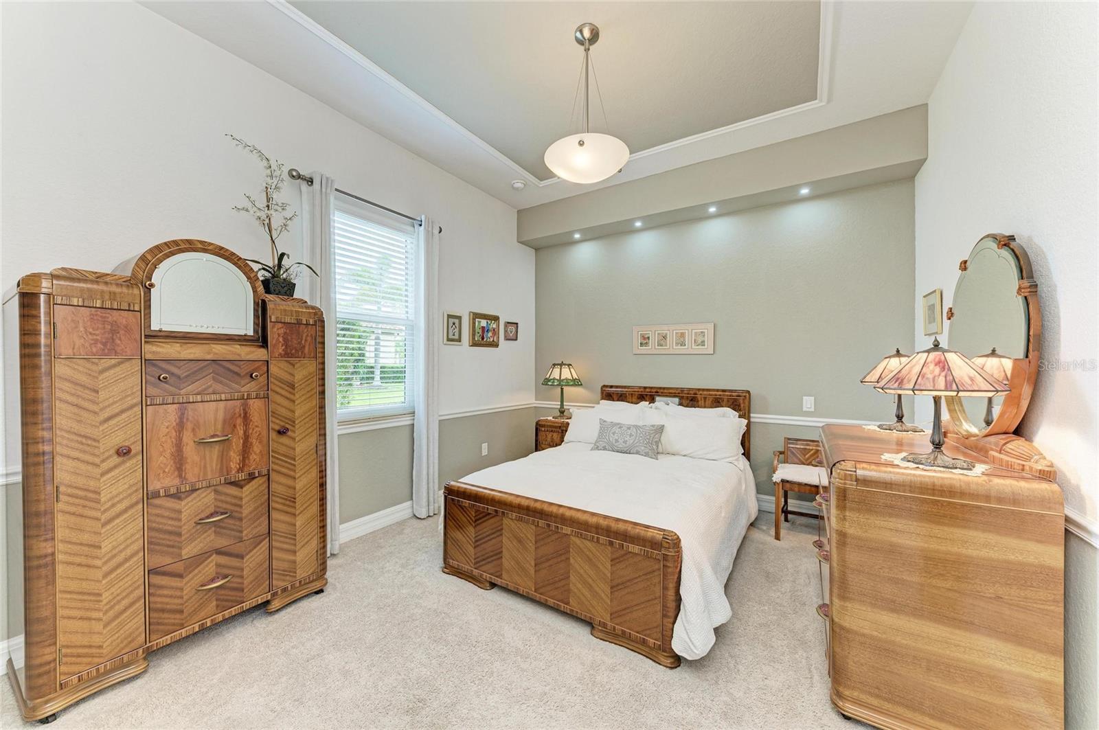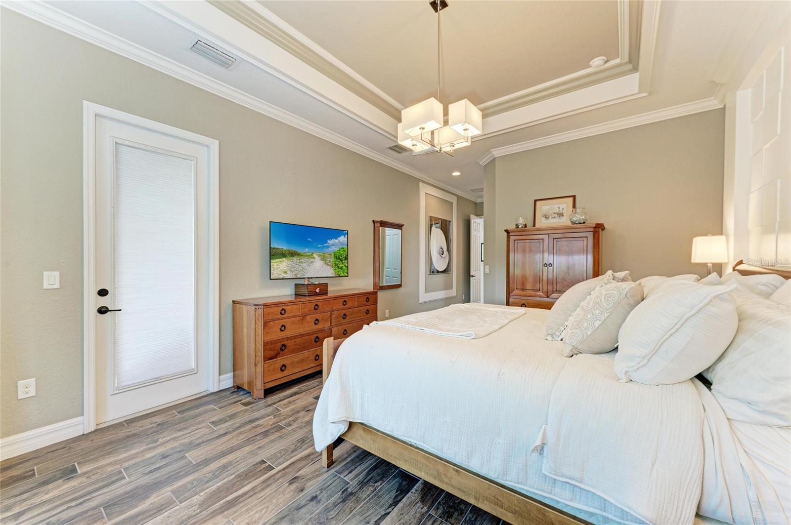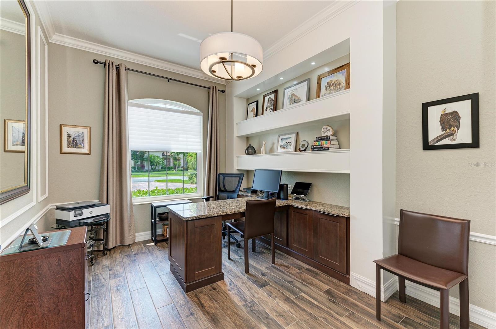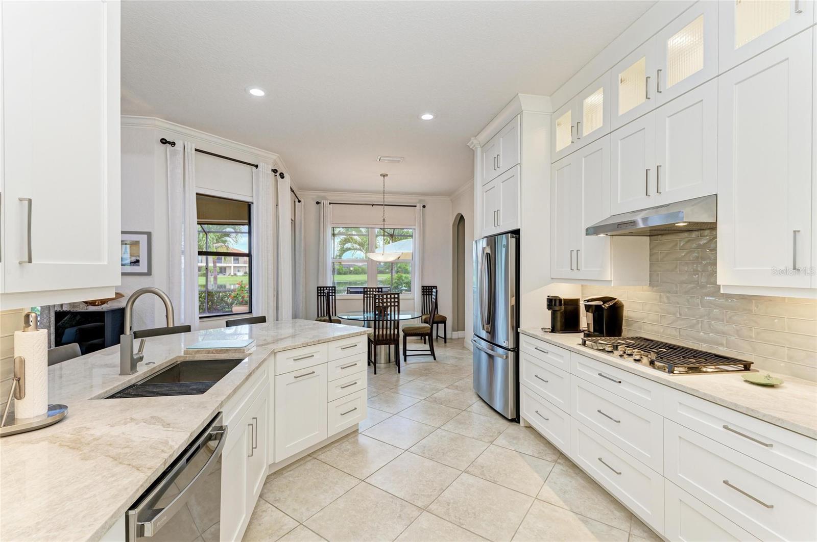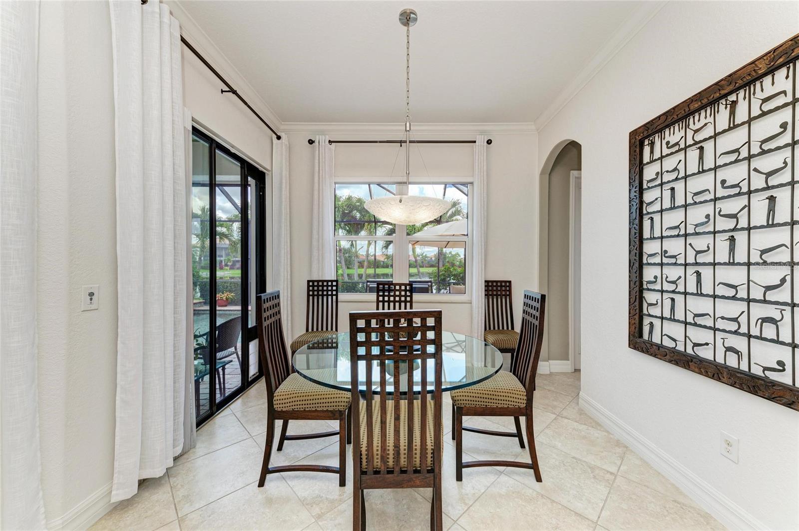 Welcome Home to your new beautifully customized lakefront pool home located in the prestigious, gated community of Bridgewater at Lakewood Ranch. This popular, Cambridge Estate Series model features 3 spacious bedrooms, 2.5 bathrooms, a 3-car garage, and a private study/office, offering the perfect combination of luxury, comfort, & design. With over $100,000 in designer upgrades, no detail has been overlooked in creating this refined & meticulously maintained residence. From the moment you arrive, you'll be captivated by the home's remarkable curb appeal, enhanced by lush landscaping & a freshly painted exterior (2023). Inside, the open-concept layout is both elegant & inviting, featuring volume ceilings, 8-foot doors, crown molding, & custom feature walls in the great room, dining room, study/office & owner's suite as well as wainscoting & bead board in the secondary bedrooms . The great room is a true showstopper, showcasing a coffered ceiling with wood trim, recessed lighting, a built-in entertainment console, glass shelving, accent lighting & equipped with a Motorized slider door shade--making it ideal for entertaining. The completely remodeled gourmet kitchen (2022) is a chef's dream, outfitted with solid wood, soft-close cabinetry, Taj Mahal Quartzite countertops, an undermount 30" KRAUS stainless steel sink, MOEN motion-sensor faucet, custom lighting w/transom uplighting/under-cabinet LED downlighting, pop-up electrical outlets w/ built-in charging station & new GE stainless steel appliances. The formal dining room & private office, enhanced by French doors, add versatility & sophistication to the layout. All bathrooms were completely renovated in 2022, featuring Taj Mahal Quartzite counters, modern faucets fixtures, fresh paint, & a glass shower enclosure in the second bathroom. Additional interior highlights include custom Hunter Douglas window treatments throughout, with a motorized shade for the sliding glass door in the great room, a HALO whole-house water purification system, custom-designed closets in the primary suite, ceramic wood-look tile in the den & owner's suite, & new LG front-load washer & dryer (2022). All smoke detectors were replaced in 2025. Outdoor living is equally impressive. The screened lanai offers updated lighting & ample space to enjoy the stunning lake views, sunrises, & tranquil Florida wildlife. The resort-style pool & spa create a peaceful oasis perfect for entertaining or unwinding at the end of the day. The home is equipped with HIGH-IMPACT HURRICANE RATED WINDOWS & a HIGH-IMPACT HURRICANE SCREENED ENCLOSURE. Bridgewater at Lakewood Ranch is a highly desirable, maintenance-free, gated community offering beautifully landscaped grounds, pavered driveways, a community park w/social events, & walking paths. With low HOA fees covering lawn care, reserves, & common area maintenance, residents enjoy peace of mind & convenience. Just minutes from top-rated schools including Lakewood Ranch Preparatory Academy, world-class golf courses, dining, shopping, University Town Center, & a short drive to the white-sand beaches, downtown Sarasota, & I-75 for quick access to Tampa, St. Petersburg, & beyond. This move-in ready, feature-rich home offers a rare opportunity to enjoy luxury living in the nation's #1 top master-planned community. Whether you're seeking refined design, modern upgrades, or the perfect Florida lifestyle, 5655 Cloverleaf Run delivers it all--and more.