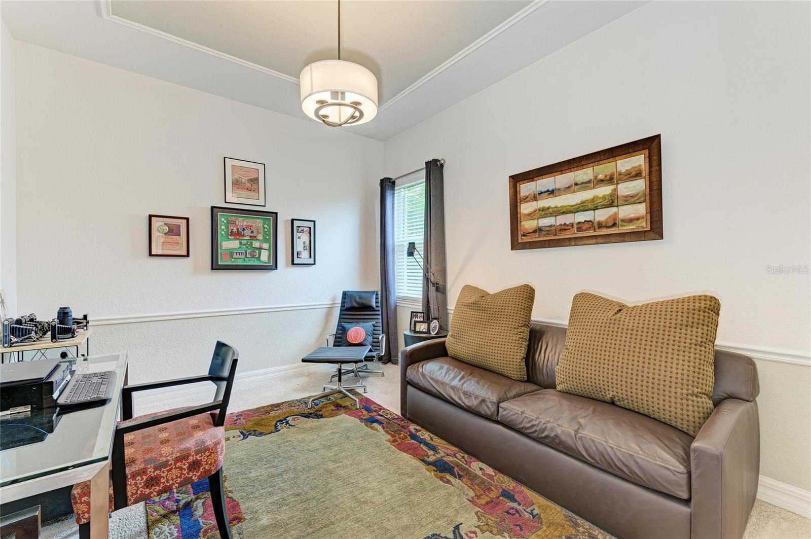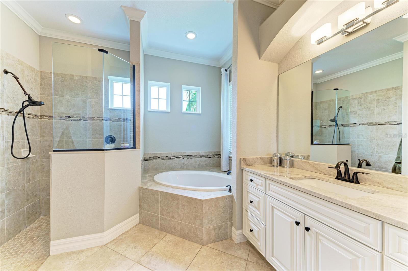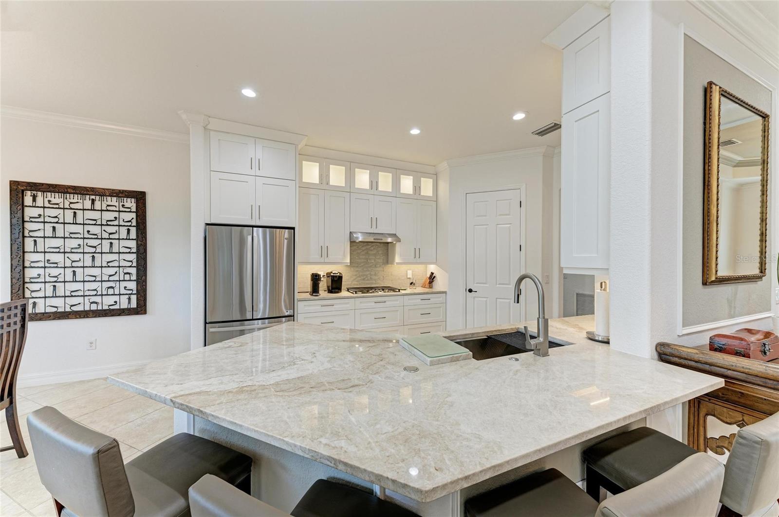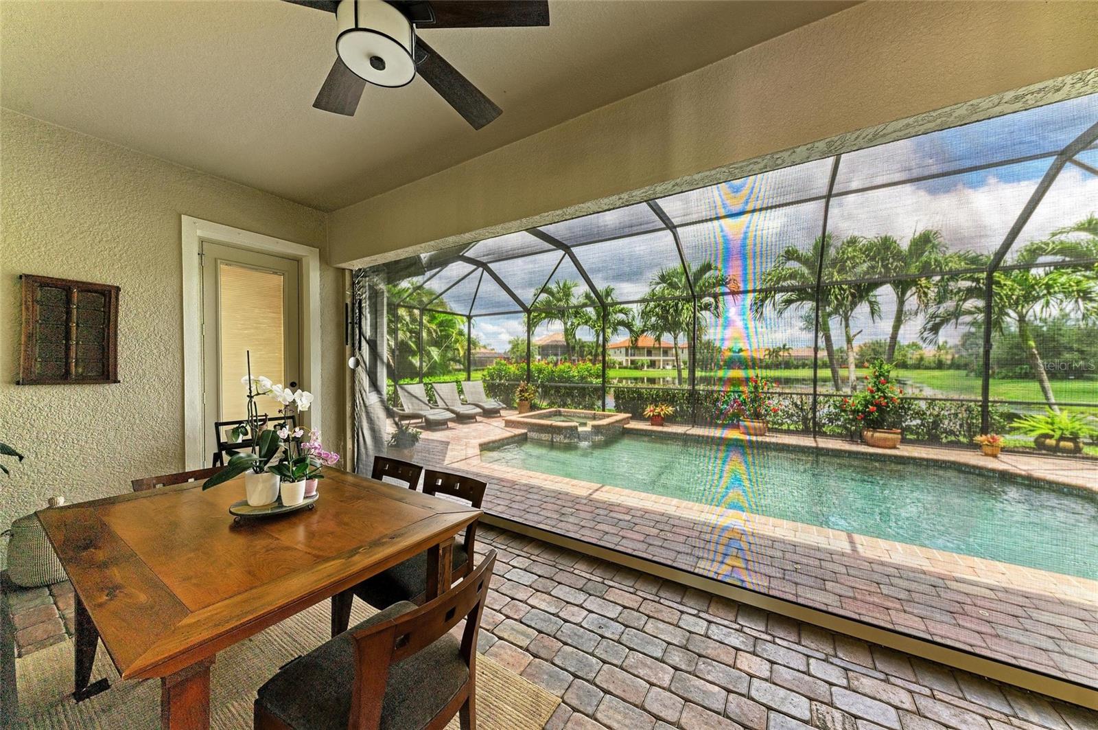 Welcome Home to your new beautifully customized lakefront pool home located in the prestigious, gated community of Bridgewater at Lakewood Ranch. This popular, Cambridge Estate Series model features 3 spacious bedrooms, 2.5 bathrooms, a 3-car garage, and a private study/office, offering the perfect combination of luxury, comfort, & design. With over $100,000 in designer upgrades, no detail has been overlooked in creating this refined & meticulously maintained residence. From the moment you arrive, you'll be captivated by the home's remarkable curb appeal, enhanced by lush landscaping & a freshly painted exterior (2023). Inside, the open-concept layout is both elegant & inviting, featuring volume ceilings, 8-foot doors, crown molding, & custom feature walls in the great room, dining room, study/office & owner's suite as well as wainscoting & bead board in the secondary bedrooms . The great room is a true showstopper, showcasing a coffered ceiling with wood trim, recessed lighting, a built-in entertainment console, glass shelving, accent lighting & equipped with a Motorized slider door shade--making it ideal for entertaining. The completely remodeled gourmet kitchen (2022) is a chef's dream, outfitted with solid wood, soft-close cabinetry, Taj Mahal Quartzite countertops, an undermount 30" KRAUS stainless steel sink, MOEN motion-sensor faucet, custom lighting w/transom uplighting/under-cabinet LED downlighting, pop-up electrical outlets w/ built-in charging station & new GE stainless steel appliances. The formal dining room & private office, enhanced by French doors, add versatility & sophistication to the layout. All bathrooms were completely renovated in 2022, featuring Taj Mahal Quartzite counters, modern faucets fixtures, fresh paint, & a glass shower enclosure in the second bathroom. Additional interior highlights include custom Hunter Douglas window treatments throughout, with a motorized shade for the sliding glass door in the great room, a HALO whole-house water purification system, custom-designed closets in the primary suite, ceramic wood-look tile in the den & owner's suite, & new LG front-load washer & dryer (2022). All smoke detectors were replaced in 2025. Outdoor living is equally impressive. The screened lanai offers updated lighting & ample space to enjoy the stunning lake views, sunrises, & tranquil Florida wildlife. The resort-style pool & spa create a peaceful oasis perfect for entertaining or unwinding at the end of the day. The home is equipped with HIGH-IMPACT HURRICANE RATED WINDOWS & a HIGH-IMPACT HURRICANE SCREENED ENCLOSURE. Bridgewater at Lakewood Ranch is a highly desirable, maintenance-free, gated community offering beautifully landscaped grounds, pavered driveways, a community park w/social events, & walking paths. With low HOA fees covering lawn care, reserves, & common area maintenance, residents enjoy peace of mind & convenience. Just minutes from top-rated schools including Lakewood Ranch Preparatory Academy, world-class golf courses, dining, shopping, University Town Center, & a short drive to the white-sand beaches, downtown Sarasota, & I-75 for quick access to Tampa, St. Petersburg, & beyond. This move-in ready, feature-rich home offers a rare opportunity to enjoy luxury living in the nation's #1 top master-planned community. Whether you're seeking refined design, modern upgrades, or the perfect Florida lifestyle, 5655 Cloverleaf Run delivers it all--and more.