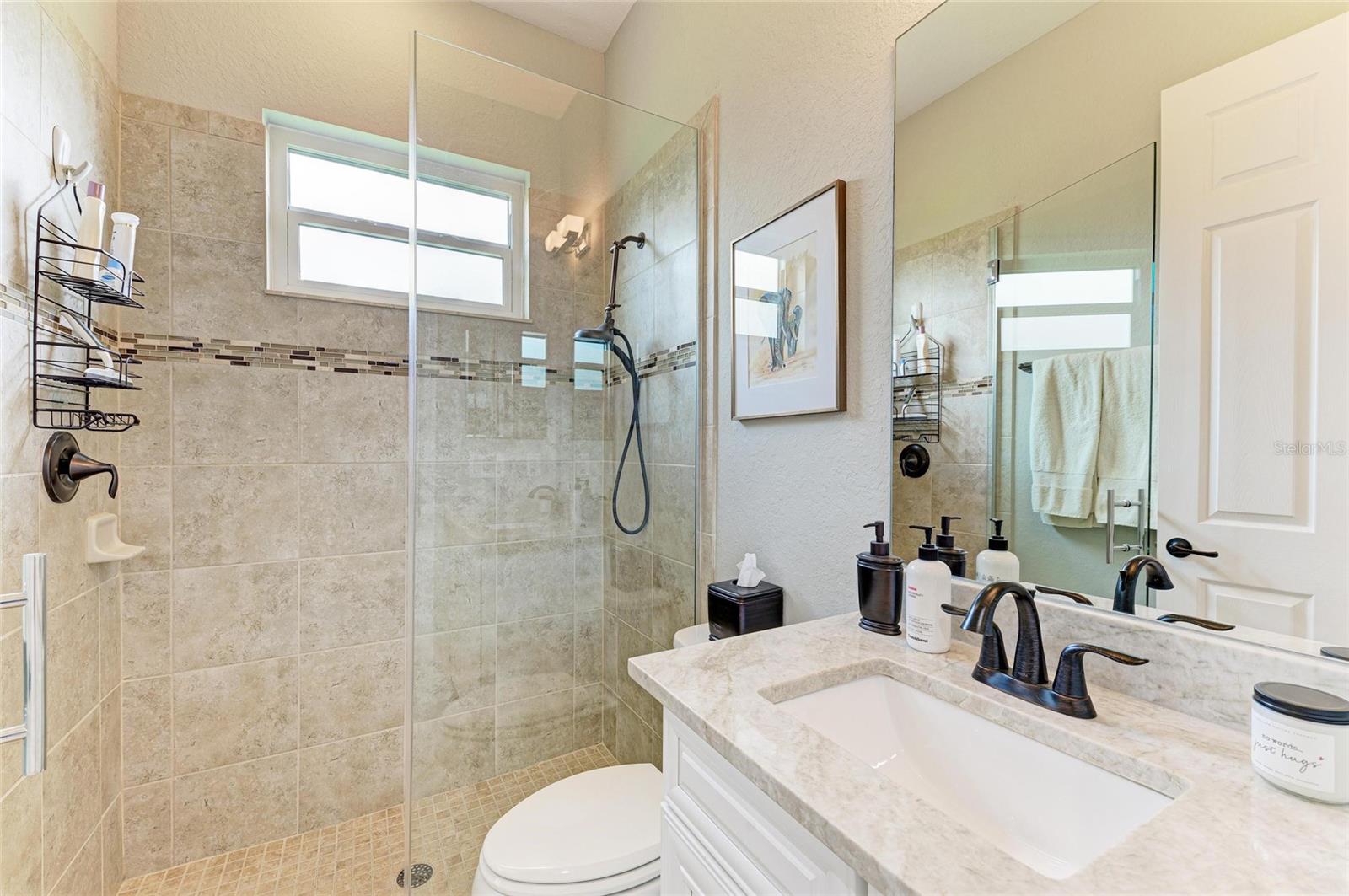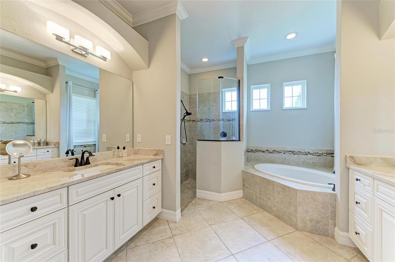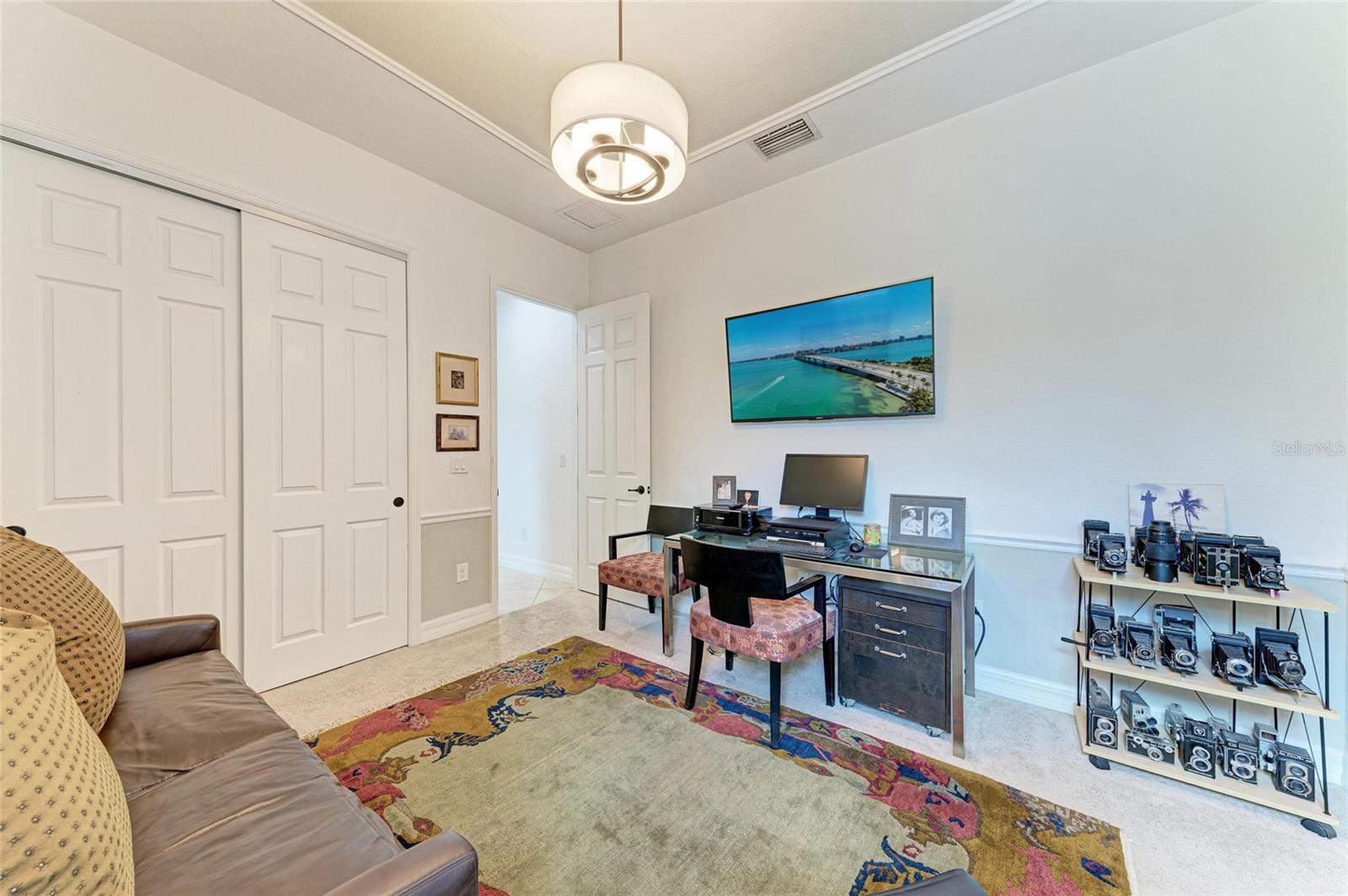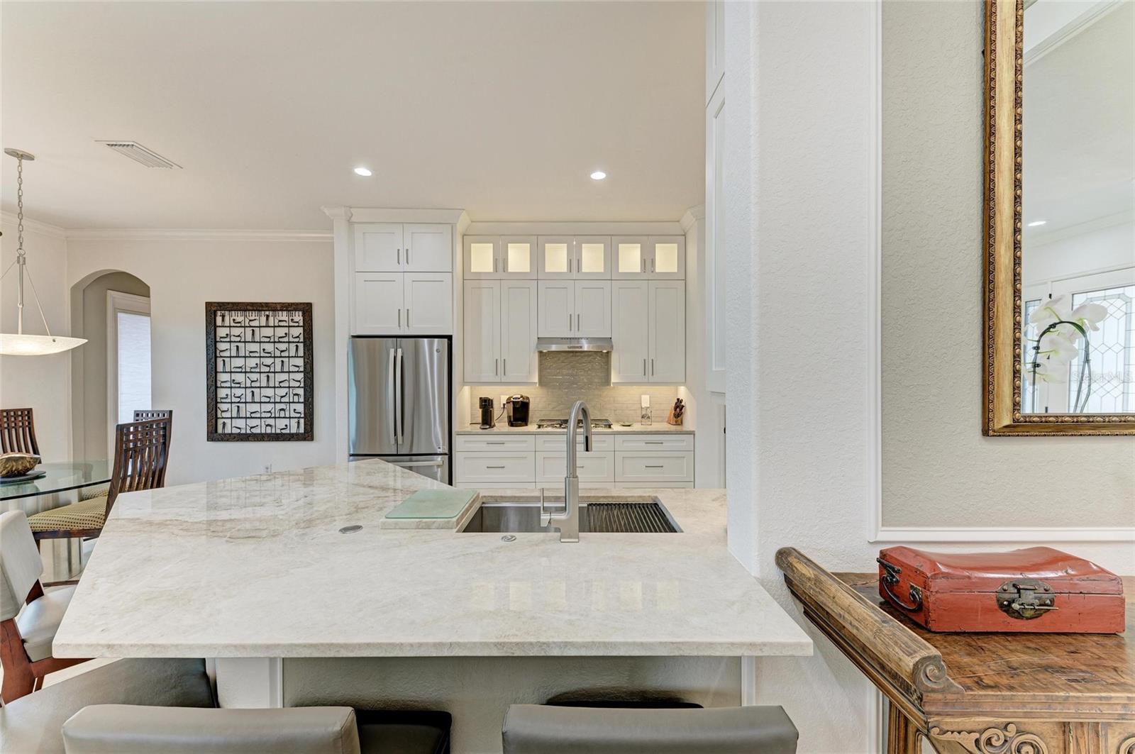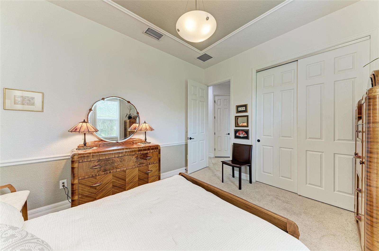 Welcome Home to your new beautifully customized lakefront pool home located in the prestigious, gated community of Bridgewater at Lakewood Ranch. This popular, Cambridge Estate Series model features 3 spacious bedrooms, 2.5 bathrooms, a 3-car garage, and a private study/office, offering the perfect combination of luxury, comfort, & design. With over $100,000 in designer upgrades, no detail has been overlooked in creating this refined & meticulously maintained residence. From the moment you arrive, you'll be captivated by the home's remarkable curb appeal, enhanced by lush landscaping & a freshly painted exterior (2023). Inside, the open-concept layout is both elegant & inviting, featuring volume ceilings, 8-foot doors, crown molding, & custom feature walls in the great room, dining room, study/office & owner's suite as well as wainscoting & bead board in the secondary bedrooms . The great room is a true showstopper, showcasing a coffered ceiling with wood trim, recessed lighting, a built-in entertainment console, glass shelving, accent lighting & equipped with a Motorized slider door shade--making it ideal for entertaining. The completely remodeled gourmet kitchen (2022) is a chef's dream, outfitted with solid wood, soft-close cabinetry, Taj Mahal Quartzite countertops, an undermount 30" KRAUS stainless steel sink, MOEN motion-sensor faucet, custom lighting w/transom uplighting/under-cabinet LED downlighting, pop-up electrical outlets w/ built-in charging station & new GE stainless steel appliances. The formal dining room & private office, enhanced by French doors, add versatility & sophistication to the layout. All bathrooms were completely renovated in 2022, featuring Taj Mahal Quartzite counters, modern faucets fixtures, fresh paint, & a glass shower enclosure in the second bathroom. Additional interior highlights include custom Hunter Douglas window treatments throughout, with a motorized shade for the sliding glass door in the great room, a HALO whole-house water purification system, custom-designed closets in the primary suite, ceramic wood-look tile in the den & owner's suite, & new LG front-load washer & dryer (2022). All smoke detectors were replaced in 2025. Outdoor living is equally impressive. The screened lanai offers updated lighting & ample space to enjoy the stunning lake views, sunrises, & tranquil Florida wildlife. The resort-style pool & spa create a peaceful oasis perfect for entertaining or unwinding at the end of the day. The home is equipped with HIGH-IMPACT HURRICANE RATED WINDOWS & a HIGH-IMPACT HURRICANE SCREENED ENCLOSURE. Bridgewater at Lakewood Ranch is a highly desirable, maintenance-free, gated community offering beautifully landscaped grounds, pavered driveways, a community park w/social events, & walking paths. With low HOA fees covering lawn care, reserves, & common area maintenance, residents enjoy peace of mind & convenience. Just minutes from top-rated schools including Lakewood Ranch Preparatory Academy, world-class golf courses, dining, shopping, University Town Center, & a short drive to the white-sand beaches, downtown Sarasota, & I-75 for quick access to Tampa, St. Petersburg, & beyond. This move-in ready, feature-rich home offers a rare opportunity to enjoy luxury living in the nation's #1 top master-planned community. Whether you're seeking refined design, modern upgrades, or the perfect Florida lifestyle, 5655 Cloverleaf Run delivers it all--and more.