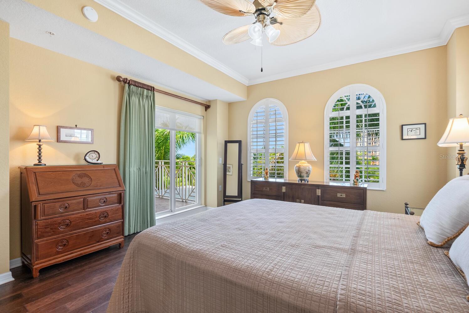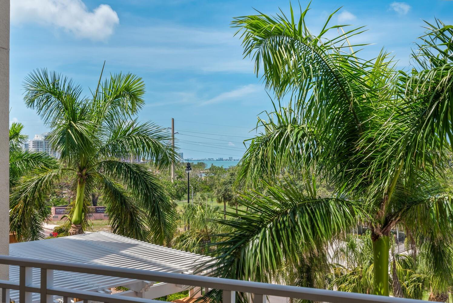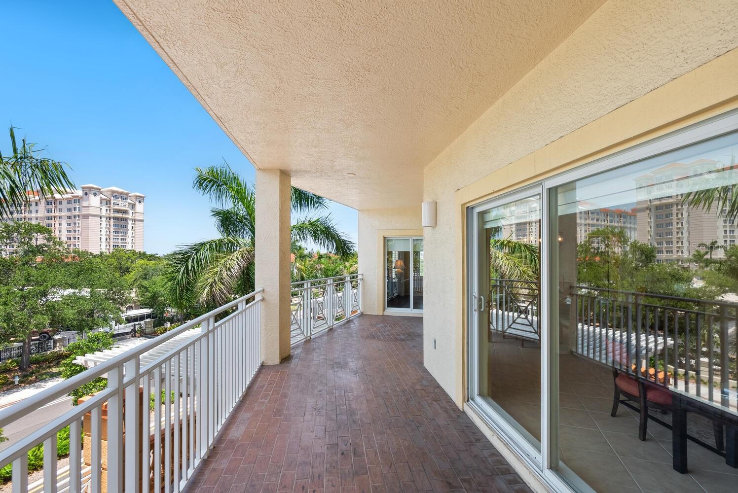 Welcome to this beautifully designed 3-bedroom, 2.5-bath condo offering 2,020 square feet of spacious, light-filled space in one of Sarasota's most desirable locations. This elegant end-unit lives like a single-family home and captures the essence of vibrant city living. Step into a gracious foyer with a built-in cushioned bench--perfect for greeting guests in style. The expansive living and dining area features two sets of sliding doors that open to a large private terrace where you'll enjoy stunning sunsets, partial bay views, and twinkling city lights in the evening. It's the ideal setting for relaxing or entertaining, seamlessly blending indoor and outdoor living. The open kitchen boasts wood cabinetry, granite countertops, a breakfast bar, and a closet pantry, perfect for everything from casual meals to festive gatherings. The owner's suite is a serene retreat with terrace access, two walk-in closets, and a luxurious bath. The second bedroom, with double-door entry, is currently used as a home office with a half bath conveniently located across the hall. The third bedroom includes its own walk-in closet and full bath, offering a private space for guests with a hallway pocket door for added privacy. This home also features impact-rated windows throughout and two secure, assigned parking spaces on the ground floor. San Marco amenities include a heated pool, fitness room, sauna, secure entry, and a pet-friendly environment. Step outside and stroll to The Bay Park, Sarasota's new 53-acre signature waterfront park offering trails, events, and natural beauty. Enjoy the convenience of nearby restaurants, grocery stores, and downtown Sarasota's vibrant shopping, dining, arts, and cultural scene. You're also just minutes from the Ringling Museum, Lido Key, St. Armands Circle, and easy access to world-class theater, symphony, opera, ballet, and more. This is Sarasota living at its finest--where everyday life feels like a front-row seat to the best of culture, coast, and community.