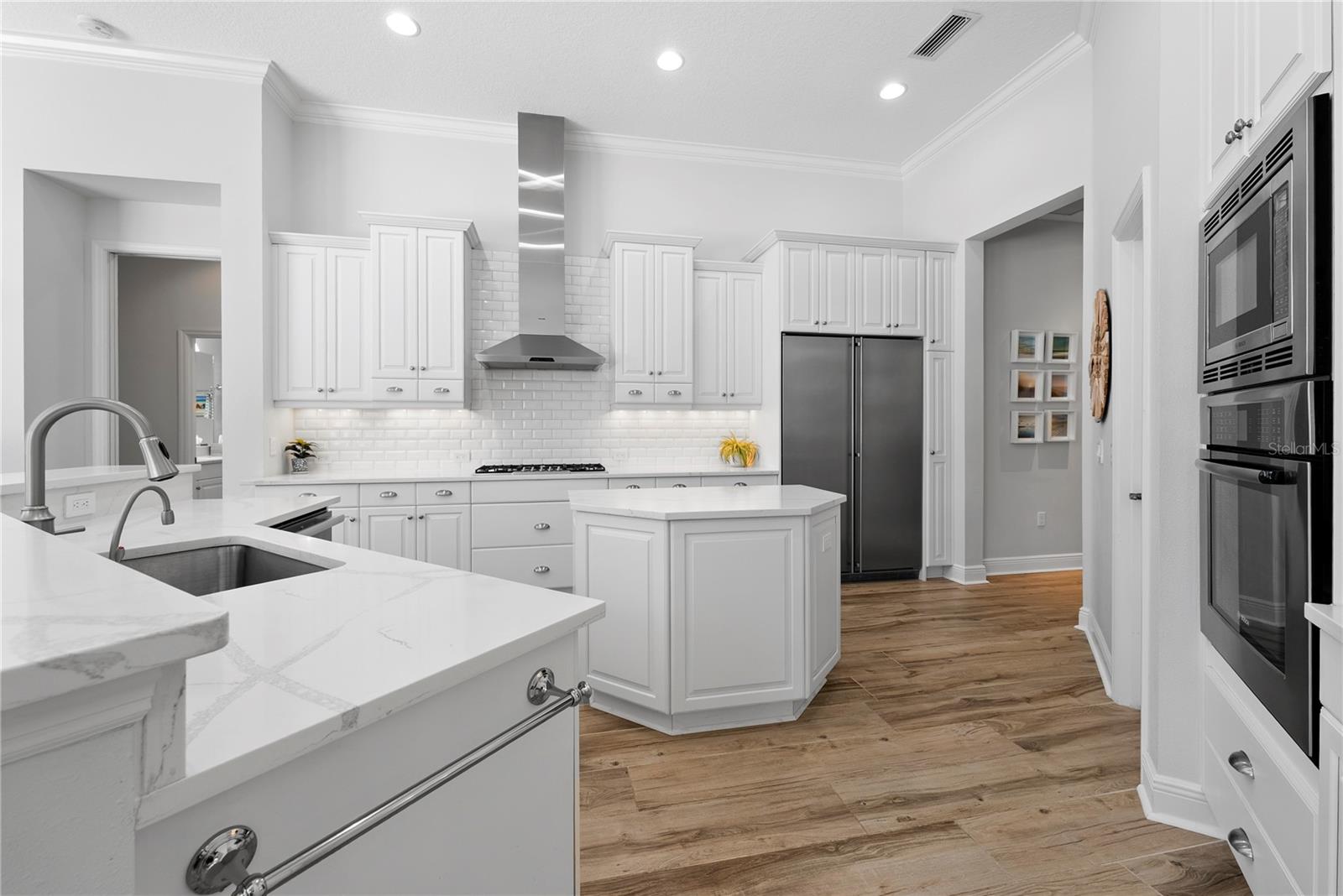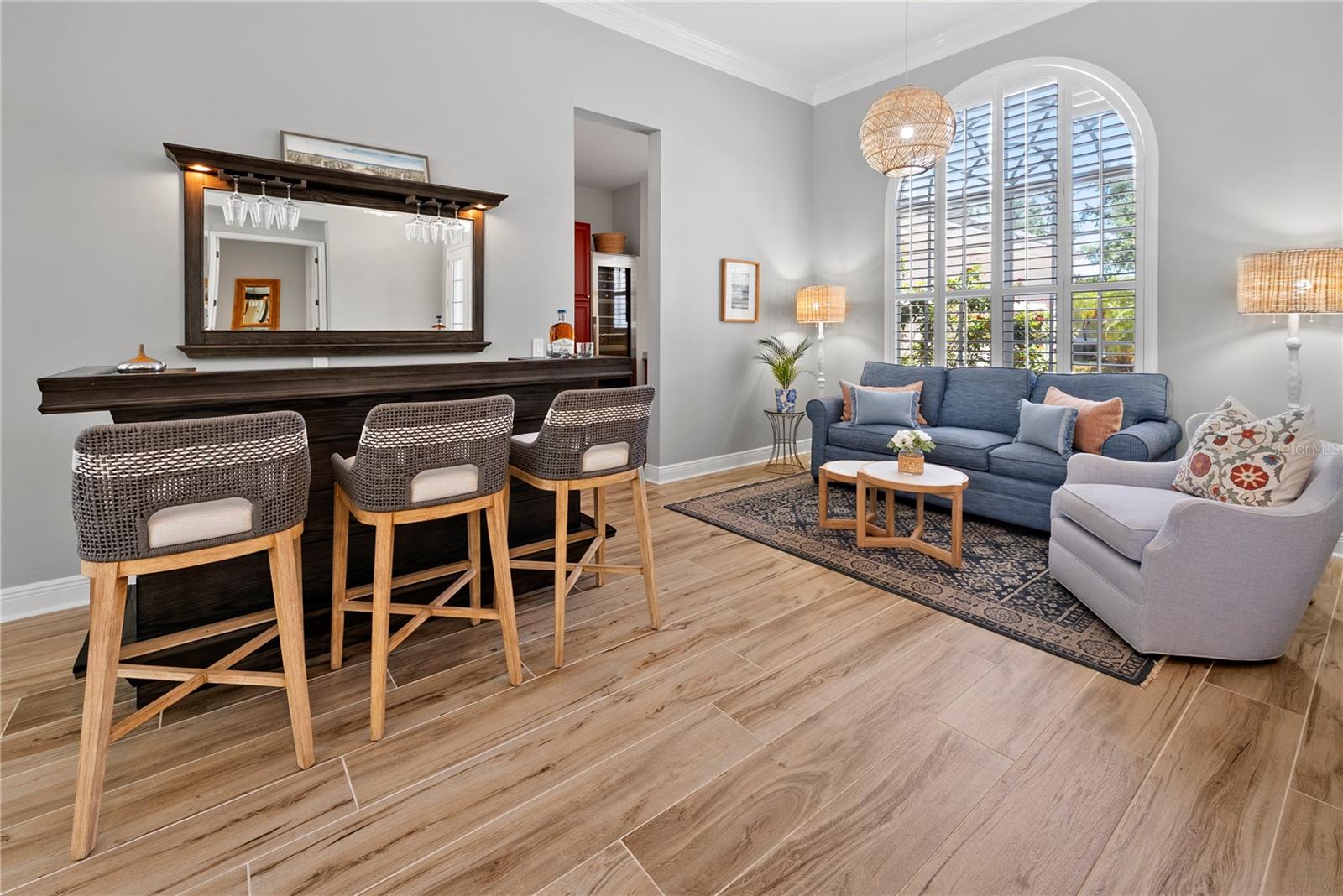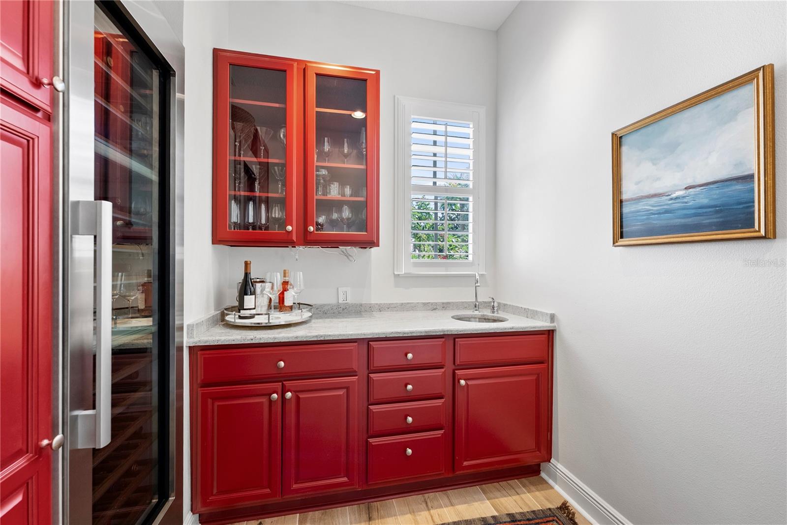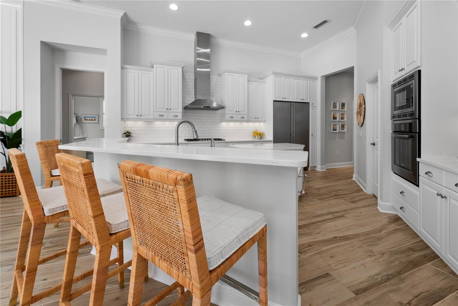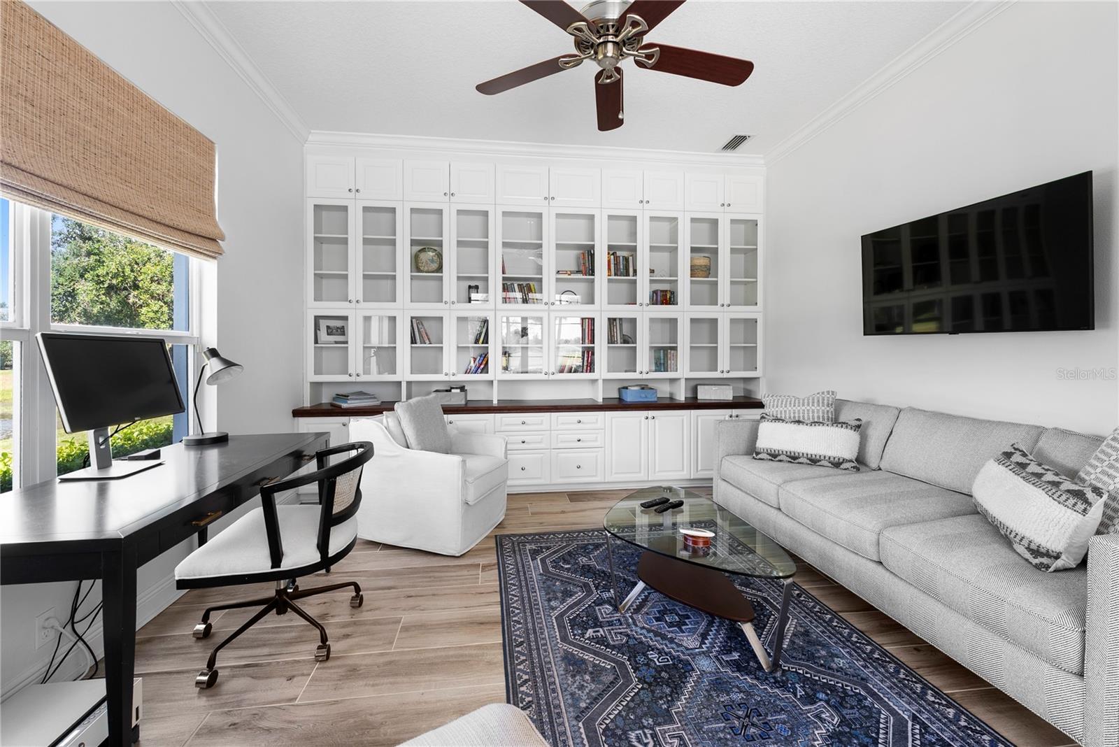 Welcome to one of the most captivating homes in the gated enclave of Lakewood Ranch Country Club, perfectly positioned with water on two sides and stunning views of the picturesque 5th hole on the King's Dune golf course. The home is perfectly positioned to enjoy brilliant sunsets from the lanai. This timeless residence blends privacy, sophistication, and comfort in one of the most sought-after golf course communities on Florida's Gulf Coast. With a freshly painted exterior, this home features impact rated glass throughout. From the moment you step through the grand double doors, you're greeted by soaring ceilings, detailed crown molding, and expansive windows that flood the home with natural light. The open-concept living spaces are thoughtfully designed for everyday elegance and effortless entertaining. At the heart of the home, the chef's kitchen impresses with rich solid wood cabinetry, sleek quartz countertops, high-end appliances, a wine room, and a breakfast nook that overlooks tranquil lake and fairway vistas.The owner's suite is a true sanctuary featuring a tray ceiling, beautiful natural light, and an oversized spa bath with a walk-in shower, soaking tub, and dual vanities. Two comfortable guest bedrooms, a den with custom built-ins, and a formal dining room offer flexibility and function. Additional features include a spacious laundry room and air-conditioned storage off the garage. Upgrades to the home included a new water heater, both new HVACs, new wood look porcelain tile floors, new stone feature TV wall with fireplace surrounded by stunning walls of shiplap and wood trim. Every bathroom has a new toilet. New Serena and Lily ceiling lighting has been added. Step outside to your private retreat - an oversized lanai with multiple seating areas including a brand new outdoor kitchen with new grill and mini frig. The lanai screens have all been replaced, along with a new pool heater for the saltwater pool and spa, all framed by lush tropical landscaping and stunning sunset views over the water. Set within the heart of Lakewood Ranch, the Country Club neighborhood offers miles of scenic trails, parks, and optional membership to four championship golf courses, world-class tennis, pickleball, fitness, and vibrant social activities. Just minutes from Lakewood Ranch Main Street, Waterside Place, shopping, dining, and award-winning Gulf beaches. The HOA fees for the Greystone section of Country Club include grounds maintenance, tree and bush trimming, mulching and a basic cable plus internet package (that can be upgraded).This is more than a home--it's a lifestyle. Schedule your private showing today.