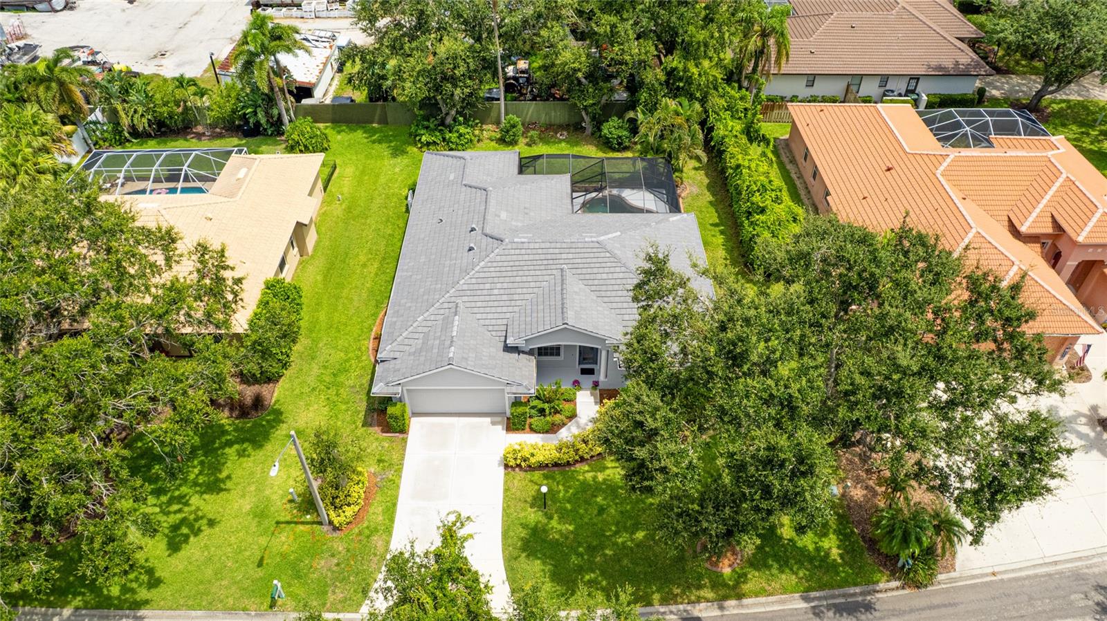 Open for back up offers. Beautifully updated, well-maintained, and ideally located, this 4-bedroom, 2-bath pool home in the desirable Three Oaks community offers the perfect blend of comfort, style, and peace of mind. Nestled on a quiet street with mature landscaping, the property is located in Flood Zone X (no flood insurance required) and has no CDD fee--a valuable combination.Major updates have been completed for your convenience, including a NEW TILE ROOF (2024) with a transferable 20-year warranty, NEW pool pump and filter (2021), NEW salt cell (2024), and a fully refurbished pool cage with new screens, hardware, paint, and doors (2024). The home's exterior was painted in 2019, and well irrigation helps keep the yard looking its best year-round.Inside, the home is light and bright with high ceilings, a neutral palette, and an open layout that creates a welcoming, spacious feel. The kitchen features newer appliances and luxurious dolomite countertops, and flows easily into the family room--perfect for both everyday living and entertaining. A separate formal living room and formal dining room adds versatility, while sliding doors in the living areas and bedrooms lead directly to the screened lanai.The spacious primary suite is a true retreat, offering double vanities, a walk-in closet, a soaking tub, and a separate walk-in shower as well as direct access to the pool. Three additional bedrooms provide plenty of space for family or guests with one having its own access to the pool.Outside, the screened in lanai offers a private pool and multiple seating areas, all surrounded by lush, tropical landscaping--perfect for relaxing or hosting friends.Located in a low-HOA, deed-restricted community, and just one mile from A-rated elementary and middle schools, this home is ideal for families looking to walk or bike to school. With easy access to I-75 and just minutes from downtown Sarasota, top-rated beaches, shopping, dining, and cultural attractions, this move-in-ready home truly has it all.