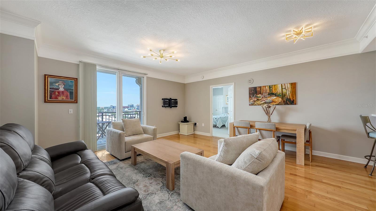 Welcome to Renaissance, where city sophistication meets relaxed coastal living. Perched on the 11th floor of one of Sarasota's most sought-after addresses, this 2-bedroom, 2-bath condo offers beautiful city views, a thoughtfully laid-out open floor plan, and balcony space perfect for morning coffee or a sunset cocktail. Inside, the home features a classic kitchen with light wood cabinetry, tiled flooring, and an updated backsplash, all of which are maintained in pristine condition. The adjacent dining and living areas are bathed in natural light, highlighted by neutral tones and elegant crown molding that add to the inviting ambiance. The primary suite features a spacious en-suite bath and ample closet space, with a split-bedroom layout that provides privacy for guests. An in-unit laundry room adds convenience to everyday living. Renaissance offers exceptional resort-style amenities including 24/7 security, two guest suites, a heated pool and spa, fitness and aerobics centers, hot rock saunas, massage rooms, a club room with fireplace and TV, a business center, media room, library, conference space, outdoor grilling area, and Wi-Fi throughout the lobby. HOA fees cover cable, internet, water, sewer, and trash. Just outside, The Bay Park, currently featuring free yoga, live music, and community events, sits across the street, along with Van Wezel Performing Arts Center, Publix, Whole Foods, downtown shopping, dining, theaters, and more. The beach is just a short 10-minute drive away. Whether you're seeking a full-time residence, seasonal getaway, or investment opportunity in Sarasota's vibrant downtown core, this beautifully maintained condo delivers the perfect blend of comfort, convenience, and location.