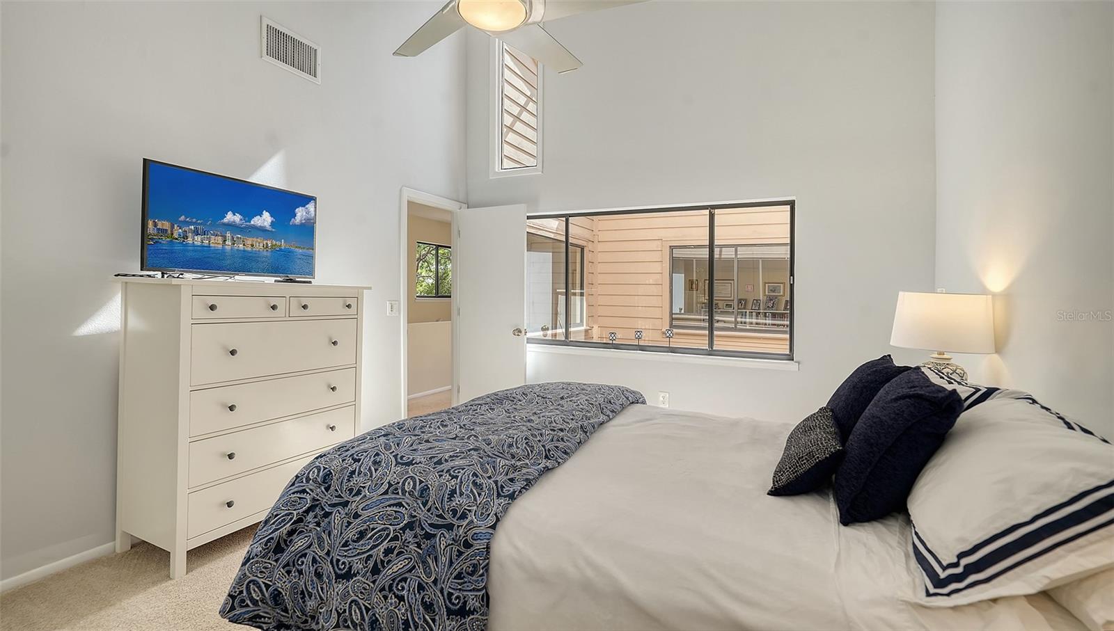 Centrally located townhouse, with main bedroom on first floor, in The Meadows, one of Sarasota's sought-after neighborhoods just 15 minutes from downtown. A canopied street and a two-car garage welcome you home. Inside you'll be greeted by a charming atrium that fills the space with gorgeous indirect light and cathedral ceilings in the living room providing an open and airy feeling. You will love relaxing in the 20-foot screened-in lanai overlooking a tranquil and lush garden. Upstairs, you will find soaring ceilings, abundant natural light, and the other two bedrooms and a bath. All across the street from the heated community pool and a mile to all the fun The Meadows has to offer. A five-star location on 1,600 park-like acres, The Meadows is a resort lifestyle community 15 minutes from downtown. Residents enjoy 14 miles of biking and hiking trails, fun-filled activities, fitness center, Junior Olympic pool, pickleball courts, and pay-to-play in a top tennis complex. Its prime location places you near award-winning beaches, remarkable arts and culture, Nathan Benderson Park, the upcoming Mote SEA Aquarium and Sarasota Orchestra, and The Mall at University Town Center, a world-class shopping, entertainment and dining destination. A fabulous Florida lifestyle awaits. With 2022 air conditoner, 2011 shingle roof (condominium's responsibility) and above flood plain in zone X
