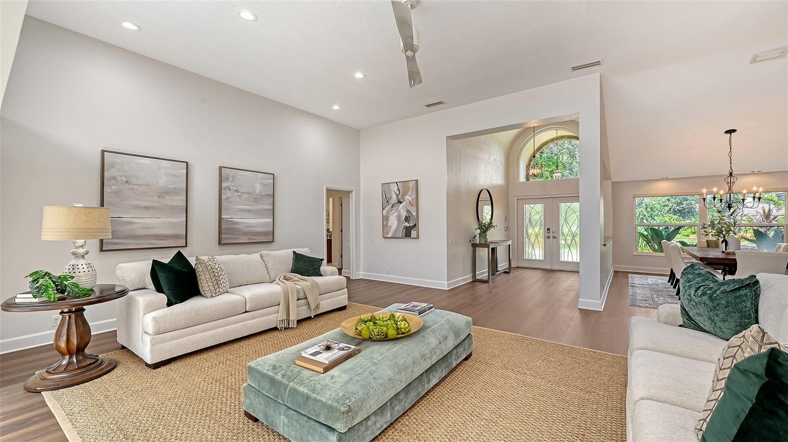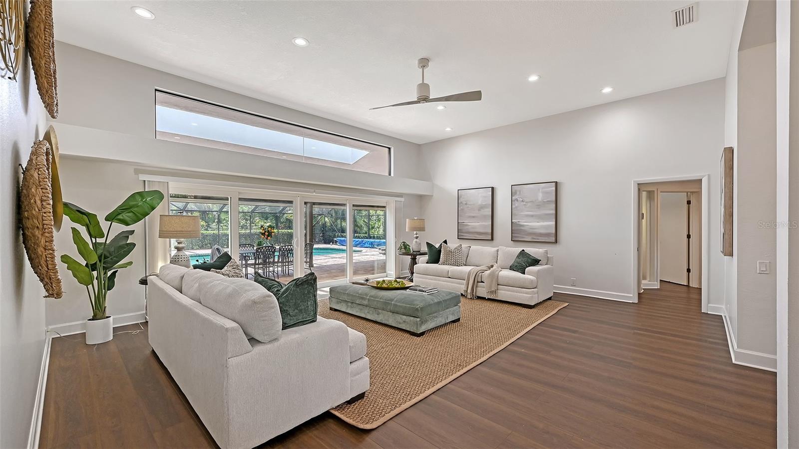 Luxury living meets family comfort in Woodlands II at Bent Tree, one of Sarasota's most desirable gated communities! Set on a private -acre cul-de-sac lot, this beautifully updated 5 or 6-bedroom, 5-bath + office, 3-car garage estate offers over 5,000 sq ft of living area (6,599 total) with space, style, and flexibility for every lifestyle.Step inside to 10-foot ceilings (soaring to 15 feet in the family room), a welcoming wood-burning fireplace, and architectural details that create warmth and elegance throughout. The chef's kitchen (updated in 2020) showcases high-end cabinetry, granite countertops, double ovens, a Sub-Zero refrigerator, and a large mud room/pantry to keep daily life organized. The luxurious primary suite features vaulted ceilings, dual walk-in closets, and a spa-inspired bathroom with a soaking tub, double vanities, and walk-in shower. Four additional bathrooms (updated in 2020) feature stylish tile, modern fixtures, and designer touches.The versatile floor plan easily accommodates large families, guests, or multi-generational living with four spacious bedrooms downstairs, including a flexible bonus/bedroom adjacent to the Jack and Jill suite. This area offers wonderful potential as a playroom, media room, or second family room, yet remains a true bedroom with direct pool access--perfect for guests, teens, or in-laws. The main level also includes a dedicated office, formal dining room, living room, and family room. Upstairs, two additional bedrooms share a full bath, ideal for visiting family or extended household needs. An exterior staircase connects the upper level directly to the pool area for easy access and privacy.Outdoor living shines with a heated pool, expansive pavered deck, and two covered patios perfect for entertaining or relaxing. Enjoy poolside meals with a built-in gas grill, sink, and storage, surrounded by lush tropical landscaping and a fully fenced backyard. The rescreened pool cage (2024) features a tight weave for no-see-um protection and added durability.The oversized 3-car side-load garage with Trex flooring and extensive built-ins provides excellent storage and organization, while the large courtyard offers generous parking for family and guests.This home's solid construction and thoughtful updates ensure both beauty and reliability. Recent improvements include a new roof (2023), four HVAC units (2021-2023), hurricane-rated doors and windows, automatic lanai shutters (2024), and a 38kW water-cooled whole-house generator. Fresh interior paint, new irrigation, and Flood Zone X (no flood insurance required) add further peace of mind.Every detail has been carefully curated for both elegance and practicality--blending timeless design with modern comfort. Inside and out, this home radiates quality craftsmanship, creating a welcoming retreat for family and friends.Enjoy the serenity of Bent Tree's 18-hole championship golf course, tree-lined roads perfect for walking and biking, and no CDD fees. Conveniently located near top-rated schools, Siesta Key and Lido Beaches, St. Armands Circle, and downtown Sarasota's shopping, dining, and arts scene.Move-in ready, beautifully maintained, and designed for versatility--experience the perfect blend of luxury, comfort, and Sarasota living at its best!