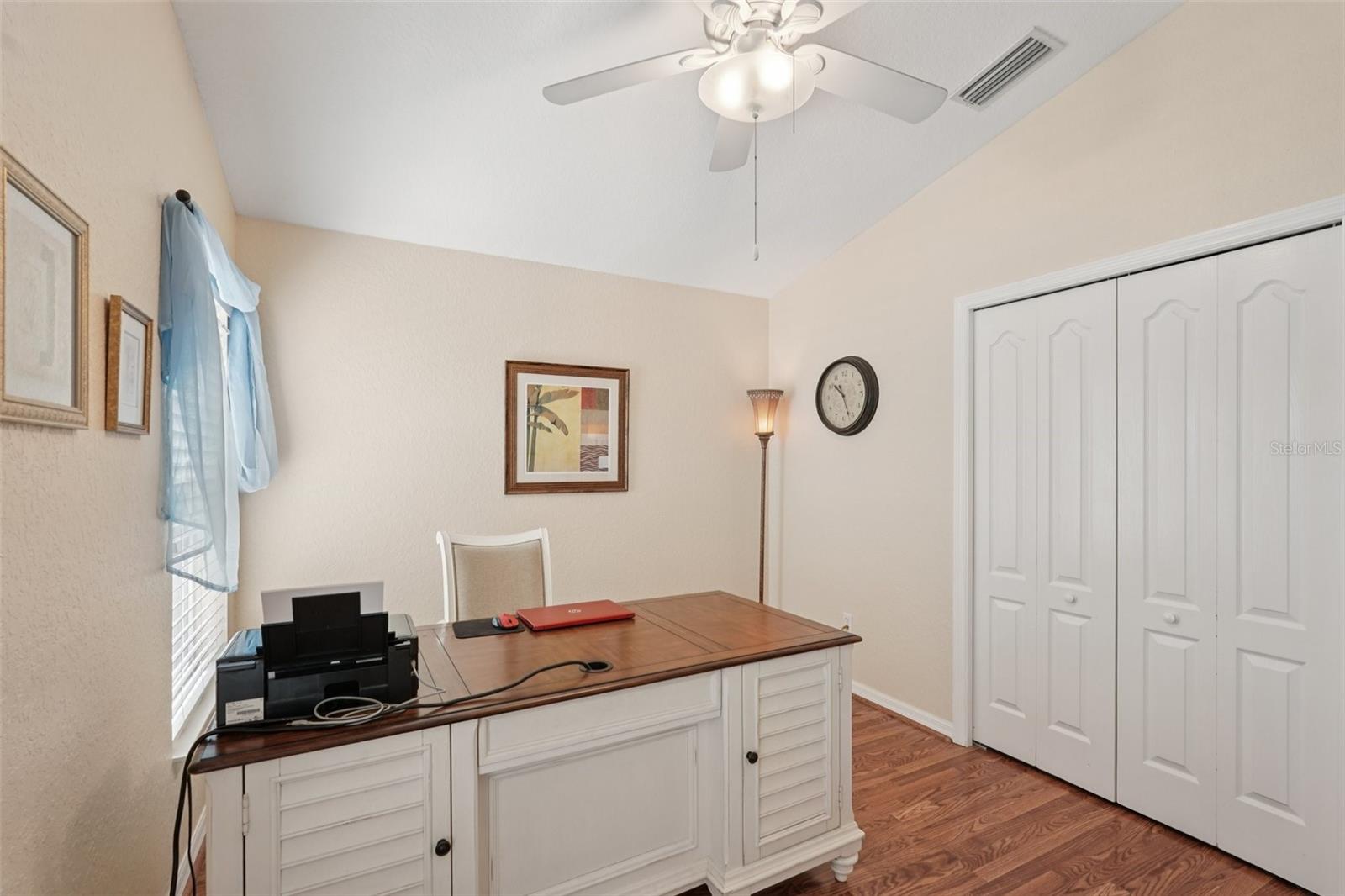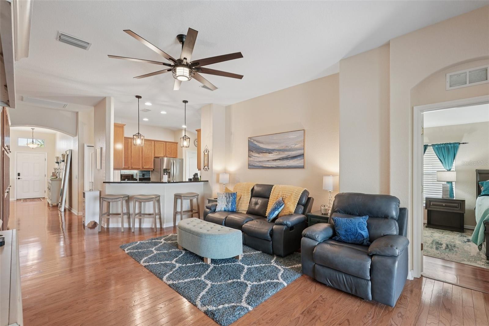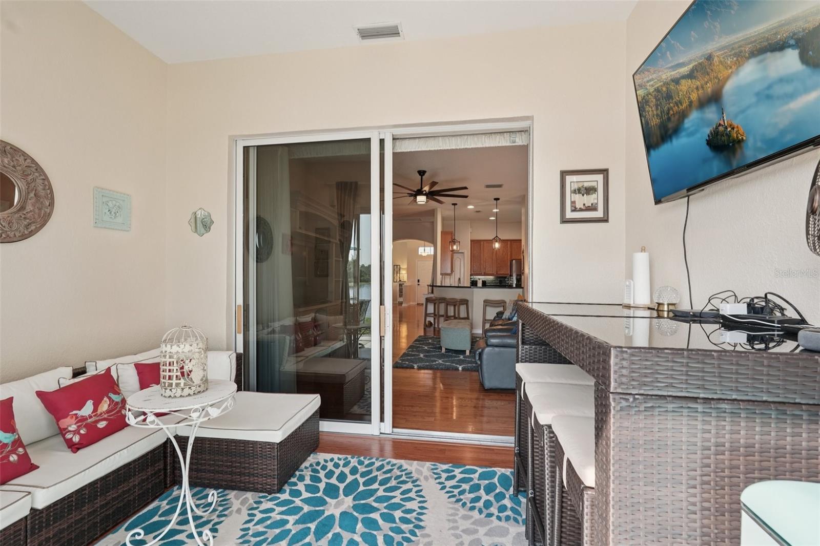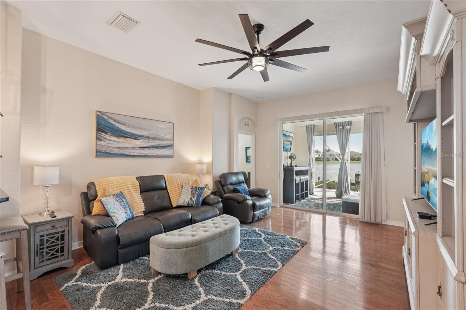 From the moment you enter you will be delighted with the best lake view in Lakeside Plantation. The preserve beyond the lake is great for bird watching and there are lake views from most rooms. The soaring ceilings and archways create an elegant ambience. The home features 4 bedrooms and 2 full bathrooms. There is also a bonus room you can use for an office, playroom, craft room etc. The eat-in kitchen features new stainless-steel Whirlpool appliances, new GFCI outlets, real oak cabinets with crown molding, granite counters, and under cabinet lighting that highlights the fabulous newly installed backsplash. Organization is a snap with the built-in cabinets in the hallway just off the kitchen. Both bathrooms have granite counters, updated lighting, shower wall extended to ceiling, and vessel sinks. The primary bath has a new toilet and professionally cleaned shower and new grout. There is NO carpet in this home. The main living areas have hardwood floors, bedrooms and bonus room are wood laminate, and the wet areas are a neutral tile. There are 3" Hunter Douglas blinds throughout the home. There is a family dining room combo when you first walk in and to the rear of the home is a separate family room with a new large remote-control lighted fan. The kitchen bar area has new pendant lights, and the eat-in kitchen has a matching pendant light. New dimmer light switches have been installed throughout. The exterior of the home was just painted as well as the garage floor, driveway and lanai pressure washed; new landscaping and irrigation (7 zones) was installed. The roof was replaced in 2020 and HVAC in 2022 with a UV light. The Sliding glass doors are hurricane impact as well as some of the windows. The front door has a new coded lock, and the garage door has a new remote pad and new remote controls. There is a newly installed Ring Doorbell for added security. This is a pet and smoke free home. There is a heated, saltwater resort style community pool and hot tub, tennis courts, basketball and pickle ball courts, fitness center, playground, billiard room and library. Many activities at the clubhouse to enjoy! You can relax knowing your lawn care is maintained by the HOA. Don't miss the opportunity to own this lakefront beauty in the Lakeside Plantation community. Enjoy the convenience of nearby golf courses, beaches, shopping and entertainment. Schedule a private showing today!