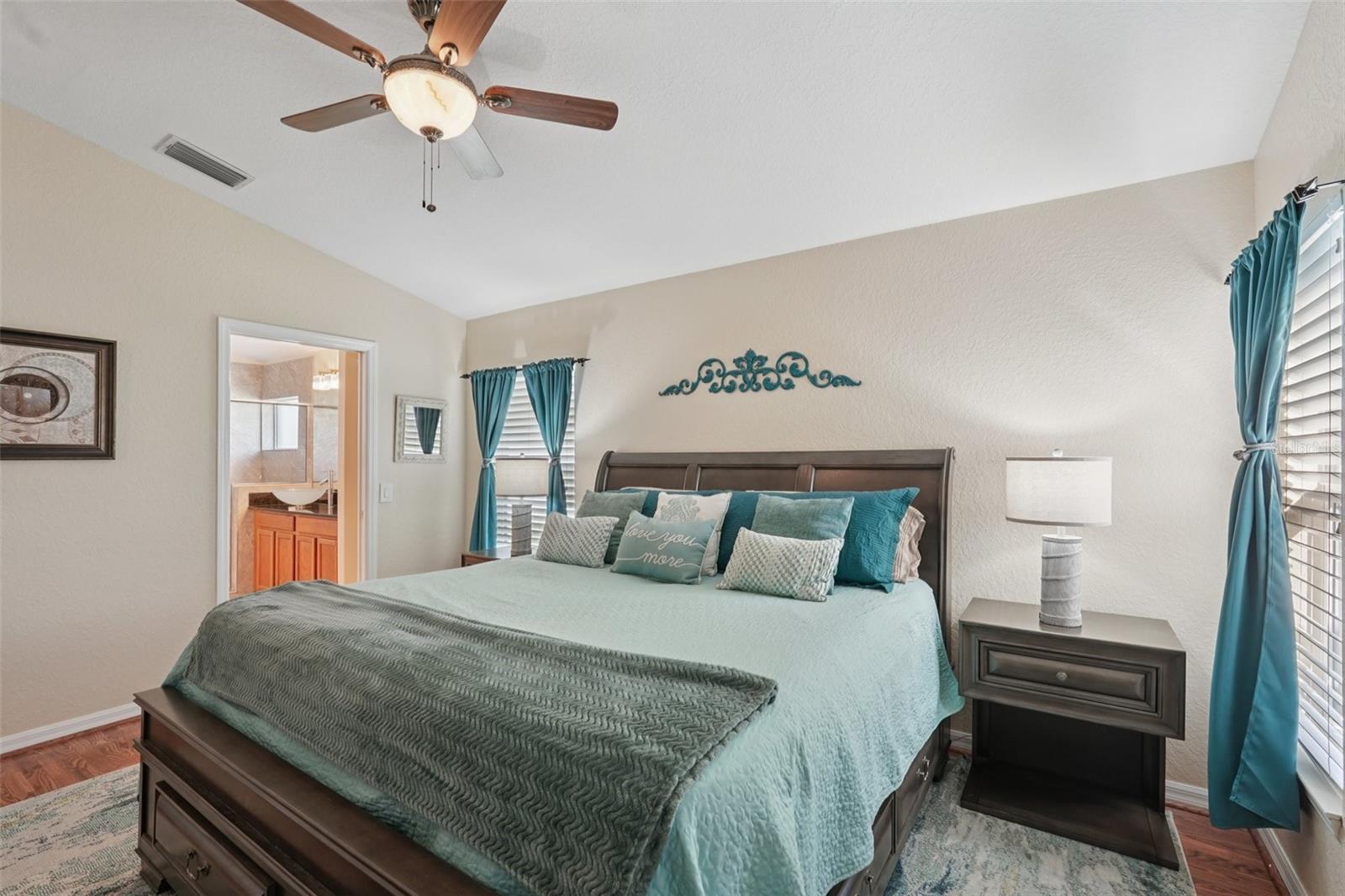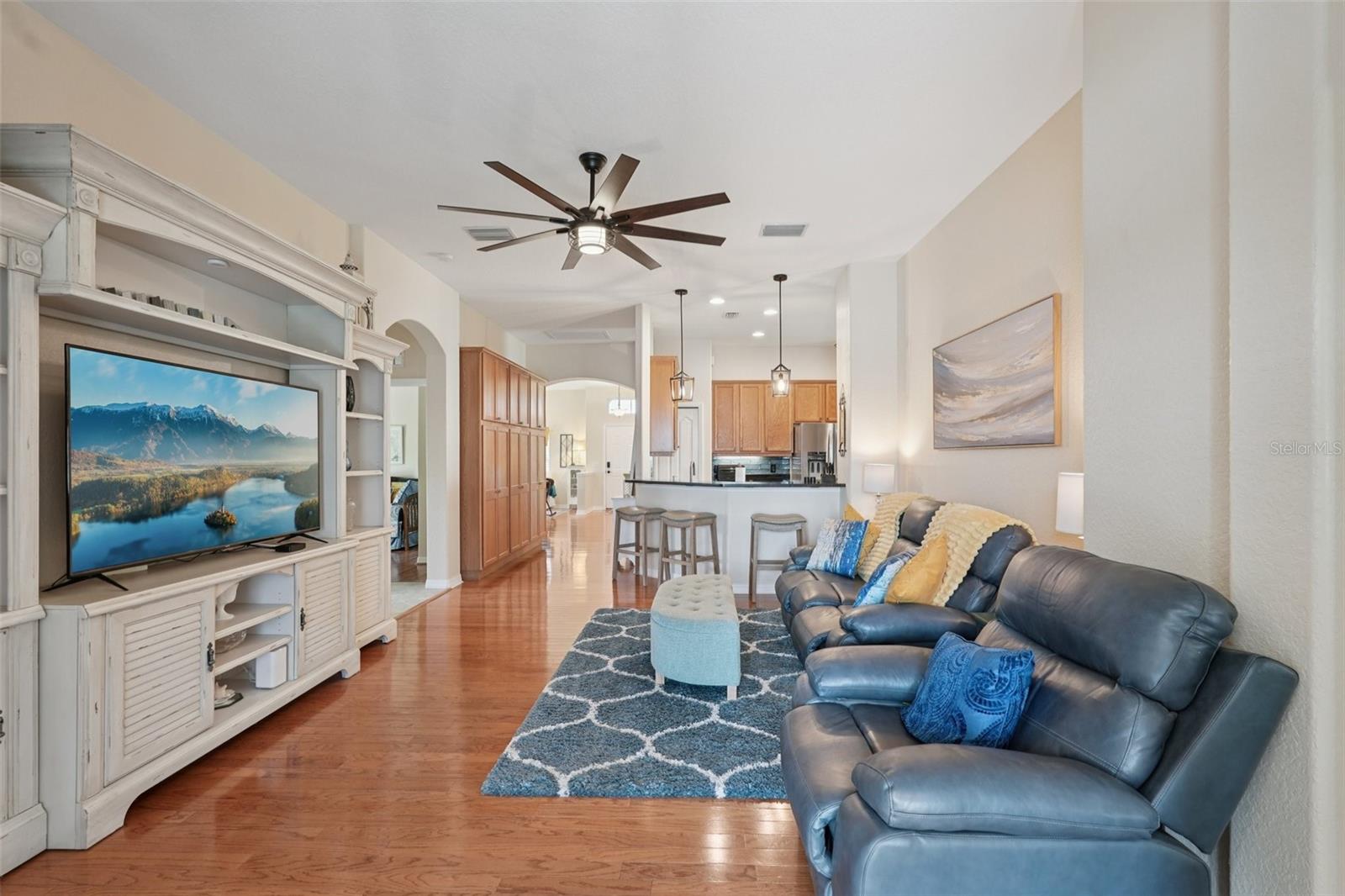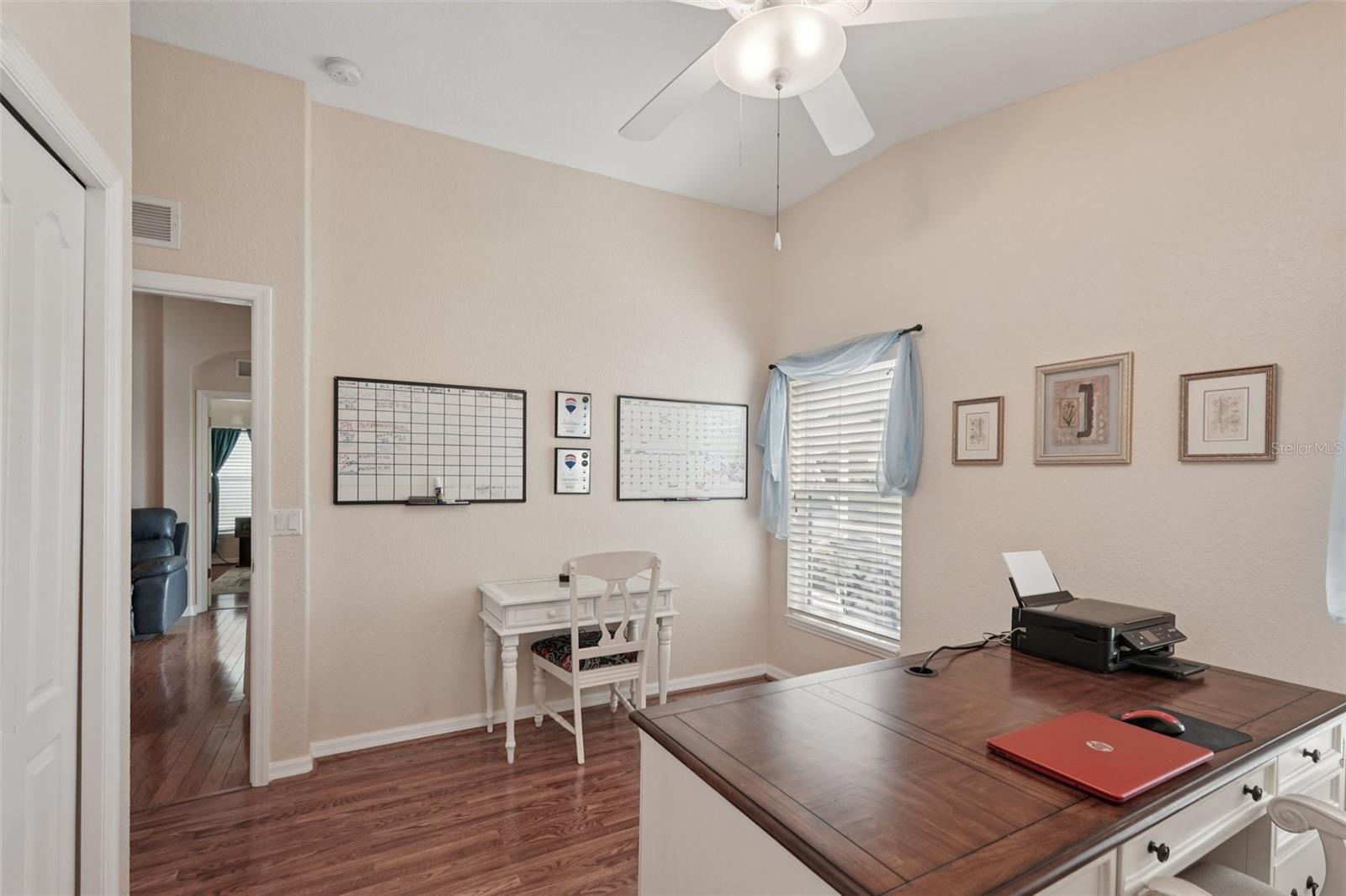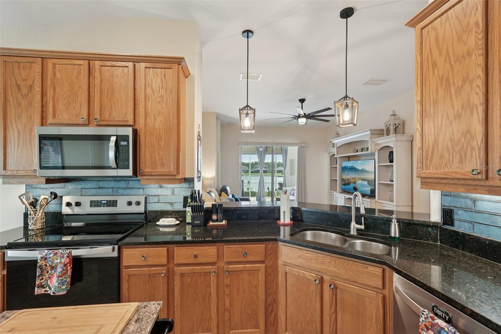 From the moment you enter you will be delighted with the best lake view in Lakeside Plantation. The preserve beyond the lake is great for bird watching and there are lake views from most rooms. The soaring ceilings and archways create an elegant ambience. The home features 4 bedrooms and 2 full bathrooms. There is also a bonus room you can use for an office, playroom, craft room etc. The eat-in kitchen features new stainless-steel Whirlpool appliances, new GFCI outlets, real oak cabinets with crown molding, granite counters, and under cabinet lighting that highlights the fabulous newly installed backsplash. Organization is a snap with the built-in cabinets in the hallway just off the kitchen. Both bathrooms have granite counters, updated lighting, shower wall extended to ceiling, and vessel sinks. The primary bath has a new toilet and professionally cleaned shower and new grout. There is NO carpet in this home. The main living areas have hardwood floors, bedrooms and bonus room are wood laminate, and the wet areas are a neutral tile. There are 3" Hunter Douglas blinds throughout the home. There is a family dining room combo when you first walk in and to the rear of the home is a separate family room with a new large remote-control lighted fan. The kitchen bar area has new pendant lights, and the eat-in kitchen has a matching pendant light. New dimmer light switches have been installed throughout. The exterior of the home was just painted as well as the garage floor, driveway and lanai pressure washed; new landscaping and irrigation (7 zones) was installed. The roof was replaced in 2020 and HVAC in 2022 with a UV light. The Sliding glass doors are hurricane impact as well as some of the windows. The front door has a new coded lock, and the garage door has a new remote pad and new remote controls. There is a newly installed Ring Doorbell for added security. This is a pet and smoke free home. There is a heated, saltwater resort style community pool and hot tub, tennis courts, basketball and pickle ball courts, fitness center, playground, billiard room and library. Many activities at the clubhouse to enjoy! You can relax knowing your lawn care is maintained by the HOA. Don't miss the opportunity to own this lakefront beauty in the Lakeside Plantation community. Enjoy the convenience of nearby golf courses, beaches, shopping and entertainment. Schedule a private showing today!