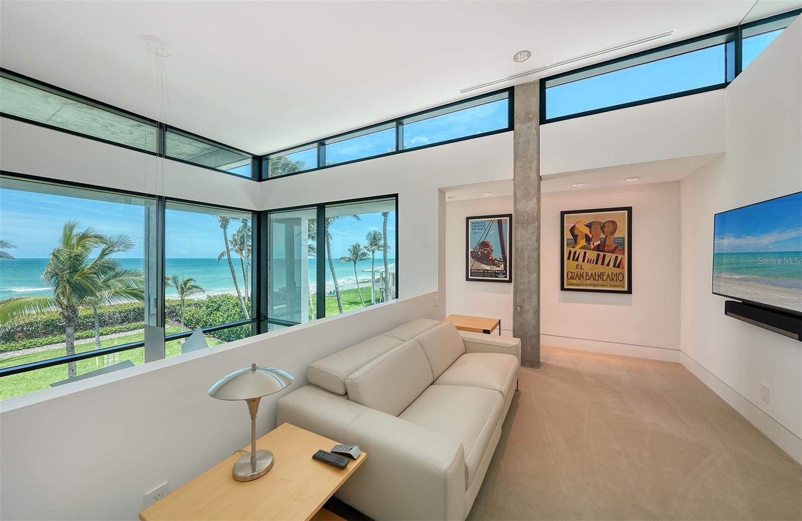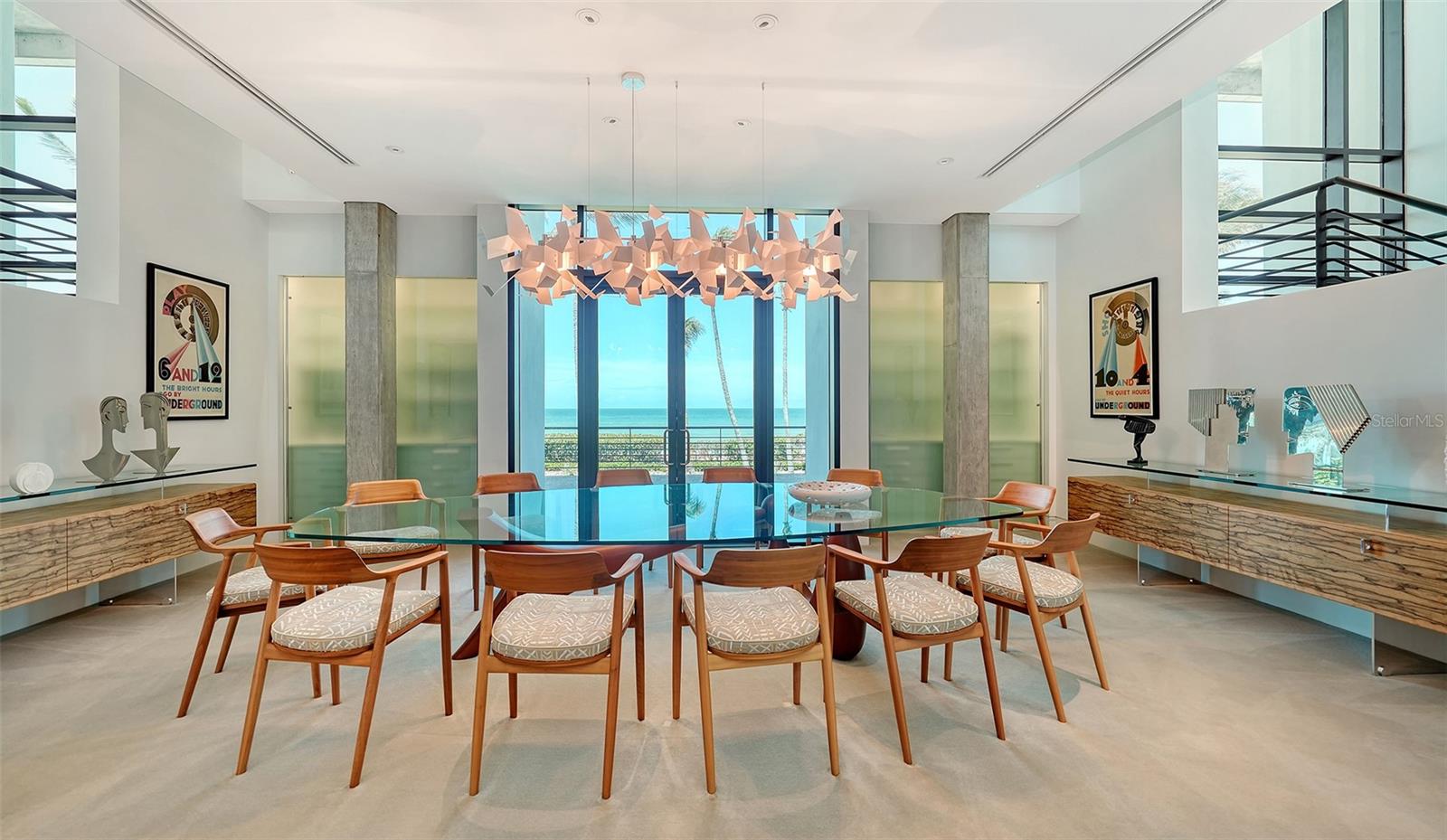 Guy Peterson's architectural masterpiece is located in Sarasota's most prestigious gated enclave. Positioned on the white sands of Siesta Key, 8250 Sanderling Road is more than a residence; it is a bold statement in modern architecture, masterfully envisioned by renowned architect Guy Peterson, FAIA. Set on 1.54 private acres with 150 feet of Gulf-front beach and 150 feet of lagoon frontage behind the gates of the exclusive Sanderling Club, this estate is a rare fusion of design innovation, artistic expression, and coastal tranquility. Widely recognized as one of Florida's most iconic modern beach residences, the property has received top honors including the AIA Florida Test of Time Design Award, AIA Florida Gulf Coast Honor Award and the AIA Florida Excellence in Architecture Award, and has been featured in The Wall Street Journal, HGTV's Homes Across America, Robb Report, Florida Design, Sarasota Magazine and more. It is also prominently included in Four Florida Moderns and 50 US Architects Residential and Planning, placing it among the most significant architectural achievements in the country. The home was designed as a series of four interconnected pavilions anchored in concrete and glass. It was reimagined in 2014 by the original architect, Guy Peterson, alongside Michael K. Walker and Richard Geary. The result is a striking architectural clarity that elevates the original design while introducing refined modern comforts. The sculptural faade is defined by bold horizontal lines, artful cutouts, and a seamless blend of poured concrete, steel, and sanded glass. A shell stone path leads to a dramatic entry, where the residence begins to unfold like a gallery of light and form. Inside, the interiors echo the clean geometry of the exterior. A soaring multi-level foyer acts as a central spine of the home, where light, shadow and structure interplay like a living installation. The custom-designed bar, lit by an onyx countertop, is functional and atmospheric. The dining room is framed by concrete columns and translucent glass, revealing a cinematic view of the Gulf beyond. The kitchen, anchored by warm teak millwork, features dual islands, Miele and Wolf appliances, and honed marble surfaces, creating a space as elegant as it is functional. The owner's suite offers a peaceful retreat with a sitting area, private terrace, and coffee bar, while dual baths evoke spa-like tranquility with stone finishes and minimalist detailing. A private office with panoramic Gulf views inspires focus, while additional guest suites offer comfort and privacy with en-suite accommodations. Outside, a sprawling terrace connects indoor and outdoor living, ideal for intimate reflection or entertaining against the sound of waves. Residents of The Sanderling Club enjoy access to a private marina and beach plus 24-hour guard-gated enclave celebrated for its discretion and architectural legacy. With its distinguished pedigree and timeless design, 8250 Sanderling Road is a coastal sanctuary that honors the past, elevates the present, and secures its place among the most architecturally significant homes in on Florida's Gulf Coast.