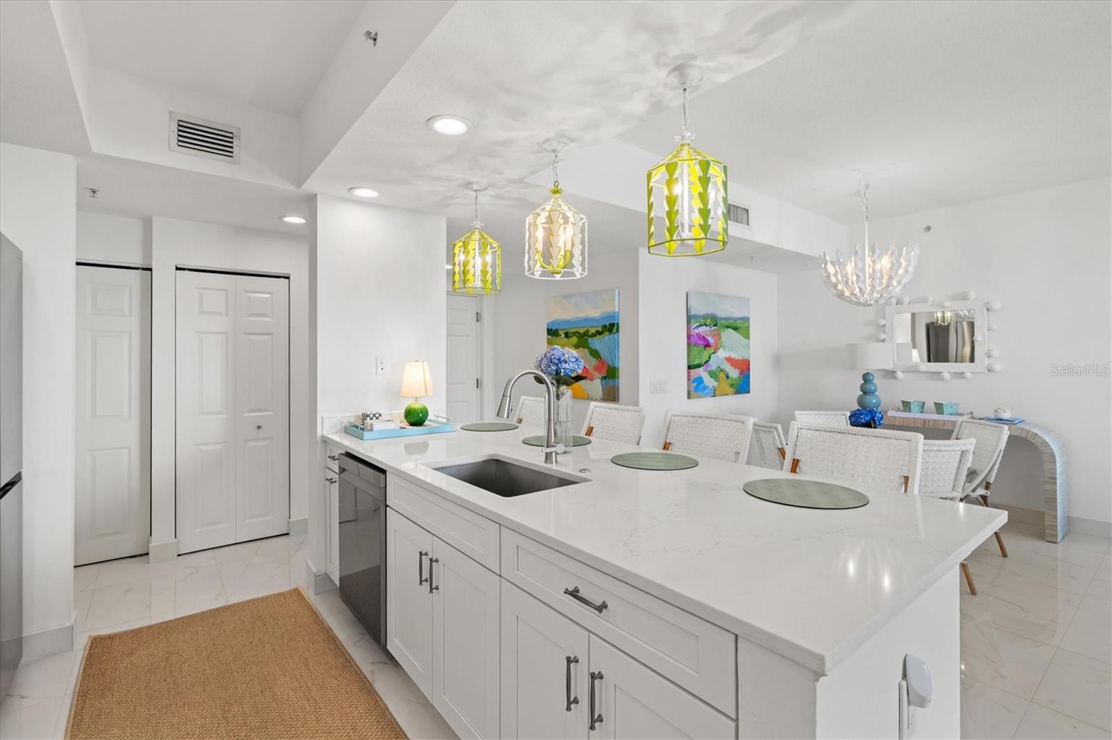 Welcome to the pinnacle of coastal luxury living! Prepare to be captivated by this stunning two-bedroom, two-bath unit in the heart of downtown Sarasota. Step inside and be instantly greeted by a bright, open floor plan that feels like a breath of fresh air. Sunlight dances across the gleaming marble floors, creating an ethereal, cloud-like ambiance--even from your 11th-floor sanctuary. Gorgeous porcelain tiles extend to the baseboards, creating a seamless look that is as easy to clean as it is beautiful.The kitchen is a chef's dream, featuring a sleek Samsung stainless steel appliance package that perfectly complements the home's elegant atmosphere. The spacious primary bedroom offers breathtaking views of Sarasota Bay, a generous walk-in closet, and a custom-designed en-suite bath that is both beautiful and highly functional. You'll love the large walk-in shower and the rare, coveted linen closet, providing all the storage you need.The second bedroom is just as impressive, with two large windows framing spectacular views of Sarasota Bay and the iconic Ringling Bridge. Even the laundry room has been transformed into a stylish space with built-in cabinetry and a beautiful light fixture. And every evening, you'll be treated to the most magnificent sunsets on the West Coast of Florida right from your window!Living at Alinari means experiencing the very best of condominium living. The building is a fortress of security and stability, constructed with reinforced concrete beams and built on pilings drilled deep into the ground. Alinari is located in flood zone X, with the lobby and guest parking elevated 17 feet above sea level. This unit even comes with two assigned parking spaces--one on the third floor and one on the first--so your vehicles are secured and elevated over 30 feet from sea level.Beyond your unit, Alinari offers a resort-style lifestyle with amenities that cater to your every need. Enjoy lovely plazas, fountains, a sparkling clubroom, a fully equipped business center, a state-of-the-art fitness center, and even a resident theater. With a grand entrance, an impressive lobby, and 24-hour front desk services including an overnight guard, you'll feel completely secure and well-cared for.Imagine a life where every morning begins with a breathtaking waterfront vista, and 53 acres of pristine, lush greenery are your backyard. This isn't just a dream; it's the reality of living in a stunning residence adjacent to The Bay Park in Sarasota.Step outside your door and find yourself immersed in a picturesque setting, with walking paths, scenic overlooks, and endless opportunities for relaxation just a stone's throw away. The vibrant Sarasota Cultural District is within easy reach, offering a world-class array of arts, dining, and entertainment, but when you want to retreat, your personal oasis awaits.The future is even brighter. With Phase 2 of The Bay Park underway, residents will soon have even more exciting amenities right at their doorstep, including an improved canal district with day docks and a new bayfront restaurant, a reimagined cultural district honoring historic buildings, and an enhanced resilient shoreline for even more access to Sarasota Bay.This is more than just a home; it's an opportunity to experience the ultimate blend of nature, culture, and convenience. Don't miss your chance to live in this truly exceptional location, where the best of Sarasota is right at your fingertips!