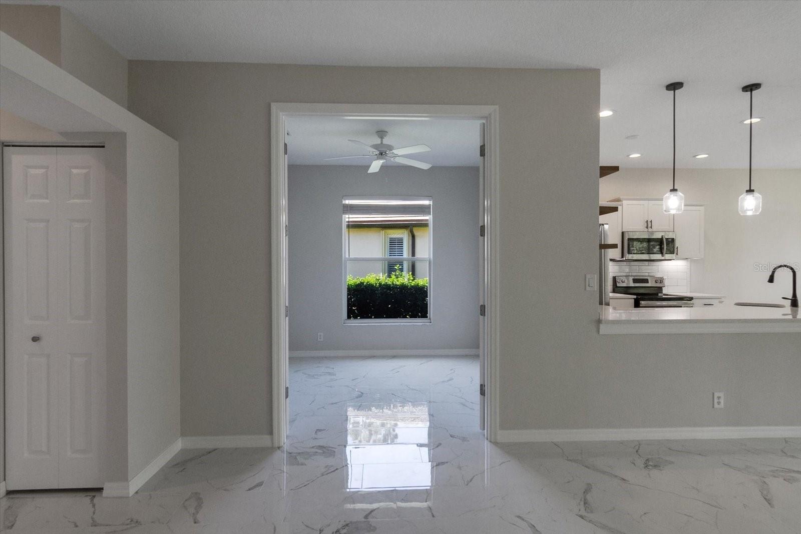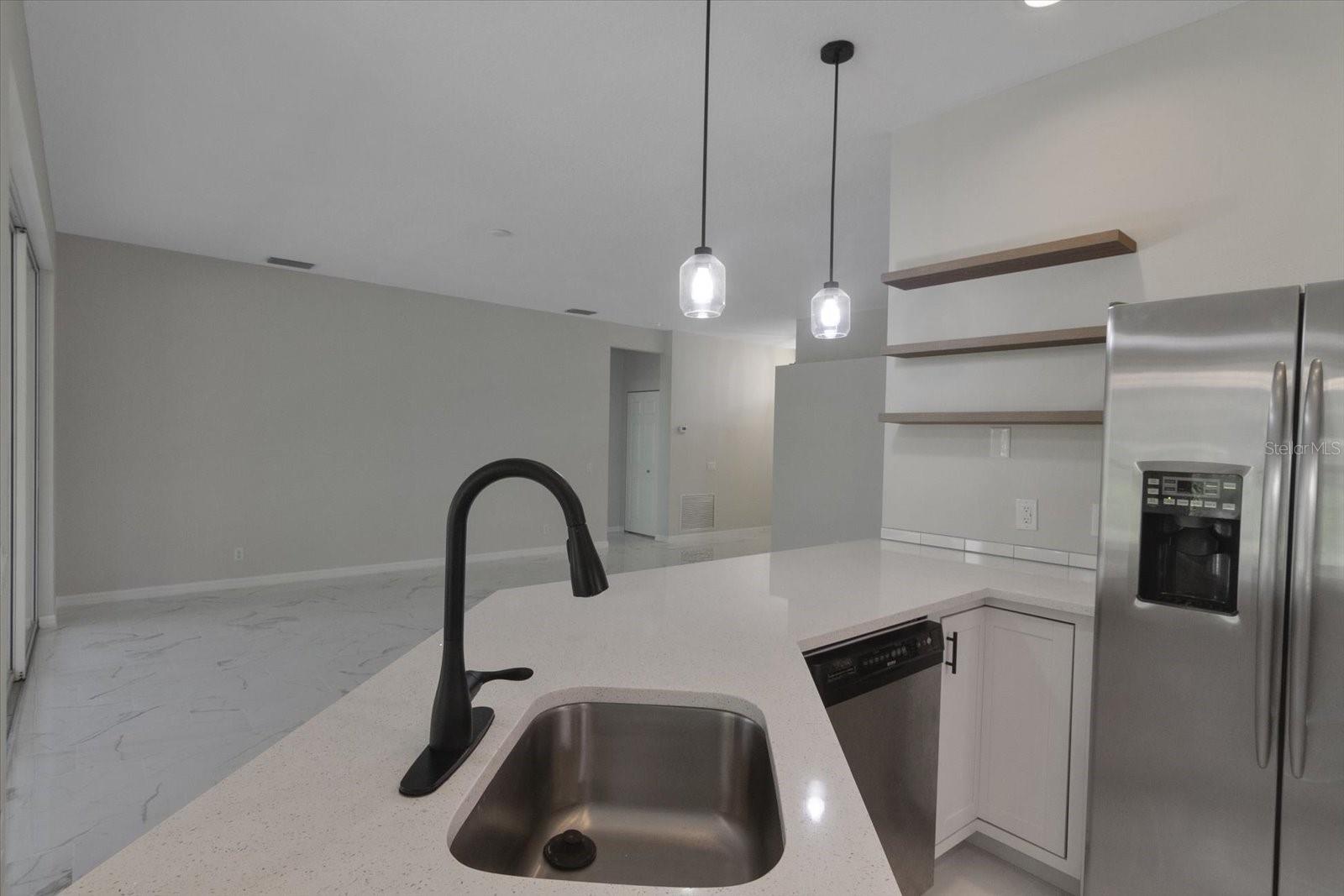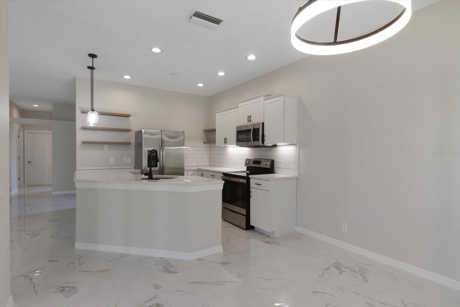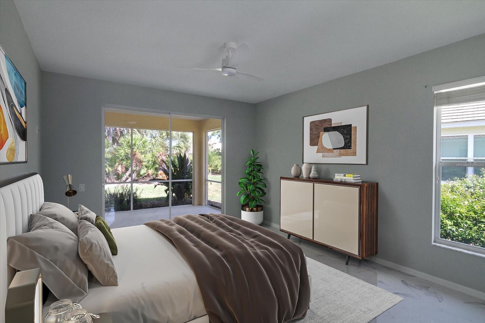One or more photo(s) has been virtually staged. Welcome to 2295 Harrier Way - where elegance, comfort, and convenience come together in perfect harmony.This beautifully updated home offers a timeless design with carefully curated finishes. Nestled in Falcon Trace, the sought-after maintenance-free enclave of Calusa Lakes, this residence combines sophistication with everyday ease.Set on a spacious lot surrounded by lush vegetation and preserved woodlands, the property provides both natural light and serene privacy. Step inside to an open, thoughtfully designed floor plan with soaring ceilings and brand-new marble-look porcelain tile flooring throughout.The heart of the home is a modern chef's kitchen, complete with quartz countertops, stainless steel appliances, and a peninsula that opens to the central living room--perfect for both entertaining and everyday living. A bright dining area, embraced by windows overlooking the natural surroundings, enhances the sense of connection to the outdoors.The primary suite is generously sized, offering room for a king bed with additional furnishings, along with dual walk-in closets. The ensuite bath is a luxurious retreat, featuring a new marble-tile shower, stone-topped vanities, updated fixtures, mirrors, and lighting. The split floor plan ensures privacy, with a spacious second bedroom and fully remodeled guest bath on the opposite side of the home. A versatile third room--accessible through French doors--can serve as an office, library, or guest bedroom.Additional features include a large two-car garage with a workbench, laundry area with washer, dryer, and utility sink, plus direct side-door access. Outside, the screened lanai opens to a completely private backyard framed by mature Florida landscaping--beautifully maintained year-round by the association.Living here feels like resort-style luxury. Just a short stroll away, residents of Falcon Trace enjoy an exclusive heated pool, with additional access to the main Calusa Lakes pool. The gated community also offers a clubhouse with restaurant and bar, tennis courts, and an 18-hole golf course, all surrounded by lakes, waterfalls, and tropical scenery.Ideally located between Sarasota and Venice, you'll be just minutes from I-75, shopping, dining, boating, and some of Florida's most famous beaches--including Nokomis Beach and Siesta Key, known for pristine white sands.2295 Harrier Way is more than a home--it's a lifestyle. Experience the perfect balance of elegance, tranquility, and convenience in one of Sarasota County's most desirable communities.