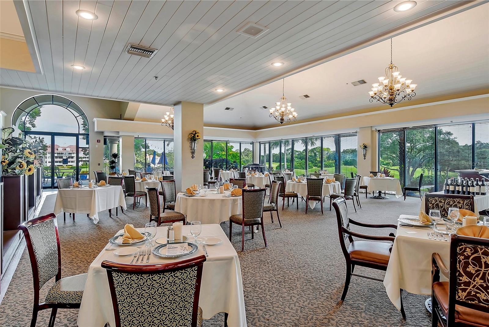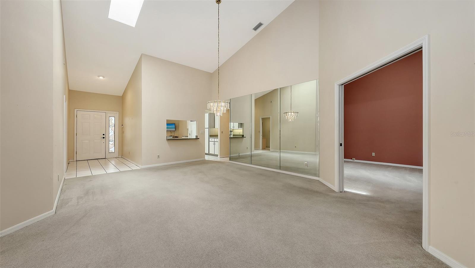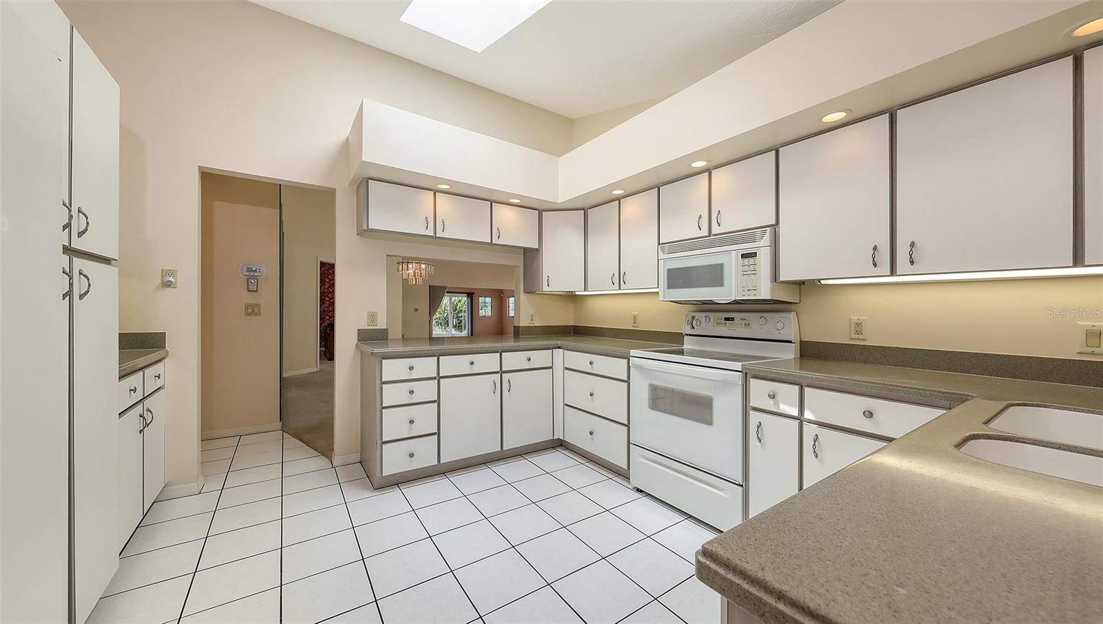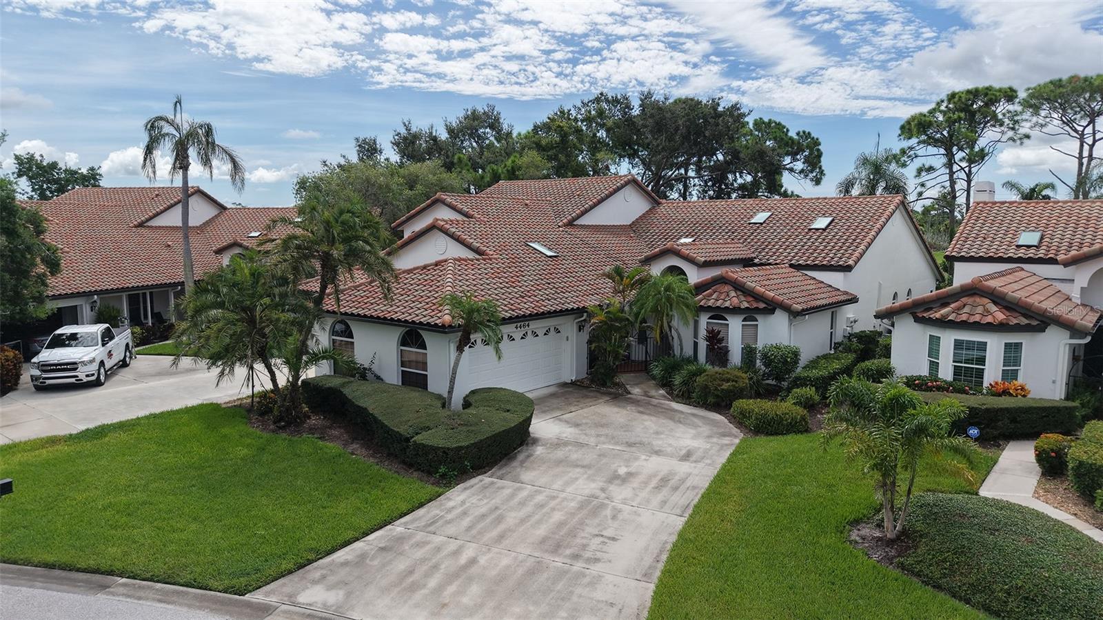 Some photos have been virtually staged. Idyllically located in Villa Palmeras at Prestancia, this spacious 2,833 sf maintenance-free villa offers soaring ceilings, skylights, and expansive windows that fill the home with natural light. A gated courtyard entry welcomes you into the open floor plan featuring a large living/dining area, eat-in kitchen with abundant cabinetry, and an enclosed 12x40 Florida room with golf and water views. The owner's suite boasts a sitting area, walk-in closet, and spacious bath with soaking tub and separate shower. Guest bedrooms are privately situated on opposite sides of the home for comfort and privacy. Additional highlights include two new A/C units (2020), breezeway to garage, and flexible third bedroom/den with French doors. Villa Palmeras residents enjoy two heated community pools, lush landscaping, and 24/7 guard-gated security. Optional membership is available at TPC Prestancia Golf Club with two 18-hole courses, dining, and social activities. Ideally located near shopping, dining, Legacy Trail, and Siesta Key beaches.