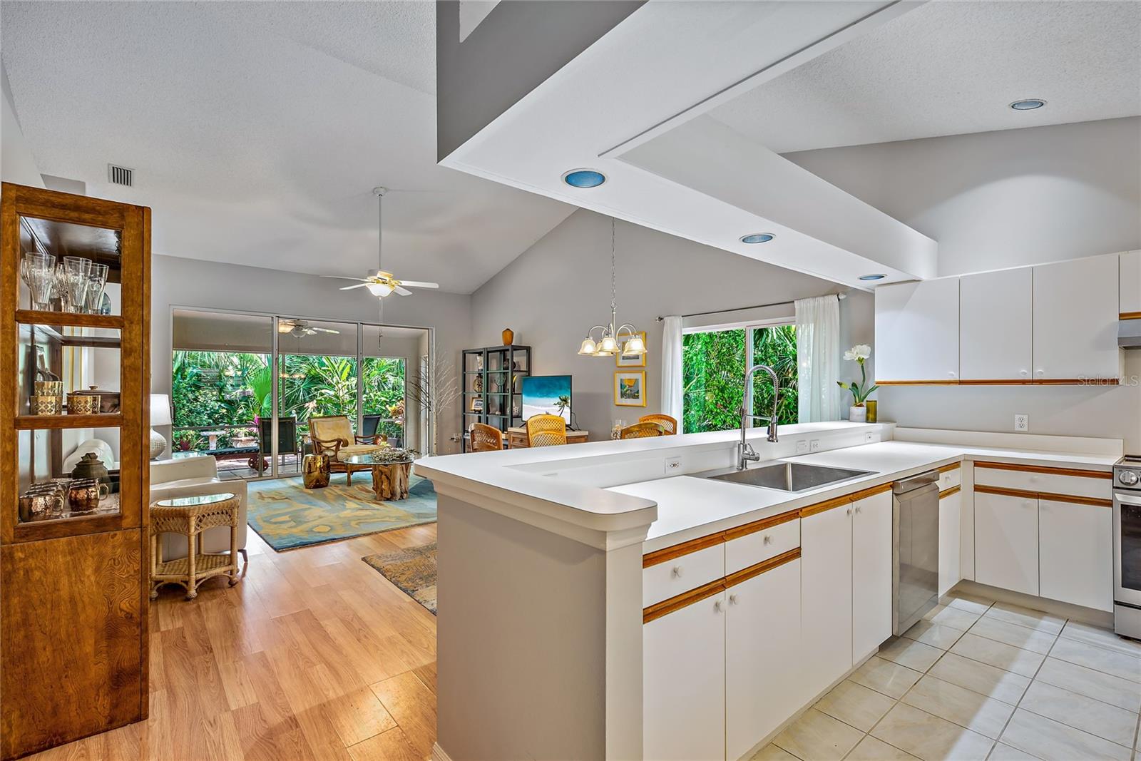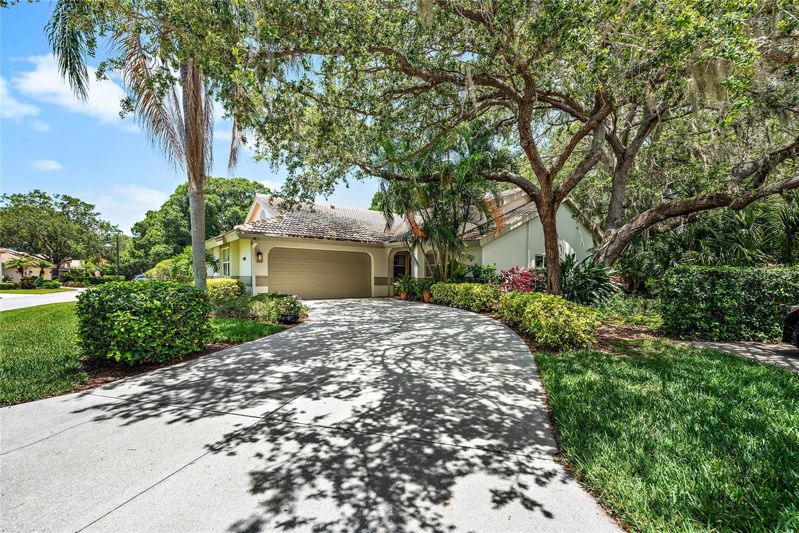 *** Price adjustment to $325,000, and owner offer to pay THREE month's HOA fees worth $3000!*** Awesome villa in a beautiful, treed, private community with only 100 homes is now available in Tivoli Village. This well maintained 2bed/2bath plus den/office villa with 2 car garage sits in a lush green setting yet has close access to UTC, I 75, Benderson Park, SRQ, and still only 18 min drive to downtown Sarasota. Enjoy the open kitchen, dining, living room with cathedral ceiling and lots of sunlight. The kitchen includes newer stainless appliances, slide-out shelving in most cabinets and small dinette area. The six foot kitchen counter separates it from the dining area which flows into the large, comfortable living space with sliders out to the enclosed lanai. Pavers extend beyond the lanai to a charming, outdoor tropical oasis featuring native Florida plants and a lovely tiled cement table and benches. The spacious master suite sits at the back of the villa with an updated master bath with dual sinks, granite countertops and a walk-in shower with bench. The split bedroom plan offers you and your guests privacy with the bedroom and bath at the front of the home. The spacious den/office has a skylight and closet. The HOA fees seem high, but they cover many expenses that as a personal homeowner would cost you much more. The list of costs covered is attached to this listing. Ask your agent to see it. But here's just a few...property damage insurance, exterior home power washing and painting, total roof replacement!! plus roof repairs when necessary, all front lawn maintenance and irrigation. This home was painted in Feb2023, and had new AC system in Apr2023. Tivoli Village is a beautiful community with 4 spring-fed lakes, fishing, majestic oak trees and a peaceful nature trail. But the best feature of this community are your neighbors!...so welcoming, helpful and fun! Come see for yourself!