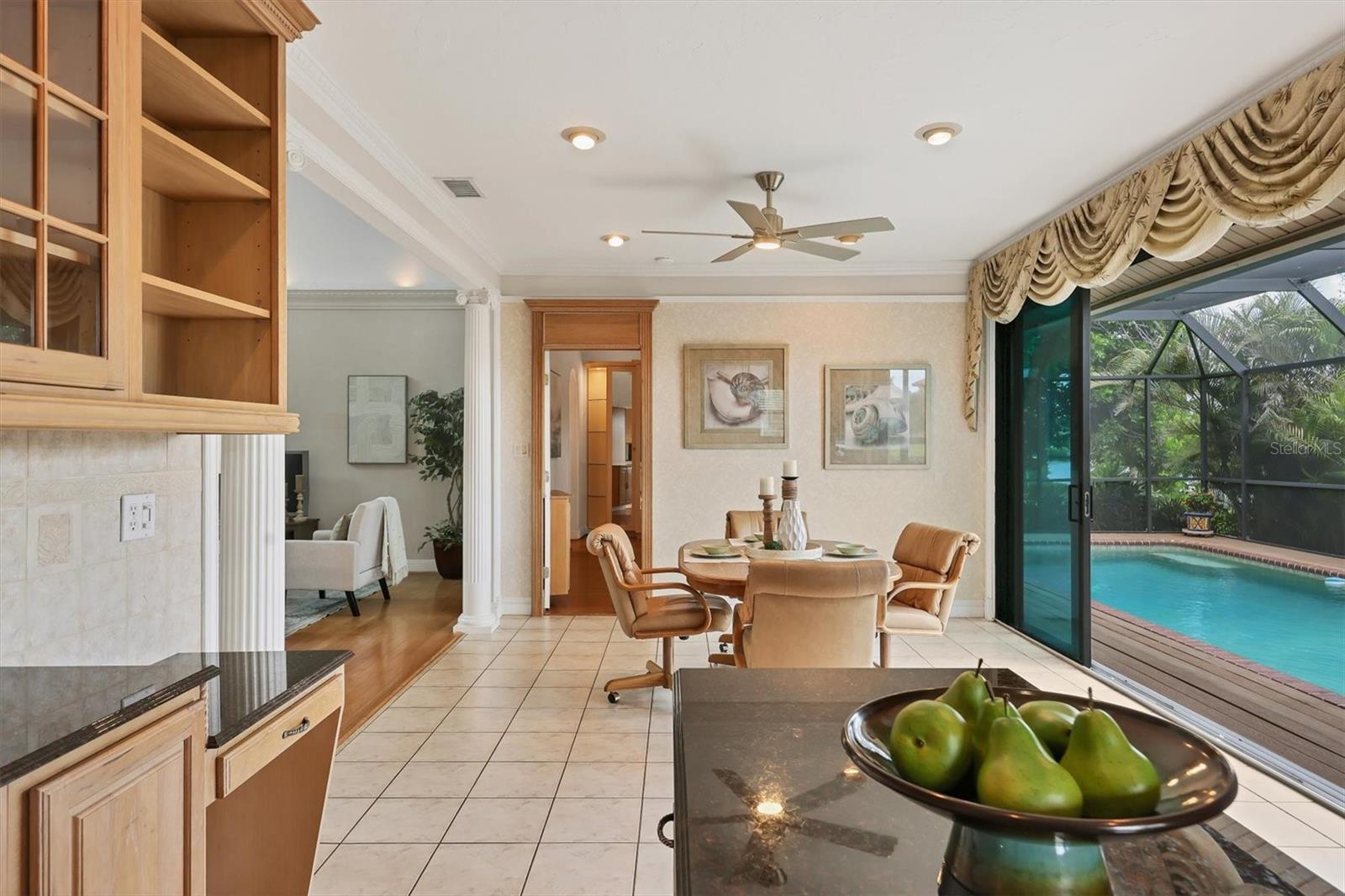 Incredible opportunity to own this spacious WATERFRONT POOL home in the gated community of The Inlets in Nokomis--just one mile from Nokomis Beach! This 3-bedroom, 3-bath home offers an open floor plan with volume ceilings, clerestory windows, and abundant natural light. From the moment you enter, you're greeted with direct views of the sparkling pool and saltwater canal through a wall of sliding glass doors.The main living area is versatile and can be configured to suit your lifestyle, while the loft-style third bedroom with private bath provides additional flexibility. The kitchen is a chef's dream with wood cabinetry, a large island, a huge walk-through pantry with second refrigerator, and a corner sink that overlooks the water. The primary suite features both a walk-in closet and a built-in wall closet, along with a spacious bath offering dual sinks, vanity, jetted tub, and separate shower. The second bedroom includes a full wall of built-ins for excellent storage. Step outside to the pool and lanai with composite decking, perfect for al fresco dining or relaxing with sunrise views over the canal. From here, stairs lead down to your private dock--bring your boat and start living the waterfront lifestyle! The Inlets offers resort-style amenities including tennis and pickleball courts, heated pool and spa, fitness center, bocce, and more. Ideally located near shopping, dining, the new Sarasota Memorial Hospital, and just minutes to downtown Venice. Don't miss your chance to own this waterfront oasis in one of Nokomis' best-kept secrets--schedule your showing today!