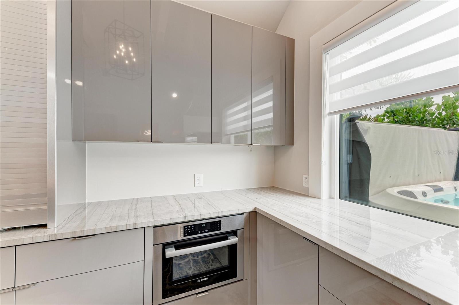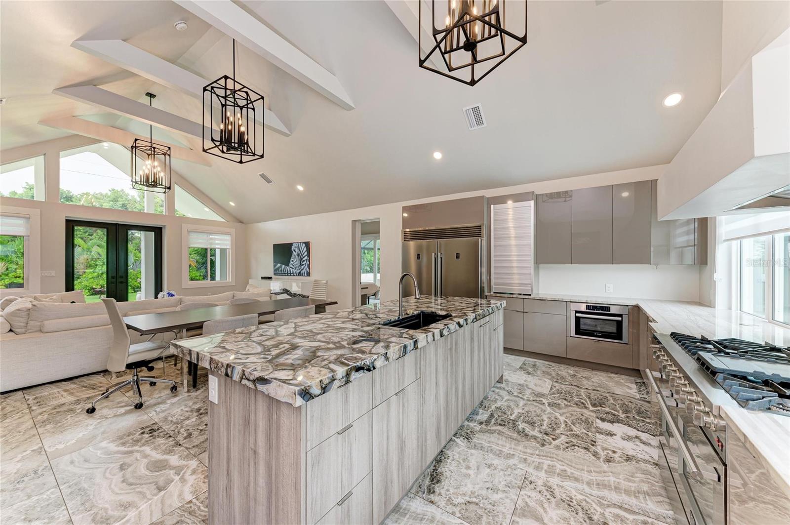 If you're looking for a true "wow" factor, this stunning new-construction residence delivers. This custom-designed home combines luxury finishes with thoughtful functionality. Step inside to soaring 16-foot ceilings and dramatic exposed beams in the great room, creating an impressive sense of space. The chef's kitchen is the centerpiece, featuring a striking brown agate back-lit island, Mustang granite countertops, modern cabinetry with pullouts and utensil organizers, an eight-burner professional range with bread and baking oven, custom vent hood, and upscale appliances--perfect for entertaining. Throughout the home, you'll find large-format tile floors, custom window treatments, and the option to purchase designer furnishings. Offering 3 spacious bedrooms and 2.5 baths, this residence blends style and comfort seamlessly.Outdoor living is just as impressive, with a brand-new modern pool and pool cage (completed August 2024), a Jacuzzi brand hot tub, and a private outdoor shower with hot and cold water. The property is professionally landscaped, freshly painted inside and out (August 2025), and boasts impact windows and doors, ensuring safety, efficiency, and some of the lowest homeowners insurance rates available. Additional highlights include a tankless gas water heater, gas and electric dryer connections, and no flood zone location. Situated on one of Sarasota's highly coveted "Flower Streets," this property offers rare flexibility: the City of Sarasota permits 7-night minimum rentals, and the home is not subject to Southgate deed restrictions. Just 1 mile south of Sarasota's luxury waterfront downtown, and less than 3 miles to the world-famous Siesta Key Beach, the home is also walkable to Conner's Steakhouse, Baker & Wife, shopping, dining, banks, and groceries--all tucked away on a quiet dead-end street. Owner/Agent.