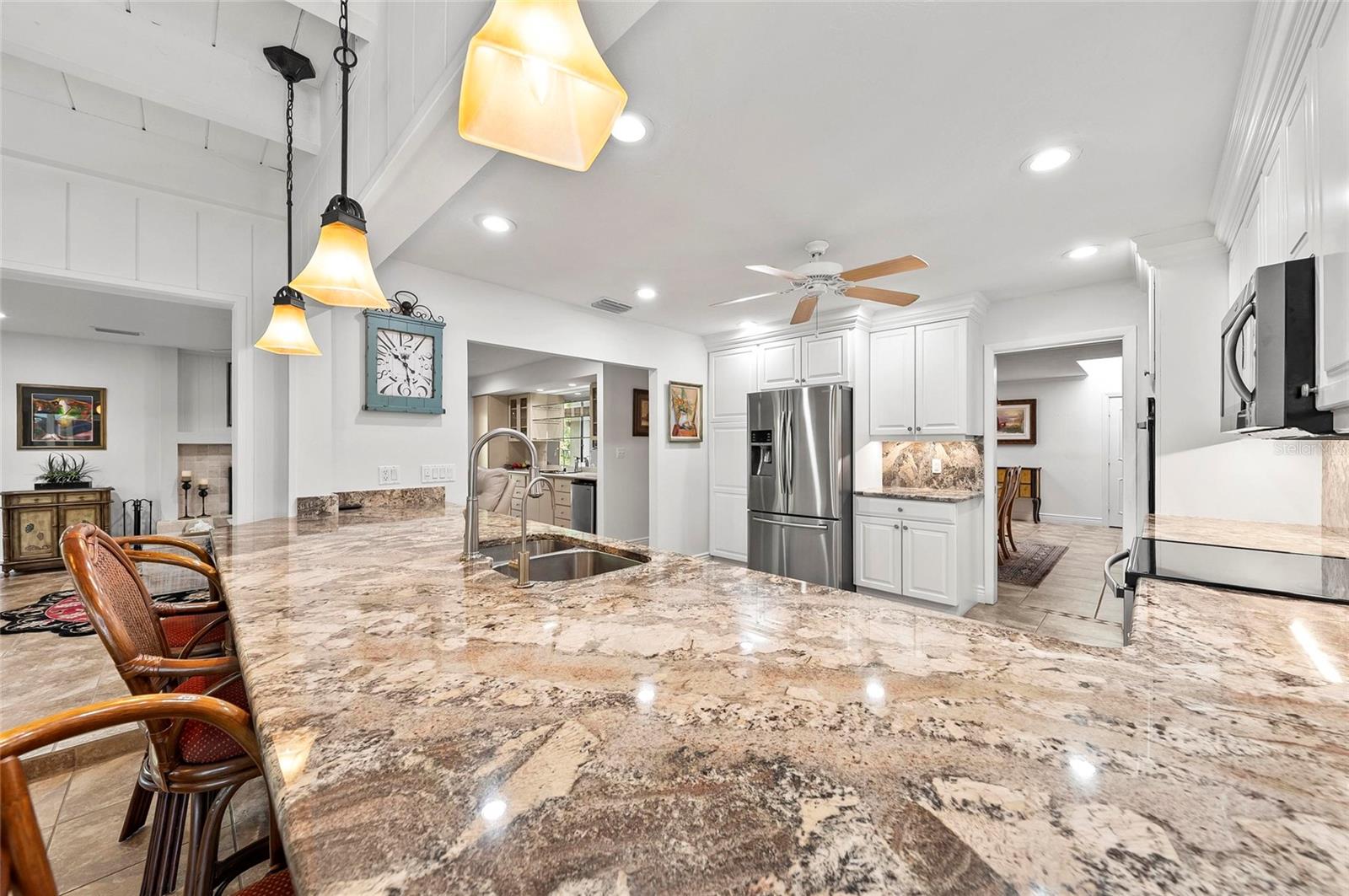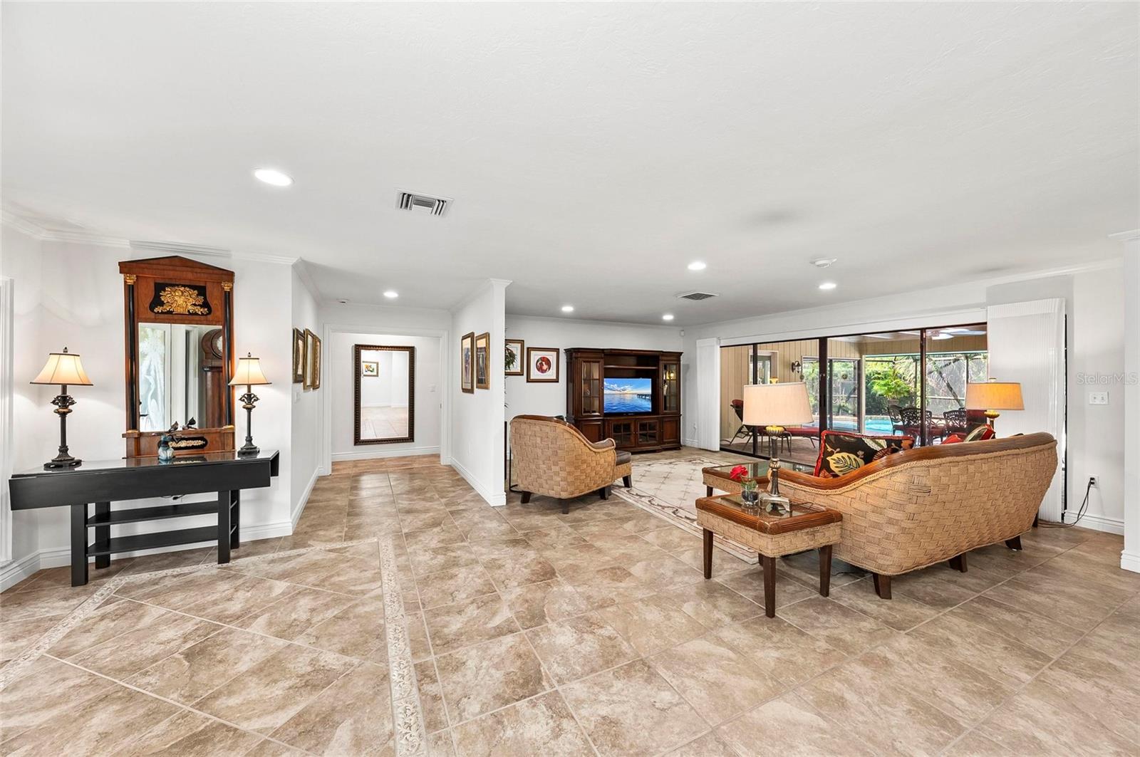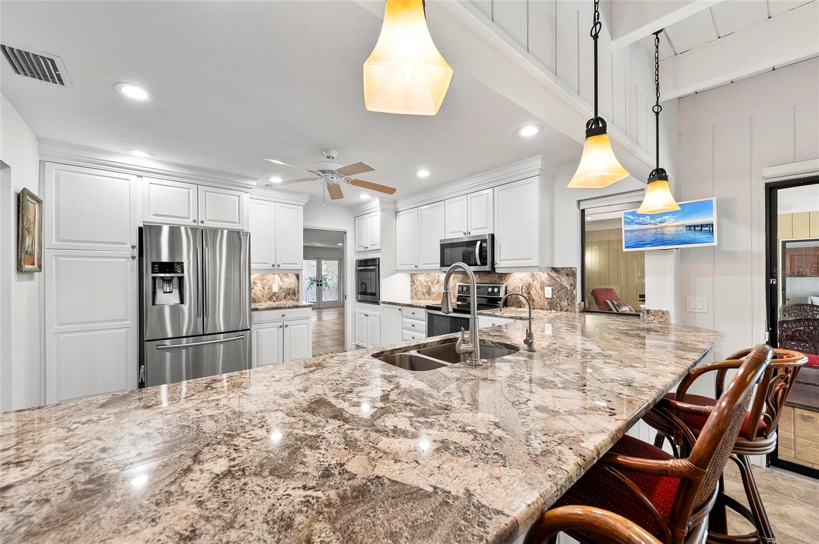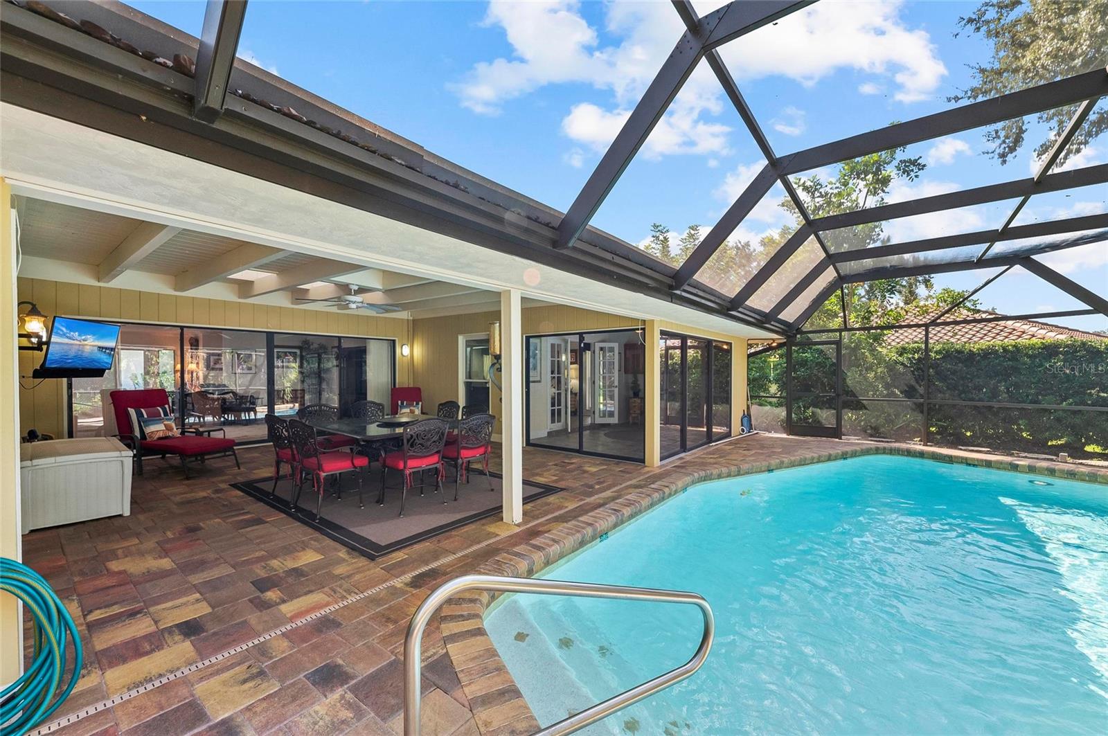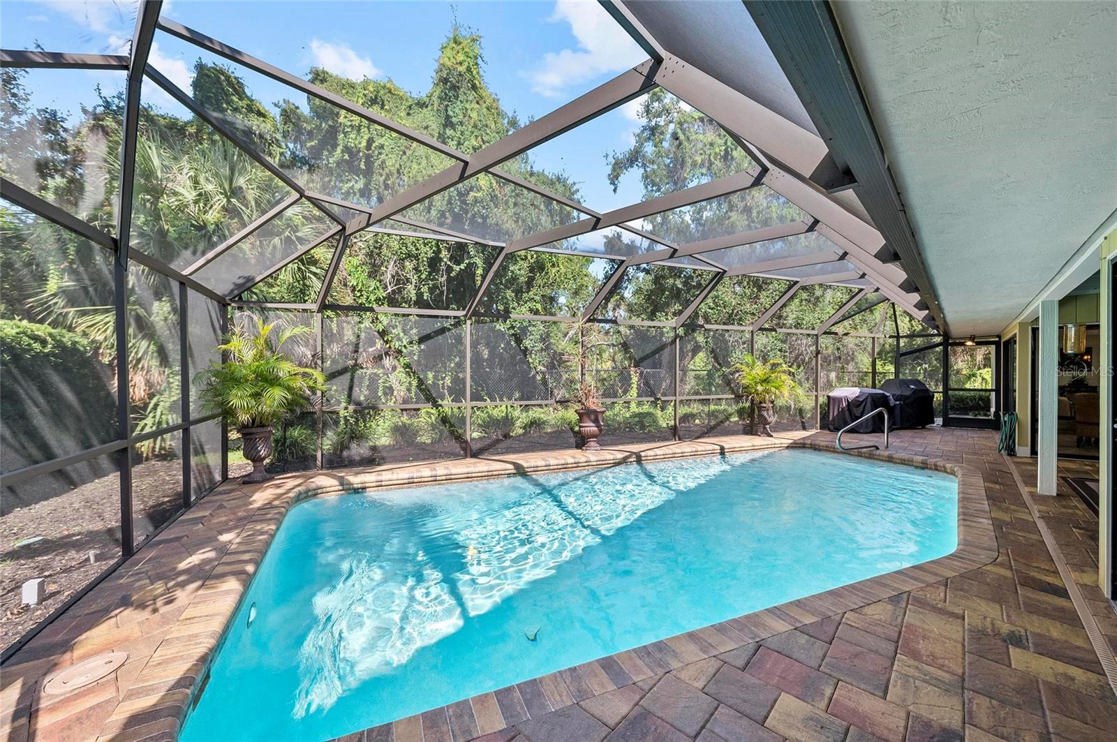 New listing alert in the highly sought-after community of Southbay Yacht & Racquet Club, where true resort-style living awaits. The community offers an impressive array of amenities, including a marina, a recently remodeled clubhouse, shuffleboard courts, three tennis courts, four pickleball courts, a bocce ball court, basketball courts, and kayak storage. Residents also enjoy a waterfront park and nearly 20 acres of common grounds with miles of walking trails. A true highlight is the gorgeous geothermal pool, which showcases stunning marina views and is a must-see when visiting Southbay! Now that you've fallen in love with the community, are you ready to explore this spectacular home that's waiting to be yours? This spacious residence, spanning over 3,000 square feet, welcomes you with a brick-paver driveway and lush, mature landscaping along the front walkway. Continue through the gated entry to discover the tranquil sound of a soothing water feature before stepping inside. The interior boasts beautiful views of the pool and lush green landscape, hard flooring throughout, and a layout designed for both everyday living and effortless entertaining. The floor plan includes two distinct family rooms, one with a cozy fireplace, wet bar, and beverage refrigerator, and the other offering beautiful views of the pool. The primary bedroom includes an additional room with pool views, ideal for an office or exercise space...the choice is yours. A spacious laundry room, complete with a double desk and abundant storage, adds to the home's functionality. Outside, the large lanai features a beautiful pool and provides generous covered areas, and plenty of open space for sunbathing under the clear blue sky. Recent updates include a new roof installed in 2023 and a recently refinished and resurfaced pool. The location is equally appealing, just minutes from a variety of restaurants and shopping, convenient highway access, and the soft, powdery sands of Southwest Florida's Gulf Beaches. I welcome you to visit this home... come see, come sigh, and make it your own!