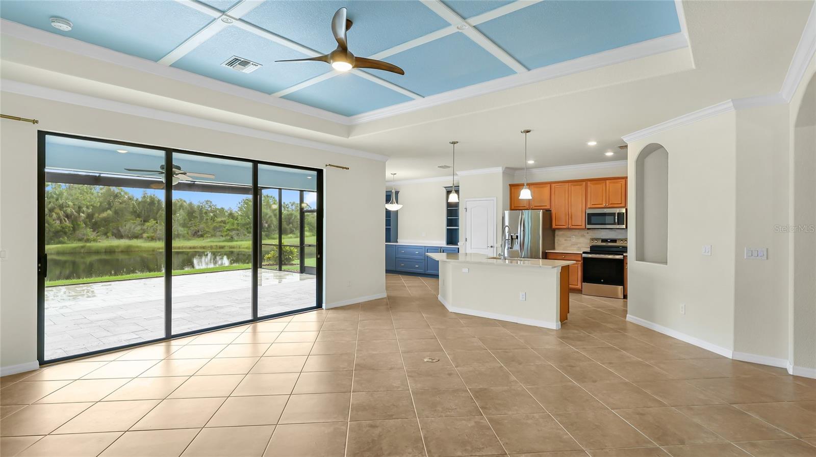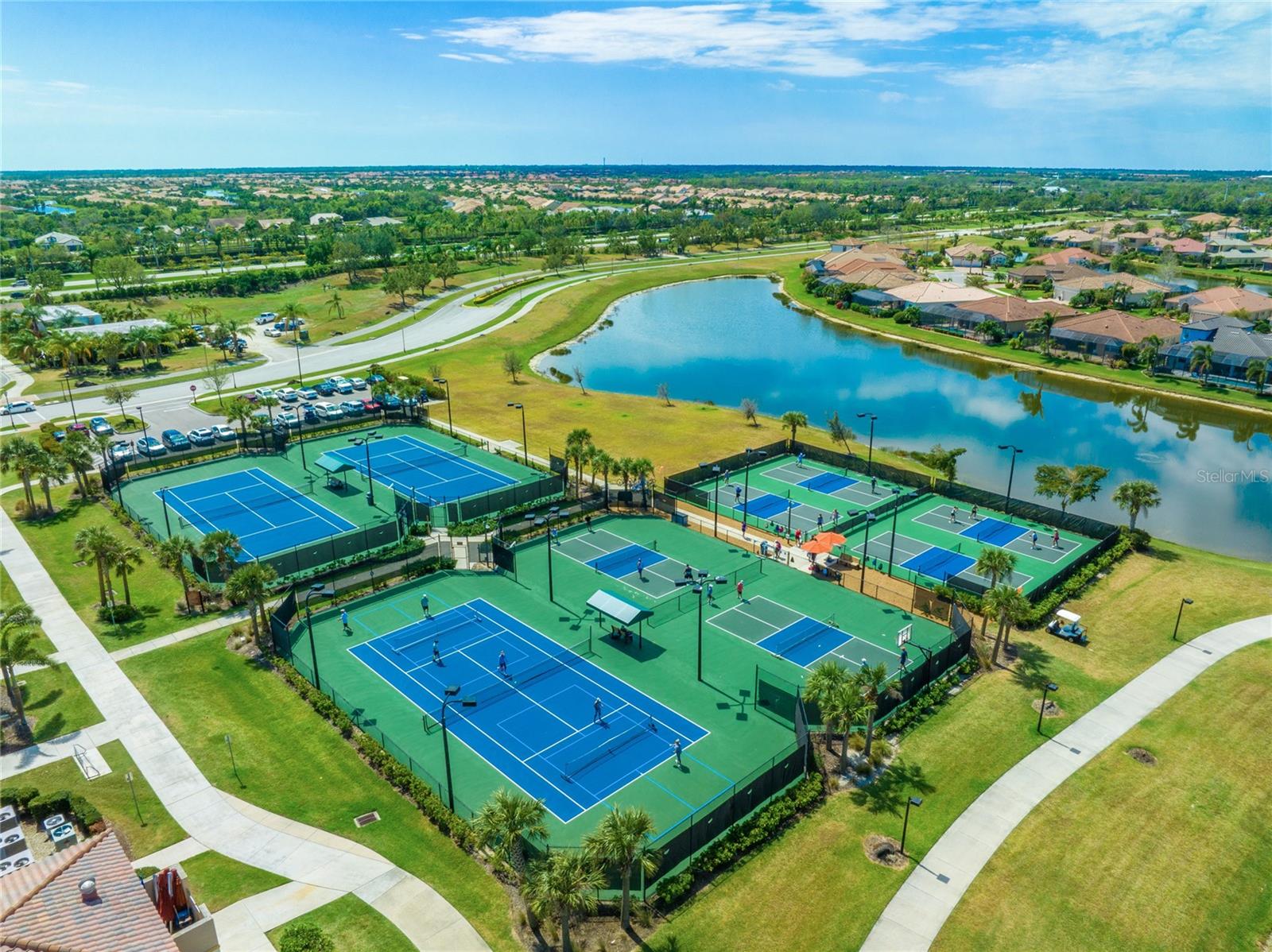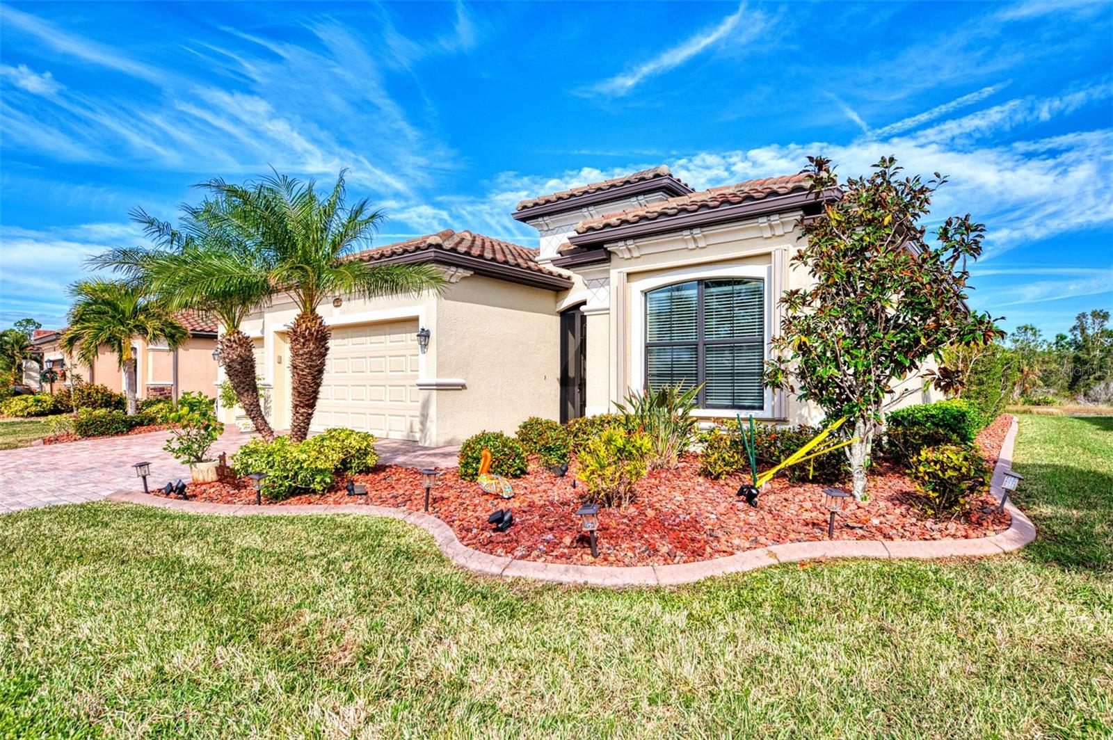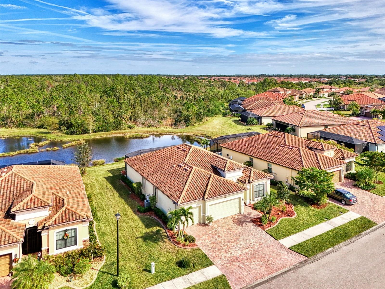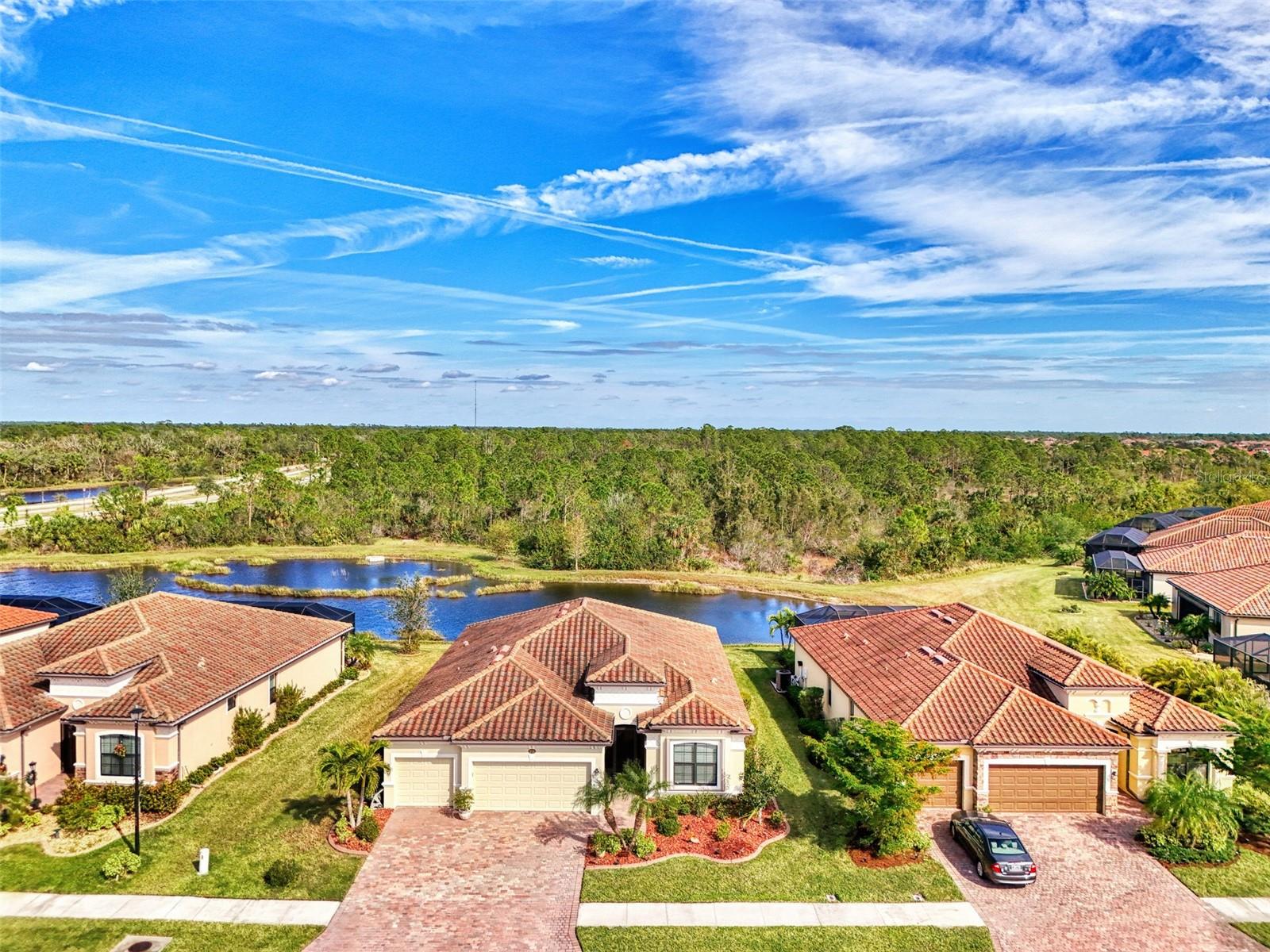 A RARE PRIVATE LAGOON STYLE WATER AND PRESERVE LOCATION AND ONE OF THE LOWEST PRICED 3 CAR GARAGE SINGLE-FAMILY HOMES IN GRAN PARADISO AND WELLEN PARK. Discover the epitome of serene luxury in this stunning home on a very special homesite, nestled in the Gran Paradiso community of Wellen Park, Venice, Florida. This residence offers unparalleled privacy with breathtaking views of a tranquil pond and lush conservation land from the great room, kitchen, master bedroom, and the expansive extended screened lanai featuring elegant travertine stone flooring. The front of the home faces a private preserve, making it one of the only properties in the neighborhood to boast such a rare combination of front and rear seclusion. Step inside to find a carpet-free interior, freshly painted in December 2024, with porcelain tile throughout and luxury vinyl flooring in all bedrooms. The gourmet kitchen, updated in 2023, showcases exquisite quartzite countertops and a spacious island, complemented by custom cabinetry installed in 2024 in the dinette area. The extra-large clear view lanai screen invites you to savor the scenic backdrop, while the screened front entrance with a hurricane shade and accordion hurricane shades on all windows, plus an electric hurricane shade on the lanai, ensure peace of mind. This exceptional home also includes a well-maintained golf cart with less than 800 miles, perfect for exploring the vibrant community. Don't miss this rare opportunity to own a slice of paradise with unmatched privacy and modern elegance located in one of the largest gated communities in Wellen Park. The Gran Paradiso neighborhood offers an extraordinary lifestyle with a 20,000-square-foot clubhouse, a 7,000-square-foot zero-entry resort-style pool, a state-of-the-art fitness center, sauna, steam room, and a yoga and aerobic studio. Residents enjoy tennis and pickleball courts, billiards, a library, card rooms, a craft room, and miles of walking and biking amidst lush lakes and preserves. A full-time activities director ensures a vibrant social calendar with year-round events. All this for what is among the lowest HOA fees in the Wellen Park / Venice area for a neighborhood. Located just minutes from Wellen Park's vibrant Downtown, residents have easy access to trendy restaurants, boutique shops, a farmers' market, and the Atlanta Braves' CoolToday Park. The pristine Gulf beaches of Venice, including Caspersen Beach and Venice Beach, are a short 15-minute drive (approximately 9.7 miles), offering swimming, boating, fishing, and breathtaking sunsets making this home the perfect blend of luxury, privacy, and coastal convenience.