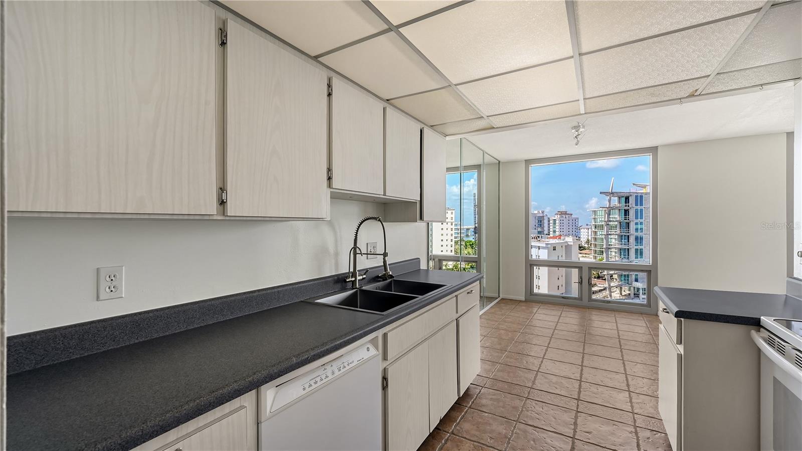 This is a fantastic chance to own a corner unit in the heart of downtown Sarasota on the 9th floor, where you can bring your unique design ideas to life. You could even open up some walls to create an open floor plan in the kitchen. The condo has stunning panoramic views that stretch from Siesta Key to Lido Key, Longboat Key, and beyond. The common area and lobby are currently being renovated, so you'll get a fresh and modern vibe. From every room, including the spacious wrap-around balcony or porch, you can enjoy the beautiful waterfront of Sarasota. The kitchen, dining, and living spaces are surrounded by floor-to-ceiling impact-rated windows and doors, so you'll have plenty of natural light. One Watergate is a top-notch downtown community that offers resort-style amenities to make your living experience even better. These amenities include a heated pool, barbecue/picnic area, tennis and pickleball courts, fitness center, and clubroom, all on beautifully maintained grounds. You'll also have onsite management, assigned parking, guest parking, electric auto charging stations, and bike/kayak storage. One Watergate's prime location makes it easy to get to all the great places to eat, go to the theater, shop, and explore Sarasota. If you're looking for a peaceful and desirable place to live, this unit is the perfect opportunity to make your dreams come true.