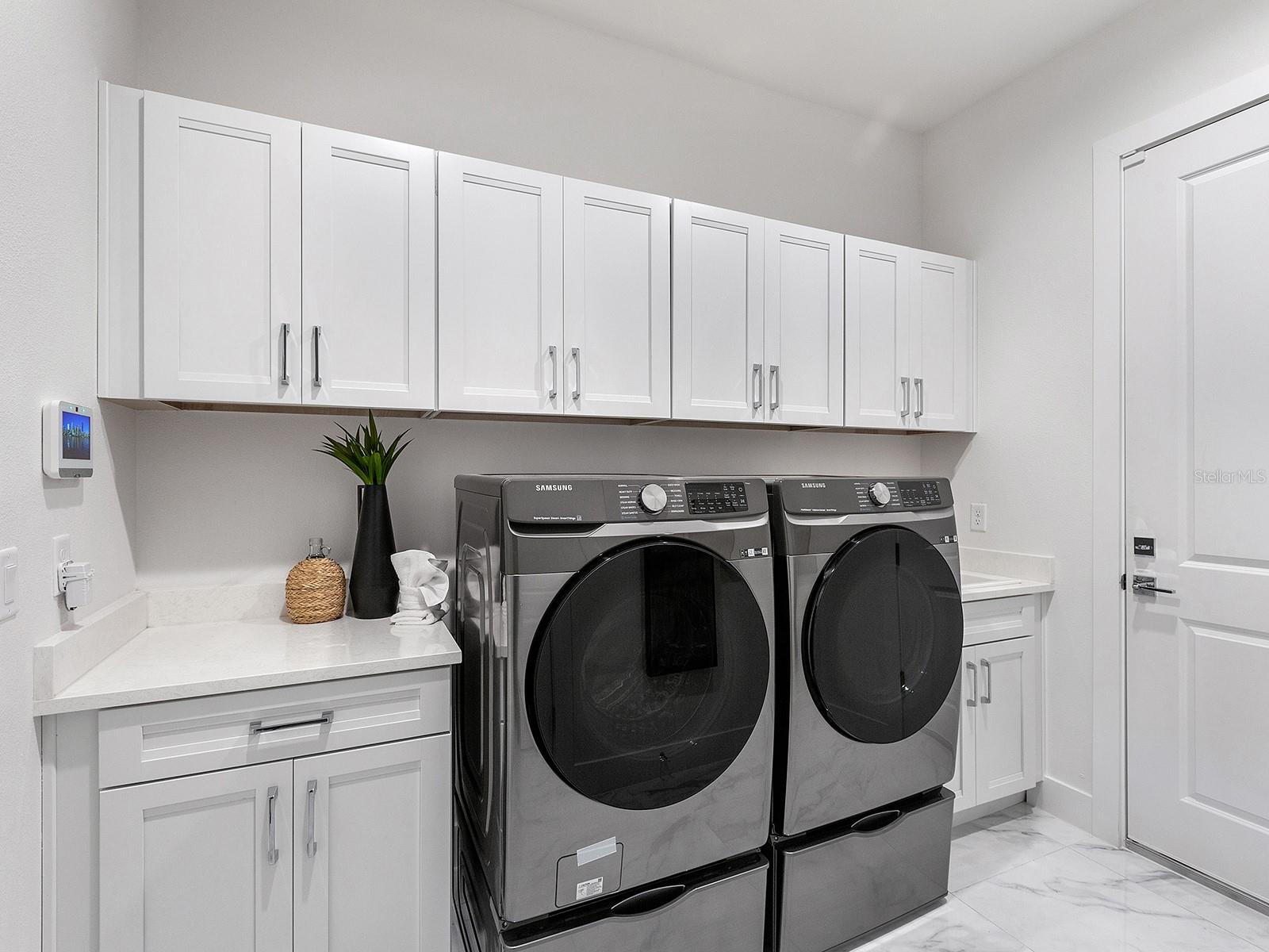 - Appliances: Bar Fridge, Built-In Oven, Convection Oven, Cooktop, Dishwasher, Disposal, Dryer, Electric Water Heater, Exhaust Fan, Microwave, Refrigerator, Washer, Water Filtration System, Wine Refrigerator