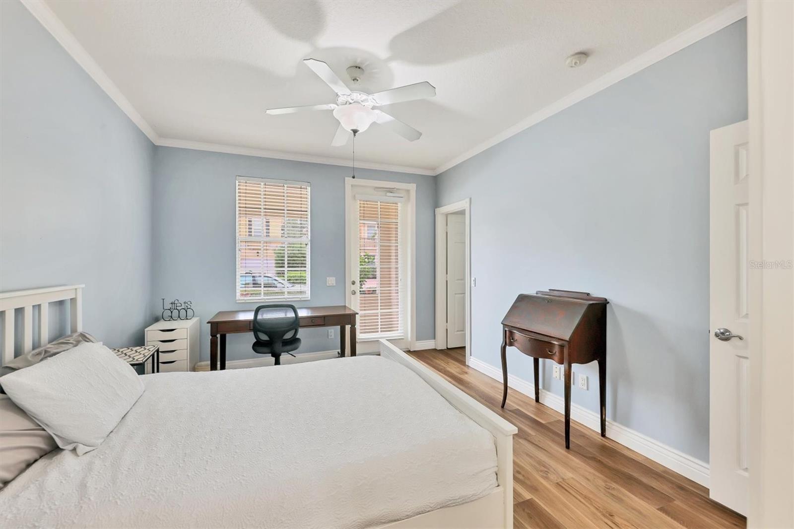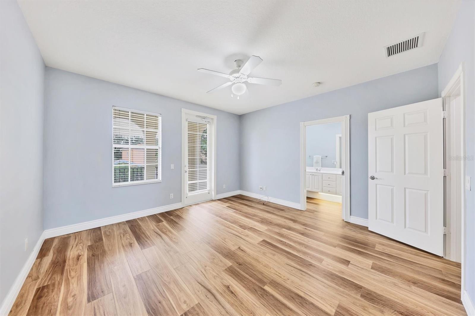 Welcome to one of the most desirable, maintenance-free Palmer Ranch communities...in resort-style VILLAGEWALK! This 3 bedroom, 3 bath, "Cayman model" is charming and practical. These were built by Divosta with reinforced steel and poured concrete walls, armed with hurricane shutters and impact glass doors! Inside you are greeted with loads of natural light, a wide open floor plan, and all NEWER luxury vinyl plank flooring throughout this impressive home! Kitchen boasts modern, 1 year old stainless steel appliances, and lots of cabinet storage and counter space. You can choose which of the 3 generous primary bedrooms you want.. as each has a roomy, walk-in closet with built-ins, and an ensuite full bath. Or make the downstairs bedroom, with your personal walk-out lanai, your office/den, you decide! Upstairs you can choose a bedroom that enjoys a private, quaint balcony overlooking the lush, tropical landscapes or a larger one with a cozy nook for a desk, lounging, or a craft space. Upstairs laundry room has a useful utility sink and handy cabinet storage. Downstairs, bask in the Florida sunshine all year-round in your expansive screened-in lanai off of the Great room. A retractable canopy awning makes entertaining easy, and provides shade when you want it! Perfect spot to grill and relax. The 2 car garage allows room to park your golf cart, car, and still room for your beach toys and sports equipment, the poured, epoxy garage floor is a bonus. Another perk is an in-house vacuum system, tucked away under the stairs in your extra large storage room. Being a member of this award winning, gated community is more than a place to live, it's a place to call home and live your Best Florida lifestyle! Top notch amenities include the waterfront Town Center, post office, salon, gas station, full service cafe, meeting rooms, lap and lagoon pools, 6 Har-tru lighted tennis courts, pickleball, bocce, basketball court, well-equipped fitness center, gift shop, lagoon tiki bar, and miles of walking/biking trails to enjoy the abundant nature in this 500+ acres of manicured and landscaped community preserve. There is a full calendar of clubs and activities to join, for all ages! Villagewalk's location is prime, close to "A" schools, Legacy Trail, Siesta Key and area beaches, shopping, Costco, golf courses, parks, the arts culture scene and all Sarasota and Venice has to offer! Come see why Villagewalk is Home!