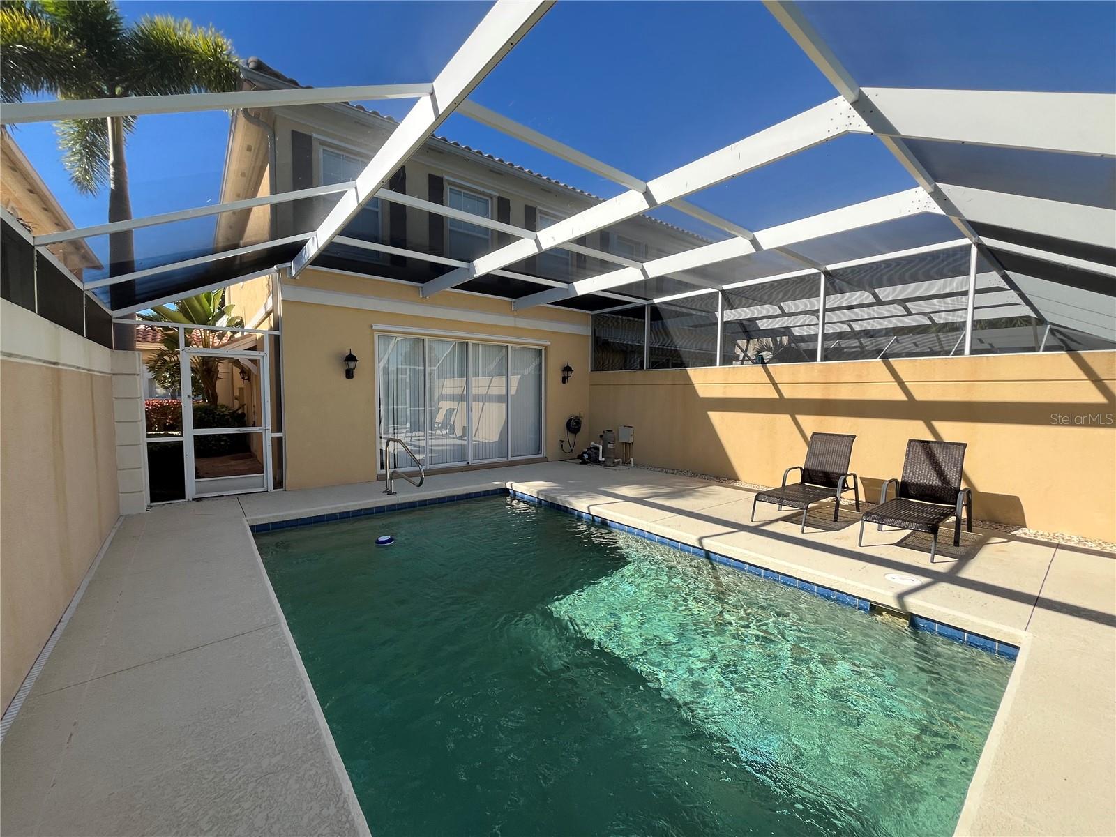 EXTREMELY RARE MAINTENANCE-FREE Canal Front TOWNHOME W/PRIVATE POOL! This Fabulous 3BR, 2.5 Bath DiVosta Built-Solid Catalina Townhome includes: Living Room w/Designer Tile Flooring, Sliders to Private Pool and Private Canal Waterfront Views, Dining Area, Kitchen w/Tall White Cabinetry, Corian Counter Tops and Breakfast Bar, Huge Storage and Pantry Space Under Stairs, Separate Laundry Room w/Washer & Dryer, Hall Powder Bath, Good-sized Master Suite w/Huge Walk-in Closet w/Built-ins, Water Views and Private Master Bath with Tile Flooring, Shower and Separate Soaking Tub; Guest Bedroom w/Walk-in Closet w/Built-ins, Additional Bedroom Perfect for a Den, Hall Bath with Tub/Shower Combo, 2021 NEW AC, Hurricane Shutters, Famous DiVosta Built-Solid Concrete Re-Bar Construction built like a Bunker, 1 Car Garage, Wide Paver Driveway for additional parking, Private Pool w/Private Canal Water Views! Community Features: Resort Style Clubhouse w/Community Pool, Gym Fitness Center, Kitchen, Activities Room and Director, 4 Tennis Courts, 2 Pickle Ball Courts, 2 Bocce Ball Courts, Basket Ball Court and Tot Lot. The Isles is Close to the #1 Siesta Key Beach, Fine Dining, New SMH Medical Center, Costco, Local Golf Courses, Legacy Bike Trail and the many other Cultural Venues that Sarasota has to offer. SOME FURNITURE on MAIN LEVEL IS AVAILABLE, CAN STAY OR GO AT NO COST!