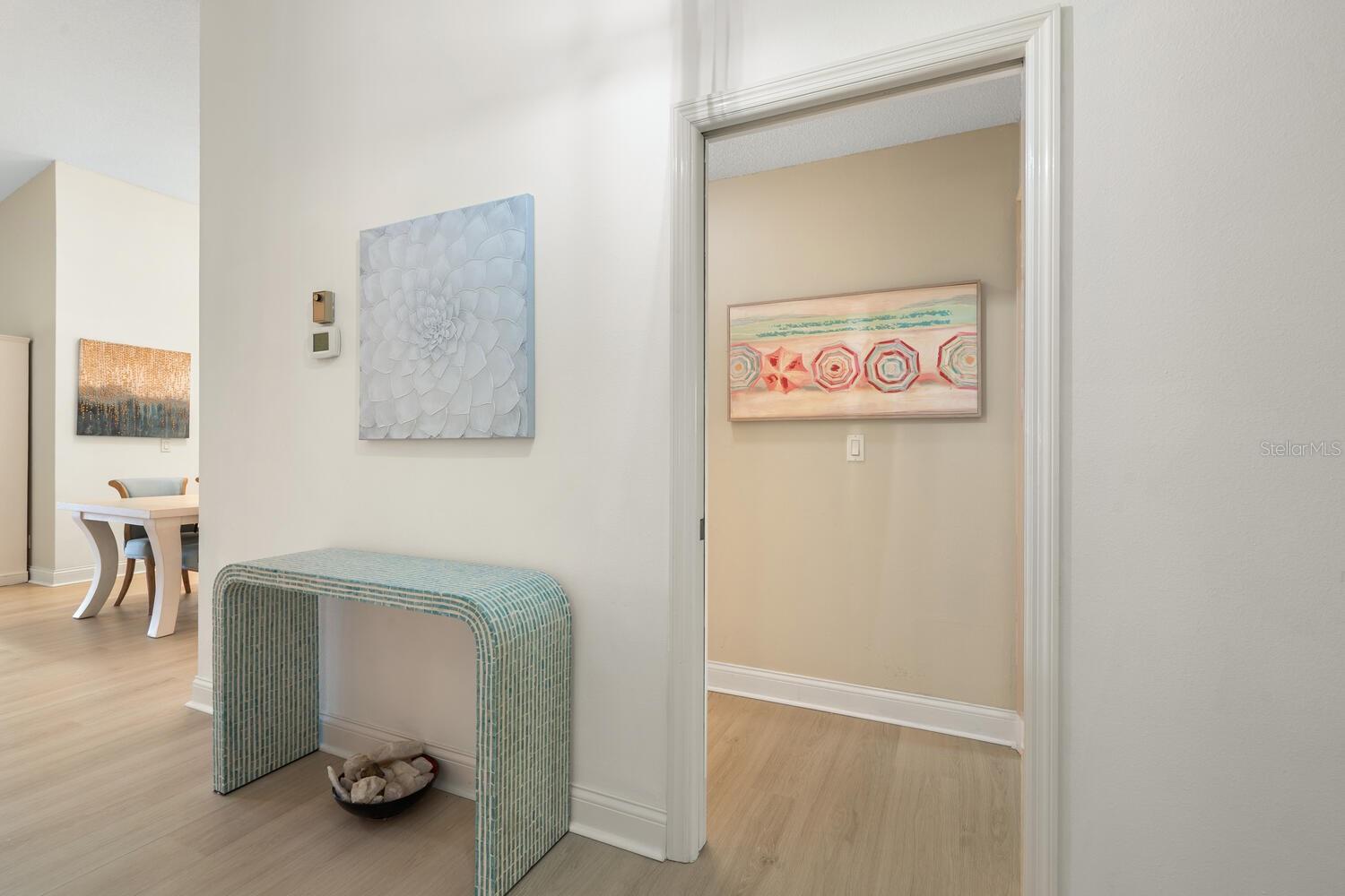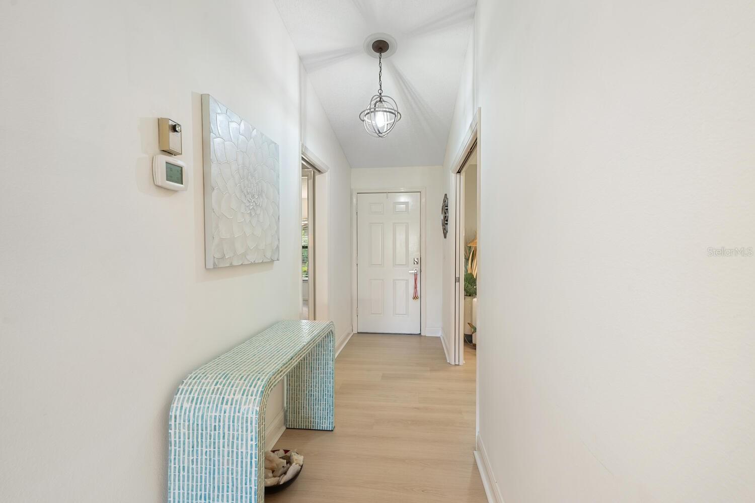 Welcome to this beautifully updated and thoughtfully designed villa in the highly desirable 55+ maintenance free community of Lakeshore Village in Sarasota. Just minutes from world-famous Siesta Key Beach and the vibrant downtown area, this 2-bedroom, 2-bath plus family room/den offers 2024sf of comfortable, stylish living with serene lake views. The open concept living space is highlighted by light-colored Karastan luxury vinyl flooring that runs seamlessly throughout the main areas, creating a fresh, airy atmosphere that's both tasteful and practical. The living area features vaulted ceilings and skylights, enhancing the sense of openness and natural light. This space flows into the Four-Season Florida room, where walls of glass provide tranquil views of Heron Lake. The updated kitchen features Cambria quartz countertops, a glass tile backsplash, and brush gold hardware. A GE stainless steel 5-burner range and matching hood add style and function, while a tray ceiling with whimsical crystal ball accents adds a touch of personality. The breakfast nook includes built-in cabinets, quartz counters, and a large picture window overlooking the lake. The smart split-bedroom floor plan offers privacy for both owners and guests. The primary suite is a true retreat, complete with brand-new carpet, a large window with lake views, and sliders leading to the Florida room. You'll love the two spacious walk-in closets, and renovated bath, accessed via a modern barn door, featuring dual above-counter sinks, Cambria quartz counters, walk-in shower, and a skylight that fills the space with natural light. The spacious guest suite, tucked away behind a pocket door, includes a private bath for added privacy. Off the foyer, double pocketing doors open into a charming family room designed in a coastal style with vaulted ceilings, skylight, offering even more living space or extra sleeping space for guests. The community offers resort-style amenities including clubhouse, tennis and pickle ball courts, heated salt water pool, group activities, all in a pet free environment.