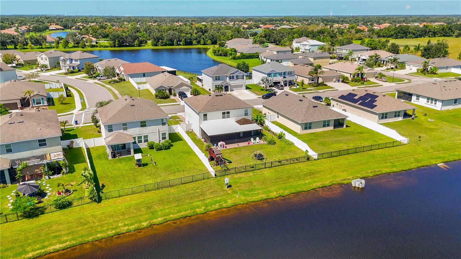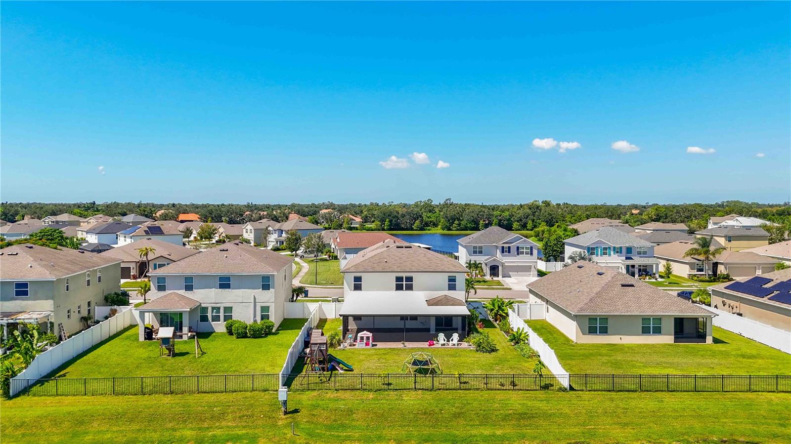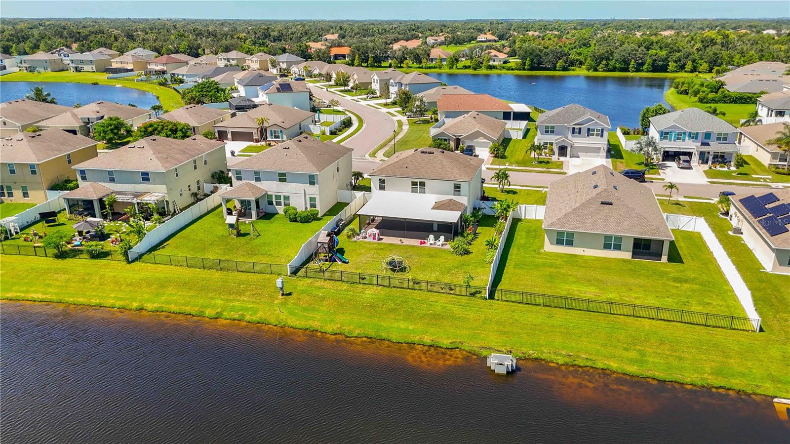 Welcome to your dream home in the peaceful, gated community of Del Tierra, offering NO CDD fees and LOW HOA! This stunning 5-bedroom, 3-bath home features a flex/game room, loft, and open-concept design, all set on a block-on-block construction with a beautiful fountain and large pond view. With over 2,590 sq. ft. of living space and a huge fully fenced backyard, this property is perfect for entertaining or simply relaxing. Enjoy your oversized covered lanai complete with three ceiling fans...while taking in breathtaking Florida sunrises. Recent Updates Include: Fresh interior and exterior paint. New kitchen cabinets and a newer dishwasher. New toilets and exhaust fans in all bathrooms. Hyper filter, and new coils for improved air quality. 30-amp breaker for generator hookup. Inside, you'll be welcomed with style! Crown molding on the first floor with luxury vinyl flooring throughout, NO CARPET, and a thoughtfully designed open kitchen featuring stainless steel appliances, granite countertops, a tile backsplash, and new cabinetry. A flex/game room sits just off the entry, while a guest bedroom and full bath provide convenience on the main level. Upstairs, the oversized master suite boasts dual vanities with granite countertops, a stand-up shower, and two separate walk-in closets. A great-sized laundry room is located on the second floor. Three additional bedrooms, a full bath, and a loft complete the second floor. Outside, you'll appreciate rain gutters, an extended paver driveway for extra parking, and a charming front covered porch, which is the perfect spot to unwind and enjoy spectacular sunsets. Reclaimed water Irrigation on the front and side of the home. Minutes to SR-64, I-75, and Ft. Hamer Bridge. Close to Gene Witt Elementary (bike ride away). Nearby shopping includes Costco and many more! Residents of Del Tierra enjoy access to a resort-style pool, fitness center, and gated entry, all while being surrounded by nature and tranquility. This home offers it all...stylish design, tasteful upgrades, and a prime location. Don't miss your chance to make it yours!